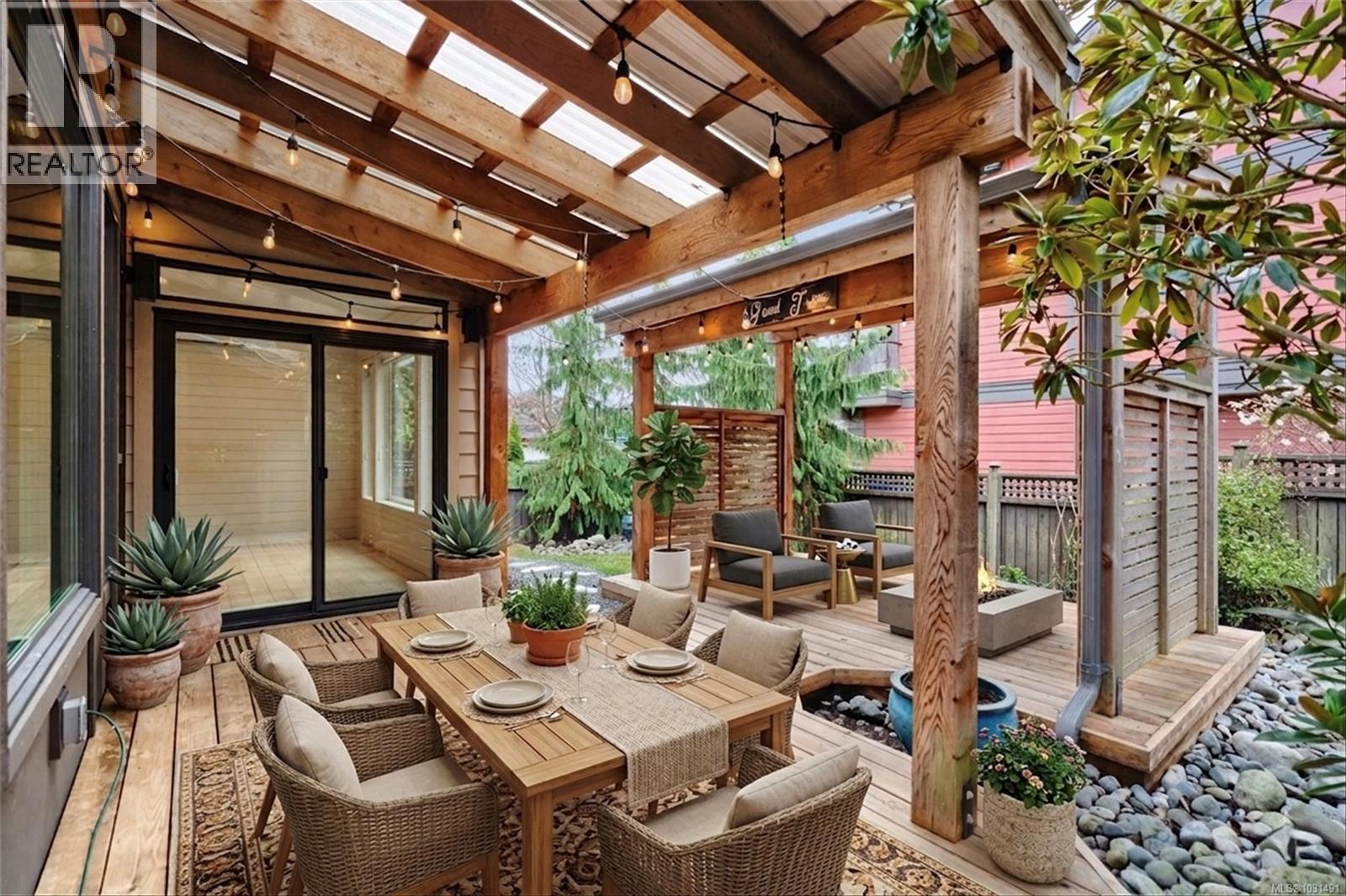Luxurious West Coast Contemporary at the Parkside in Royal Bay! This stunning 3BD, 3BA home features impressive architectural design top to bottom. Wow your guests with the 12ft ceiling and grand windows at the entrance. Bright, open-concept kitchen, living room, and dining room is perfect for indoor entertaining. Off the dining area offers more space to socialize with the very large, custom built deck that could host BBQs, or relaxing evenings in the garden. Well thought-out kitchen provides lots of storage, quality cabinets, quartz countertops, and gorgeous light fixtures. Engineered hardwood floor flows throughout the main area, fireplace in the living room, and large windows to view the backyard. Upstairs leads to bedrooms, laundry room, and office nook. Primary bedroom includes walk-in closet, 11ft ceiling, 5-piece ensuite with soaker tub for the perfect paradise to unwind. Close to beaches, parks, trails, shopping and more! No need to compromise convenience for peaceful living. (id:44393)