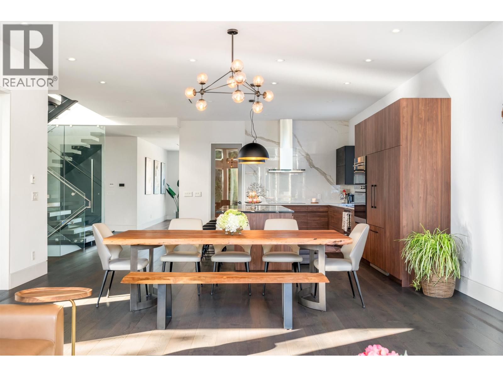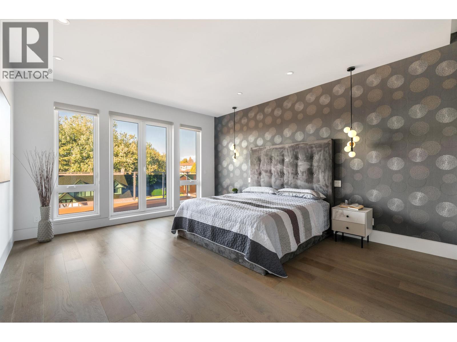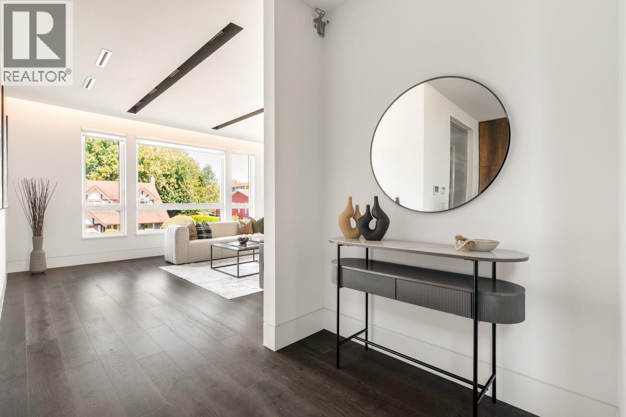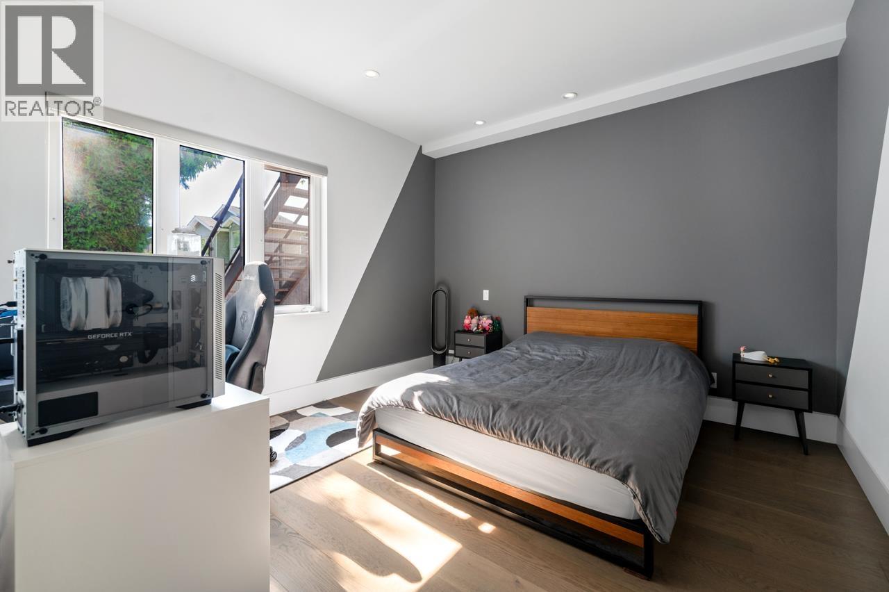 Stunning 3-story contemporary Home in Boyd Park. This modern masterpiece offers the perfect blend of style , comfort, and functionality. Features incl top appliances, custom engineered staircase with frameless glass railing, radiant in floor heating, HRV, central AC, and built in security system with monitoring cameras. The main floor offers 2 bedrooms and a spacious rec. room with rough-in plumbing and wiring, easily convertible into a 2 bdrm in-law/rental suite. The 2nd floor boasts an open concept kitchen, dining, a bright living area, a private high ceiling family room , wok kitchen & den + a huge sun deck for relaxed gatherings. Upstairs, the 3th floor, 3 ensuite bedrooms , incl a luxurious master suite with a large balcony to enjoy mountain views& evening sunsets. Shows like new ! (id:44393)