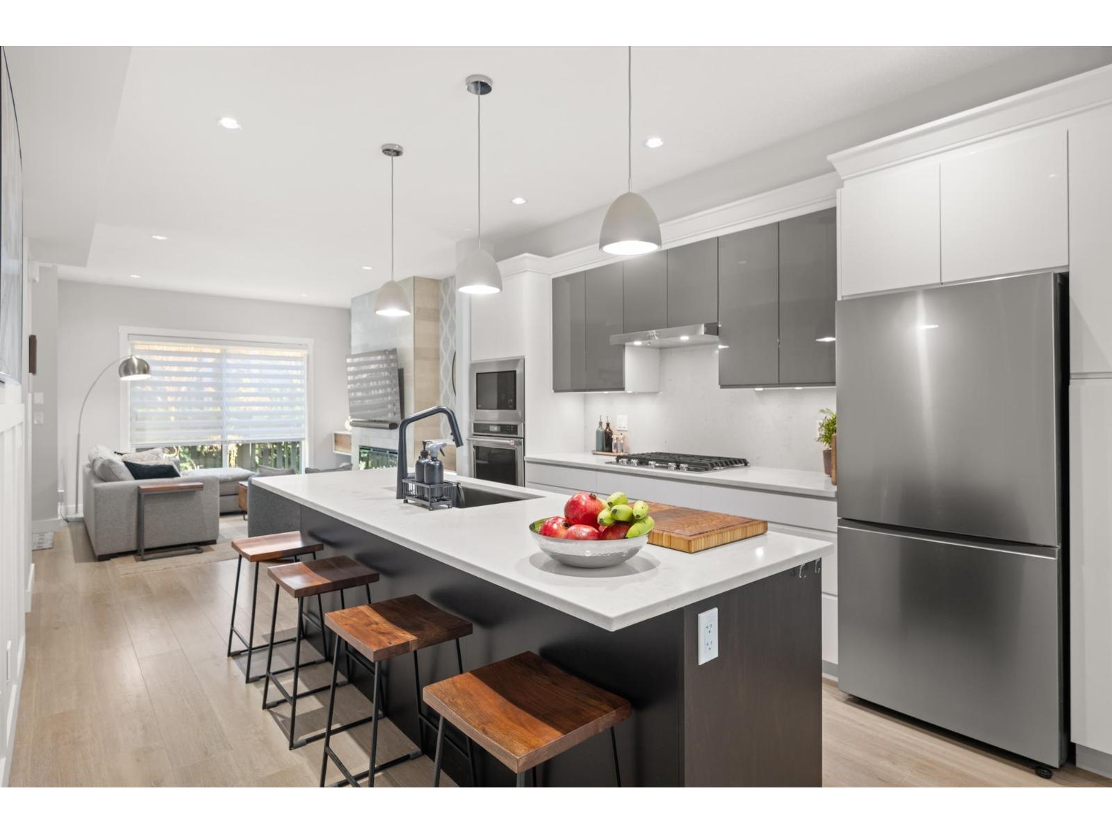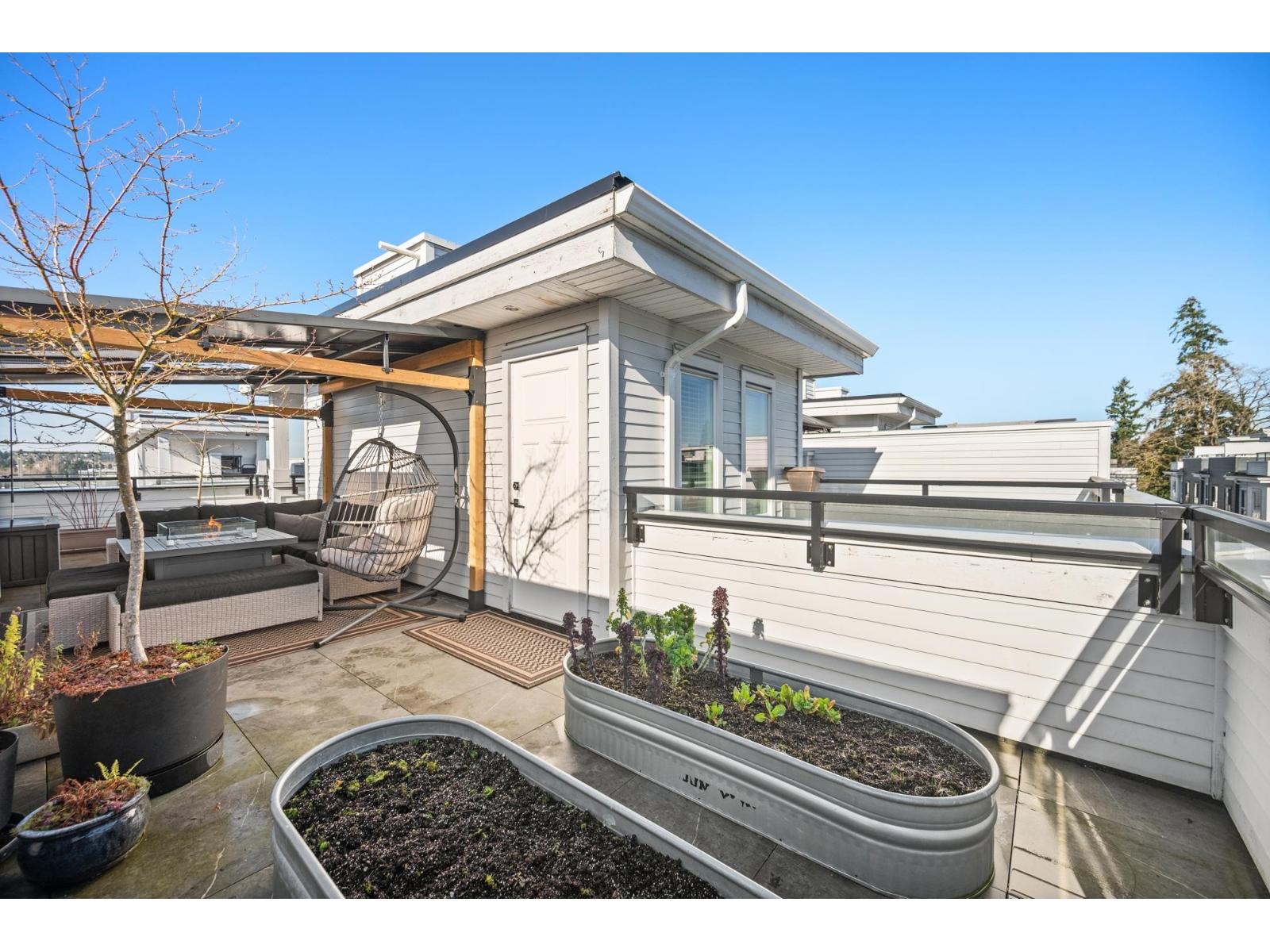 $328.88 MonthlyRefined townhome living at SOHO by Zenterra, ideally located in the heart of Grandview Corners. An open concept kitchen anchors the living and dining areas, featuring new cabinetry, fresh paint and new carpet throughout. The main floor powder room has been updated with a new vanity, sink and mirror, complemented by LED touch mirrors in all bathrooms. A private 460 SF rooftop deck offers a custom gazebo that will remain, along with a BBQ rough in that may also be used as a fire table, creating an elegant space for entertaining or quiet moments outdoors. EV rough in and a double tandem garage with room for an at home gym. Steps to shops, dining, amenities and top schools including Grandview Heights Secondary, Edgewood Elementary and Southridge Private School. (id:44393)