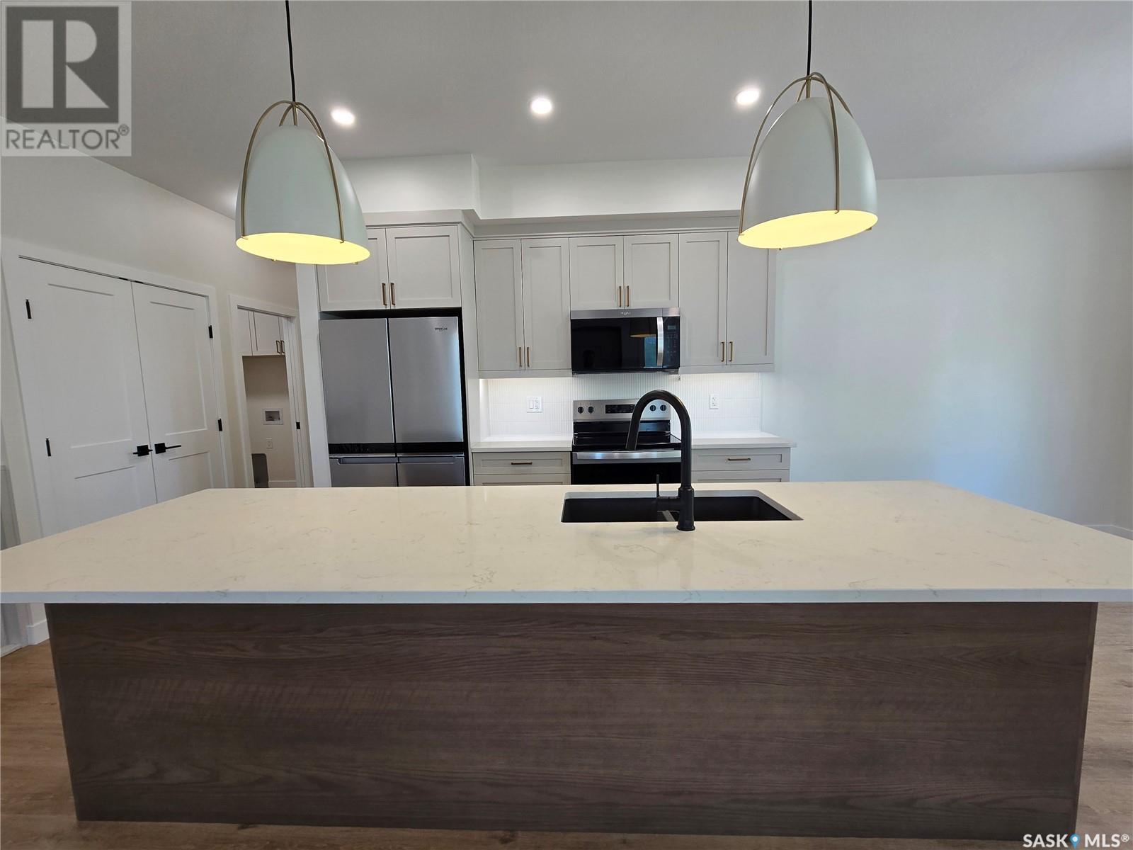 Brand New 3-Bedroom Bungalow in a Premier New Development – 1,440 Sq Ft with Triple Car Garage Welcome to your dream home! This brand-new 1,440 sq ft bungalow is located in a vibrant new development and offers the perfect blend of modern design, high-end finishes, and spacious living. Step inside to discover an open-concept layout with three generously sized bedrooms, including the Master bedroom with a gorgeous En-suite and another full bathroom, ideal for families, downsizers, or anyone seeking comfort and style. The heart of the home is the stunning kitchen featuring a large central island, perfect for entertaining, casual meals, or extra prep space. High-quality cabinetry, stylish fixtures, and modern flooring flow seamlessly throughout the main level. The abundance of windows floods the living space with tons of natural light. Enjoy the serenity of your covered deck and your backyard that features mature trees. Unwind in the inviting living area with a sleek electric fireplace, creating a warm and contemporary focal point. The unfinished basement offers endless possibilities to customize and expand your living space to suit your needs – whether it's a home gym, media room, or additional bedrooms. Car enthusiasts and hobbyists will love the triple car garage, offering ample room for vehicles, storage, and workspace. With new infrastructure and located in a thoughtfully planned community, this home is move-in ready and built for long-term low maintenance, comfort and efficiency. This new home comes with a 1year New Home Warranty. The home also comes with a 3year tax exemption from the City of Weyburn that is transferable to the Buyer. Don’t miss your chance to own a quality new build in a growing neighborhood. (id:44393)