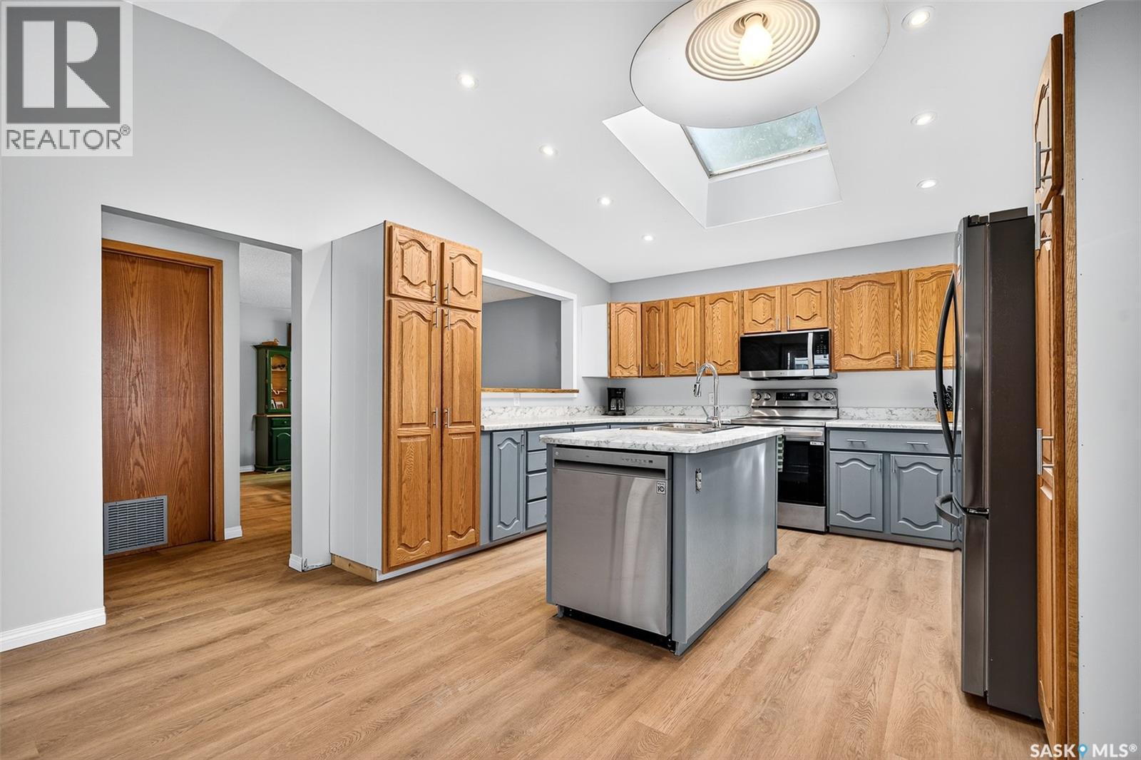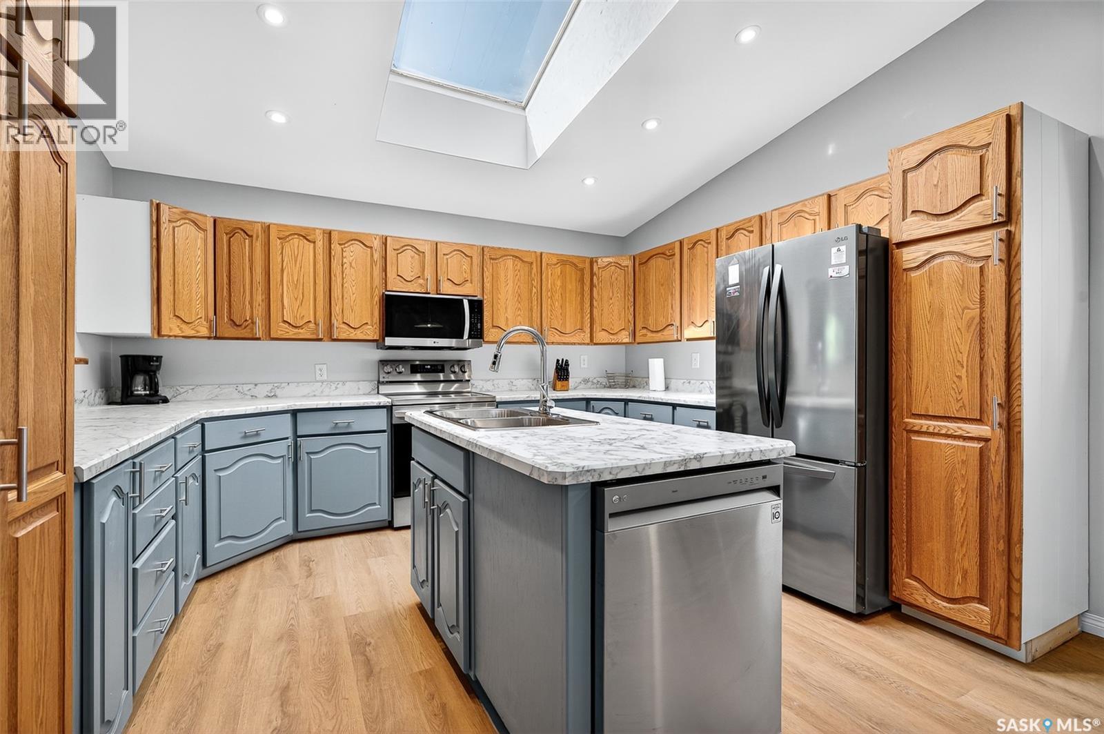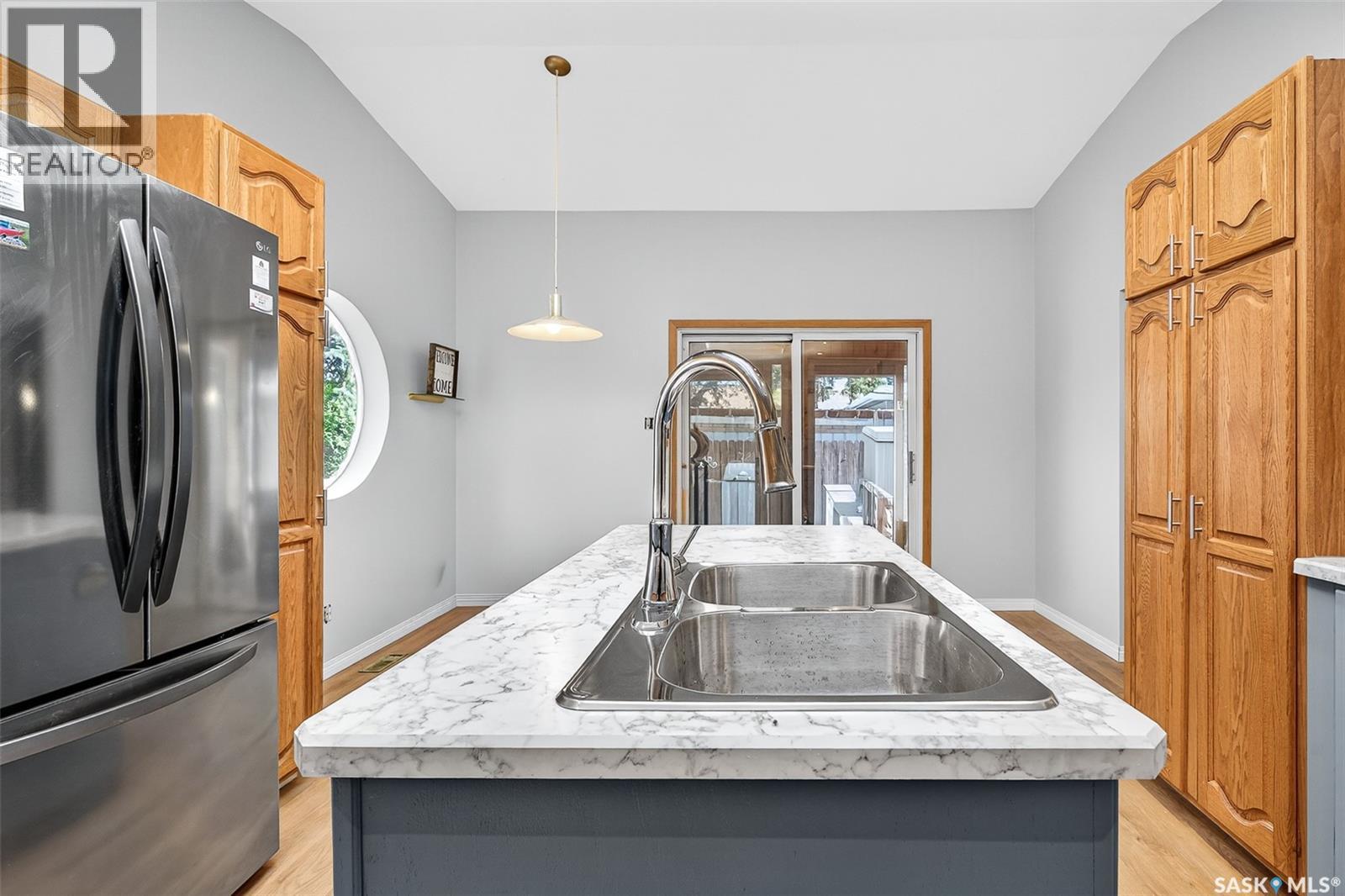 Beautiful character home situated in the shade of stately oak trees just a few blocks walking distance to all the amenities downtown Moose Jaw has to offer with shopping, restaurants, park, library, museum & more! So many features you will appreciate starting with the oversized lot that extends to the street behind for easy garage access! This home has seen many recent updates but maintains a taste of historical charm with a mid-century modern touch that you will see evidenced in the open staircase in the Living Room which has an open feeling due to the tall ceiling. There is a large formal Dining Room that leads to a Kitchen designed with family & entertaining in mind with tons of cabinet & countertop space, island & room for a casual eating area with unique “porthole” window to the backyard. This level also features the Primary Bedroom, renovated Bath, MAIN FLOOR LAUNDRY & a 3 season SunRoom while the 2nd floor offers 3 additional Bedrooms & a 2nd Bath. The lower level is finished space with an L-shaped Family Room, Den with shelving for great storage & utility room. Outside, the yard is a private, mature greenspace with the main attraction being the oversized DOUBLE HEATED GARAGE with workshop space! This is a great home with space for your family – inside & out! (id:44393)