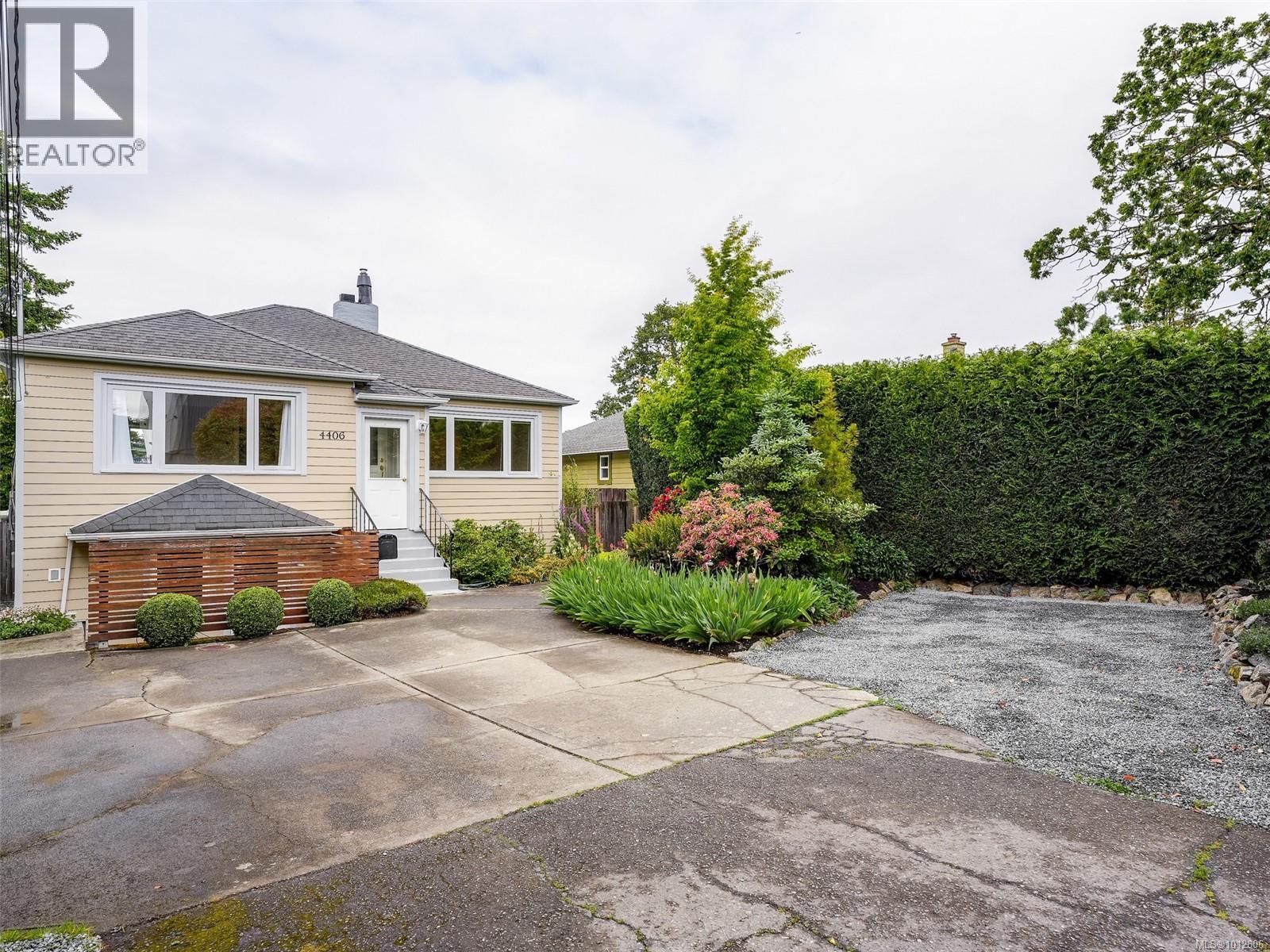 Welcome to 4406 Torquay Dr, a well-maintained 4 bed, 3 bath home in the heart of Gordon Head, ideally located across from Torquay Elementary School. The main level offers an updated kitchen, bright living area, dining room with built-in cabinetry, 2 bedrooms, and a full bath. Downstairs, the main home continues with a third bedroom and second full bath, perfect for teens, guests, or a home office. A private 1 bed, 1 bath in-law suite with its own entrance provides flexibility for extended family or added income. Thoughtful upgrades include a gas furnace, 200-amp electrical service, new hot water tank, updated finishes throughout, and heated floors in the upper bathroom and lower suite living area. The versatile layout adapts to many lifestyles, and the beautifully landscaped back yard enjoys abundant sunshine for gardening, entertaining, or relaxing. In a sought-after, walkable neighbourhood near UVic, parks, and transit, this move-in ready home balances comfort and functionality. (id:44393)