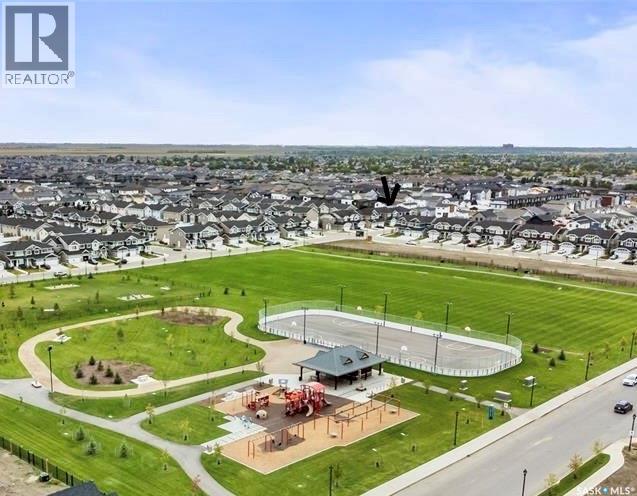Welcome to this beautifully maintained two-storey attached home in the thriving community of The Towns, ideally located just a one-minute walk from Horizon Park. This move-in-ready property is perfect for families, first-time buyers, or investors looking to settle in one of Regina’s most desirable and rapidly growing neighbourhoods. The original owner has taken great care of the home — returning from Calgary after tenancy to personally oversee professional carpet cleaning, interior touch-up painting, and a full house deep clean. The main floor features a bright, open-concept layout with a modern kitchen that includes quartz countertops, stylish cabinetry, new fridge, a walk-in pantry, and a large island ideal for hosting or everyday use. The dining and living areas are flooded with natural light and overlook the backyard. A convenient 2-piece bath completes the main level. Upstairs, you’ll find three spacious bedrooms, a 4-piece main bathroom, a flex area perfect for a home office or play space, and a dedicated laundry area. The primary suite offers a walk-in closet and 4-piece ensuite. The basement is fully developed, offering a large rec room with wet bar, additional bedroom, and full bathroom — perfect for extended family or guests. A separate side entrance offer potential for future rental or Airbnb use, subject to City of Regina approval.The fridge was replaced last year. As per the Seller’s direction, all offers will be presented on 11/06/2025 12:18AM. (id:44393)