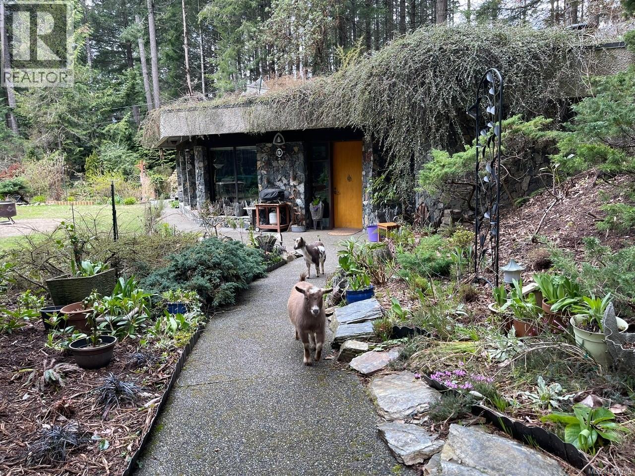 Want to own the most unique home on the island? A gardener’s paradise surrounds this professionally engineered rock-faced solid concrete home with a living roof blending right into nature. Experience complete privacy on this maintenance free, deer fenced south-facing 10-acre property featuring a home that is modern and bright inside. Enjoy huge windows in almost every room, high-end appliances, granite countertops and an enormous walk-in pantry in a comfortable, light-filled space designed for efficiency. The kitchen features a built-in fridge and dishwasher, and a new propane cooktop. There are 3 bedrooms, with the master having new heated tile floors and ensuite bathroom with a large river rock shower and giant soaker tub. This home has high end cherry cabinetry in the kitchen and laundry room, where there is ample storage. The home’s natural thermal mass leads to minimal temperature fluctuations, making AC unnecessary in the summer. Outside is a gardener’s playland; fruit trees, flowers and berries, all on automatic irrigation. A roof top greenhouse and veggie garden supports year-round growing. Your food forest awaits! Unwind on the yellow cedar deck, cool off in the above-ground pool, or soak in the hot tub under the stars with an outdoor propane shower surrounded in vines just 2 steps away. At the end of a dead end country road there is nothing but peace, quiet and your own ocean view hilltop to see the sea in one direction or sunsets in the other. Escape the worries of the world with your ability to grow food, have your own fresh eggs from the chicken coop or be self sustaining. There is a generator to run the well if needed during power outages, and the home would be exceptionally easy to convert to solar to be off grid if desired. The well is a high yield bottomless 20 gpm well with 2 new pressure tanks. A rare opportunity to own a peaceful forest home with privacy, natural beauty, and ocean views from your own wild flower-covered hilltop lookout. (id:44393)