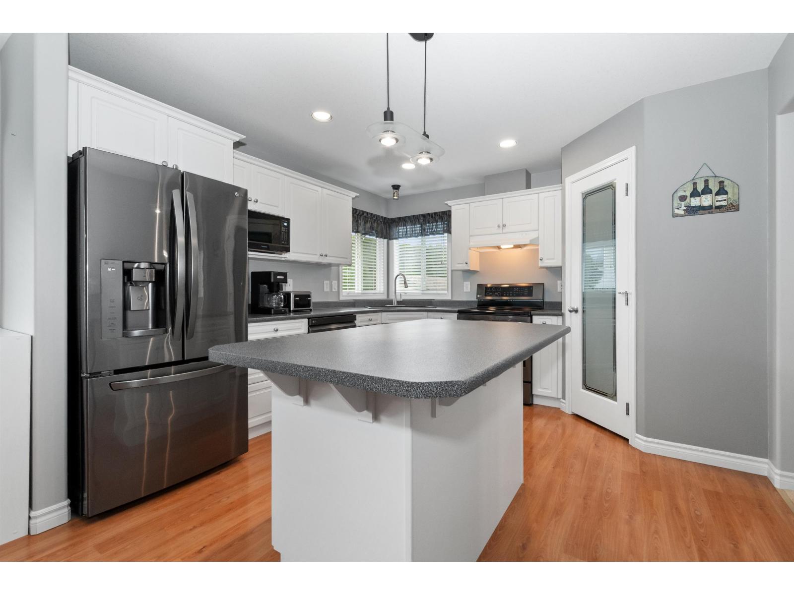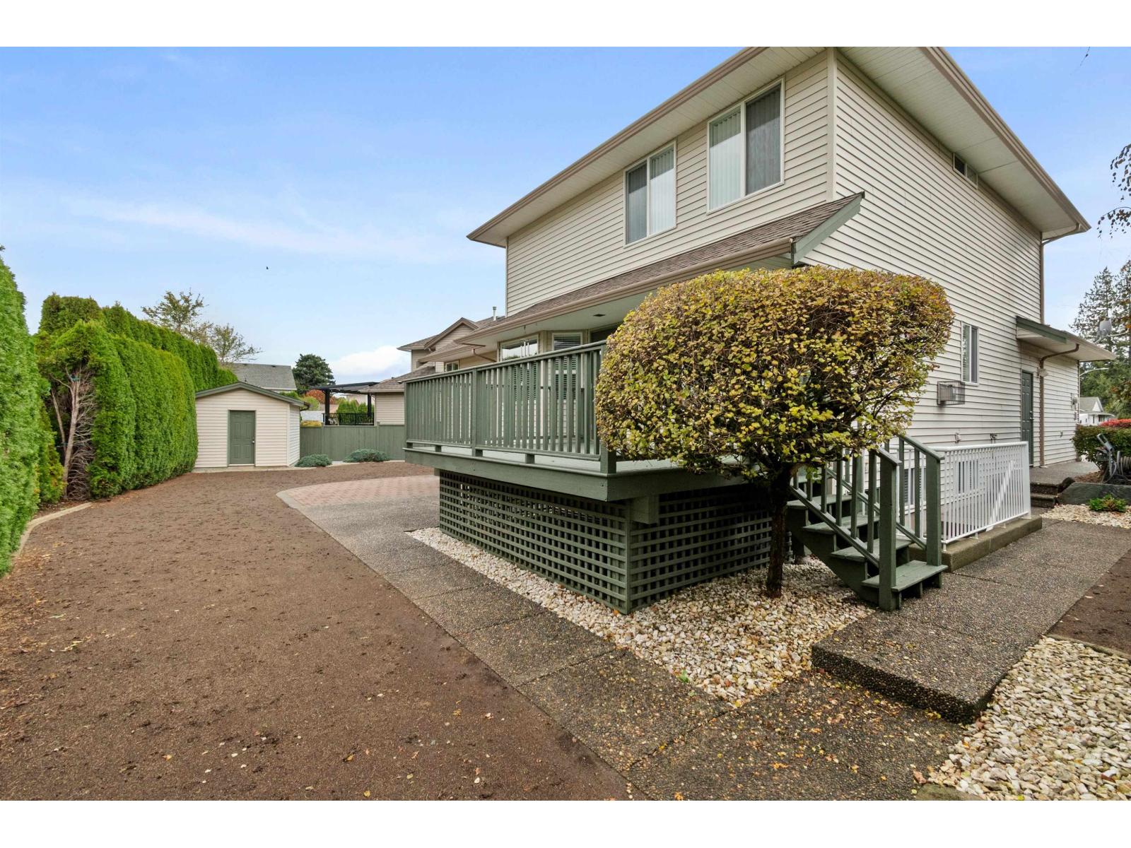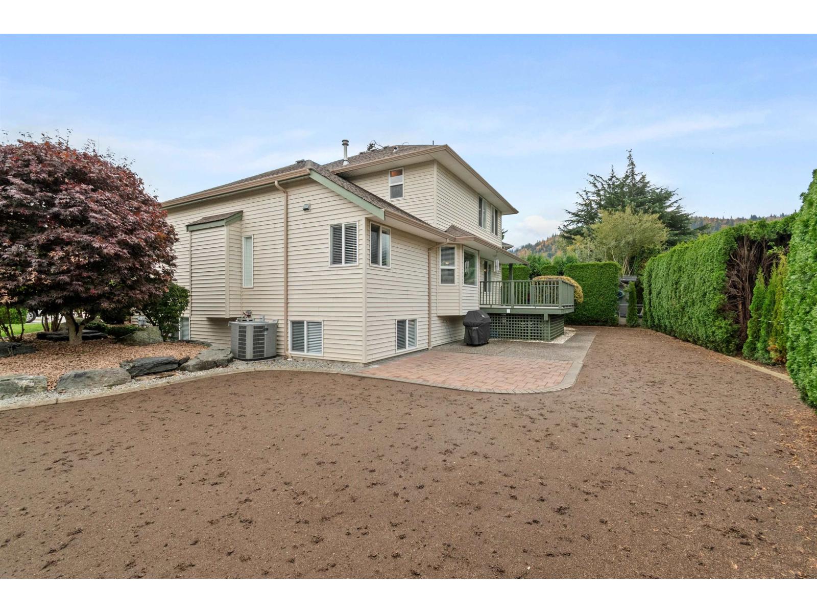 Welcome to this spacious 3,119sqft 2-storey home w/fin bsmt -perfect for your family! Main floor features a bright living room w/formal dining area (incl hutch alcove), a large white kitchen w/an island & plenty of cupboards & counter space. The kitchen opens to a generous eating area and a cozy family room with a natural gas fireplace, plus access to a large deck and patio. Large laundry room & 2pce bath round out the main. Upstairs offers 3 roomy bdrms, incl primary suite w/walk-in closet & ensuite feat soaker tub & separate shower. The bsmt is easily suitable, w/open-concept layout, 2 additional bdrms & full bath. Enjoy the private, hedged backyard w/storage shed, double garage & heat pump -all located on a quiet cul-de-sac close to schools, Vedder River fishing & trails. * PREC - Personal Real Estate Corporation (id:44393)