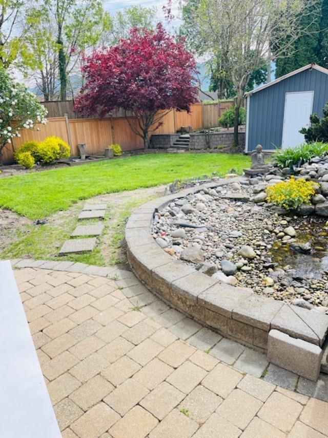 Welcome to this well-maintained 4 bed, 3 bath basement entry home in a family-friendly Sardis neighbourhood! Offering 2,300+ sqft of living space on a 7,800+ sqft lot, this home features fresh paint, new blinds & a bright, spacious layout. The main floor boasts a warm, inviting kitchen with rich cabinetry, plus a generous primary bedroom with 4-piece ensuite & 2 additional generous bedrooms + 4 piece main bathroom. Downstairs offers a fully finished 1-bed suite with separate entry (perfect as a mortgage helper or for extended family) plus an additional den/office space. Enjoy the beautifully landscaped, private backyard oasis with covered deck & storage shed. Ample parking with double garage + 4 driveway spots. Walk to schools, parks & transit, and just minutes to shopping & recreation. (id:44393)