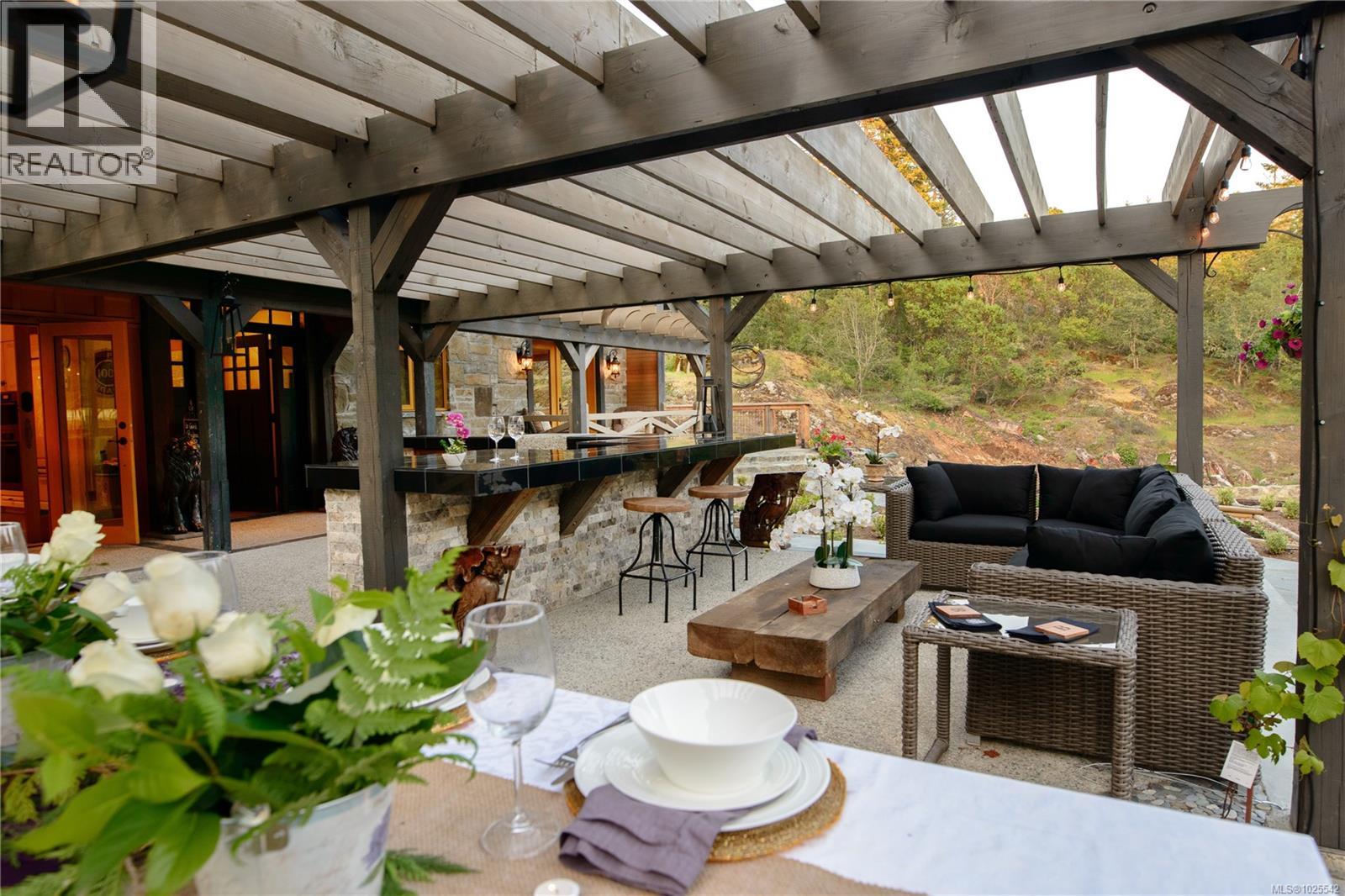 A private 17-acre West Coast lodge estate in Prospect Lake, just 20 minutes from downtown Victoria. Bella Farm is a once-in-a-generation offering, blending timeless architecture with exceptional privacy, beauty, and flexibility. The 5,000+ sq ft main residence is thoughtfully designed for multigenerational living, functioning seamlessly as a gracious single home or adaptable into multiple private living areas for family, guests, or evolving lifestyle needs. Zoned A2 (Rural Residential -Two Dwelling), the property permits a second full-size residence, offering rare long-term value and legacy potential. The grounds are extraordinary, featuring established gardens, orchards, terraced landscapes, and irrigation systems supporting a self-sustaining lifestyle. Detached studio buildings add versatility for creative, wellness, or professional use. Bella Farm may be offered fully furnished, allowing for an effortless transition into a beautifully curated home. Additional information available under the property's established name, (id:44393)
