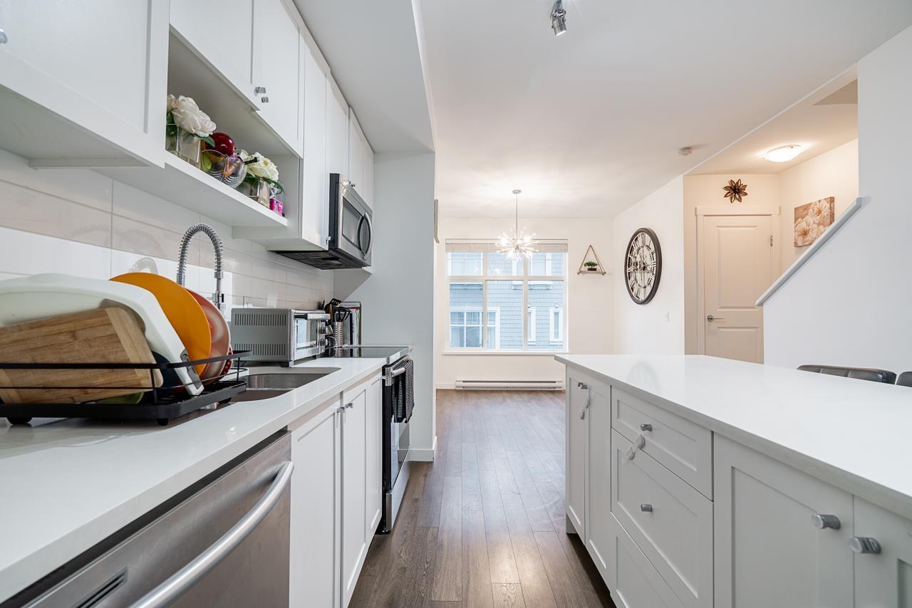 $336 MonthlyWelcome to Kings Landing II by Dawson + Sawyer. This well-maintained 4 bed, 4 bath townhome offers over 1,500 SF across 3 levels. Entry level features a bedroom with full ensuite-perfect for guests, teens, or a private office. Main floor boasts 10' ceilings, sunken living room, spacious kitchen with oversized island, quartz counters, tile backsplash, and stainless steel appliances. Upstairs includes a king-sized primary bedroom with walk-through closet and spa-inspired ensuite with double vanity and oversized shower, plus 2 more bedrooms, full bath, laundry, and linen storage. Side-by-side double garage, clubhouse access, and close to transit, schools, parks, and shopping. (id:44393)