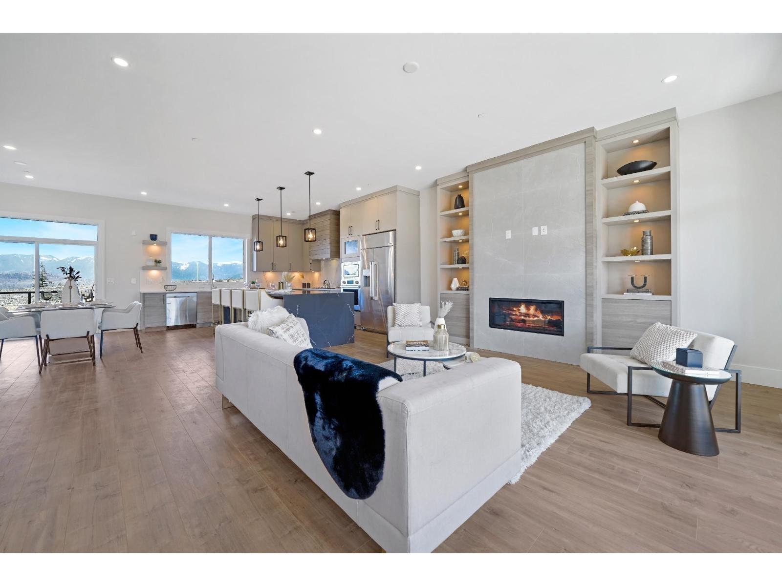 Discover your perfect home in Chilliwack's Promontory! Built in 2023, this 7-bed, 5-bath residence blends modern elegance with family-friendly design. The bright, open-concept main floor boasts a gourmet kitchen with Dacor appliances, a double waterfall quartz island, and custom cabinetry. Enjoy a spacious living room with gas fireplace, a media room, bedroom/office, and covered patio. Upstairs, the primary suite features Cultus Lake views, a spa-like ensuite with walk-in shower, soaker tub, and dual vanities, plus 3 bedrooms, 2 baths, and laundry. A 2-bed legal suite with separate entry and patio offers rental income potential. Nestled in Promontory, enjoy top schools, hiking, biking, and parks with mountain and lake views. Move in today! (id:44393)