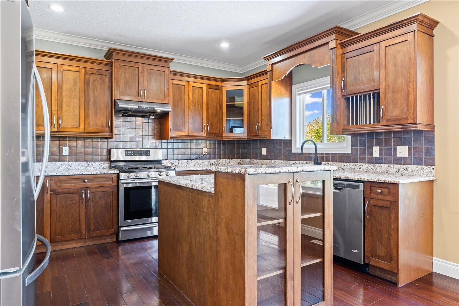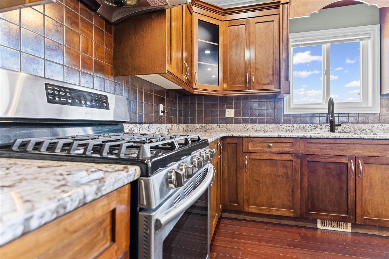 This isn't your basic family home. With 6 bedrooms + den, 4 bathrooms, and 3,548 sq ft of living space, there's room for everyone"-and then some. Cook like a pro with a gas range, granite counters, and gorgeous cabinetry. Kick back on the massive two-level deck, take in the stunning mountain + valley views, or unwind in your private backyard that backs onto green space. The primary bedroom brings the retreat vibes with a soaker tub, stand-up shower, and walk-in closet. Bonus: a full in-law suite with its own entry. No-thru street, new A/C (2021), hot water tank (2023). This one just feels right. (id:44393)