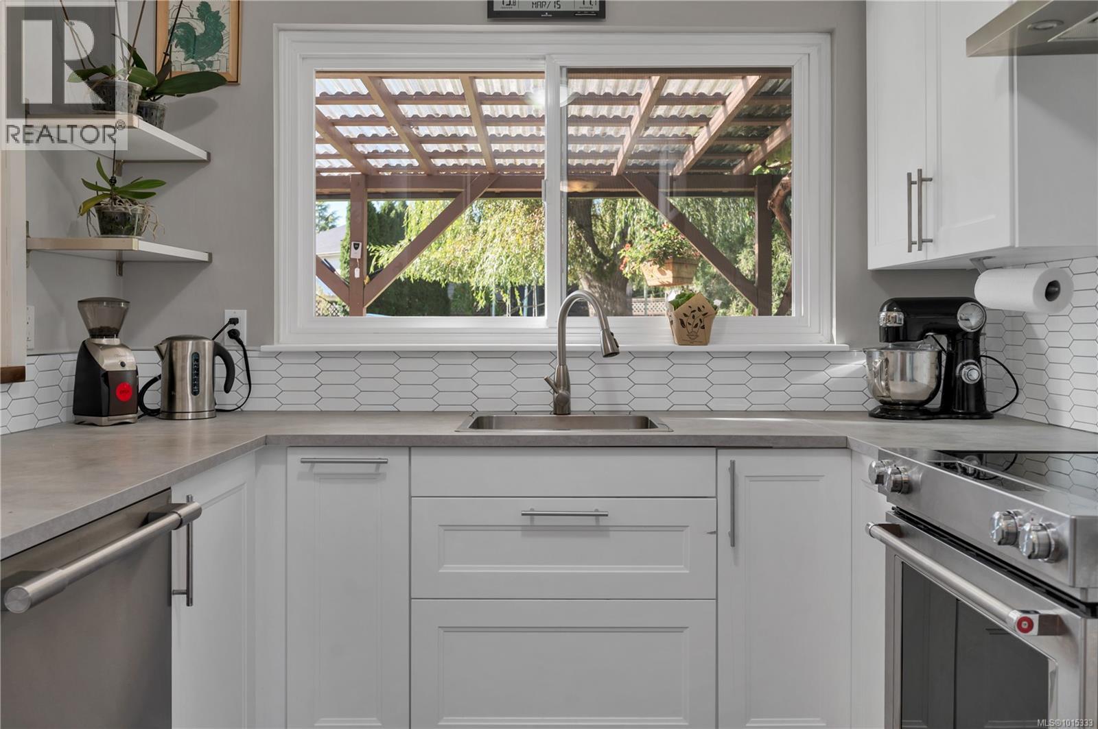 This beautifully updated 3-bedroom, 2-bathroom rancher offers comfort and style throughout. The spacious primary suite features a walk-in closet and a 2022-renovated ensuite with a tiled shower, glass door, heated floors, and a generous vanity. Large windows and a cozy woodstove brighten the inviting living room, while the adjoining family/dining area flows into the modern kitchen, featuring white cabinetry, stainless steel appliances, a tile backsplash, updated countertops, and an eating bar. Recent updates include a new stove (2024), washer (2024), dryer (2025), and hot water tank (2025). Step outside to a private 0.24-acre backyard oasis with a covered patio, mature trees, raised garden beds, a weeping willow, grapevines, and blueberry bushes. Located on a quiet cul-de-sac in central Campbell River—close to schools, shopping, and recreation. (id:44393)