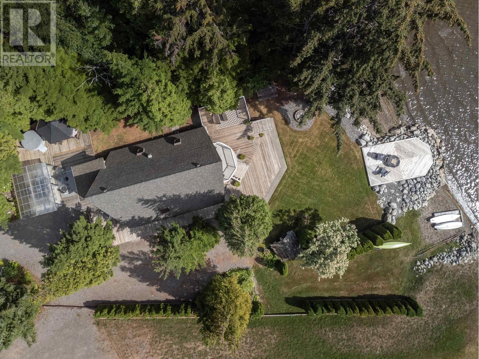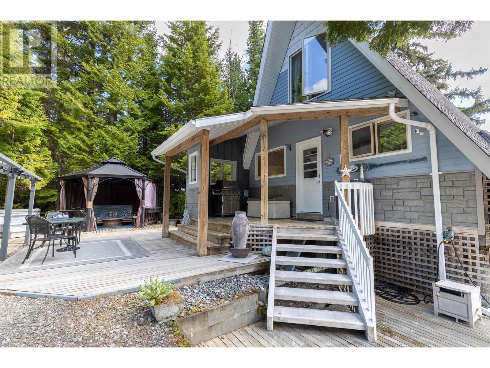 * PREC - Personal Real Estate Corporation. Rare lakefront investment or getaway! This 2+ 1 bed, 1 bath cottage plus 2 bed, 1 bath carriage home and shop sits on 1 + acre on Lakelse Lake. Enjoy income potential or host guests with multiple living spaces. The cottage offers cozy charm, while the outdoor area is built for relaxation - sundecks, hot tub, patio, and firepit. Shop and sea can storage add function for hobbies or business. Property landscaped beautifully with garden beds, grass, and cedar shrubs. Extra land across the road is great for extra RV's or more development. Prime location on Lakeside Drive with approximately 86 ft of lake frontage and direct beach access - an ideal year-round retreat! (id:44393)