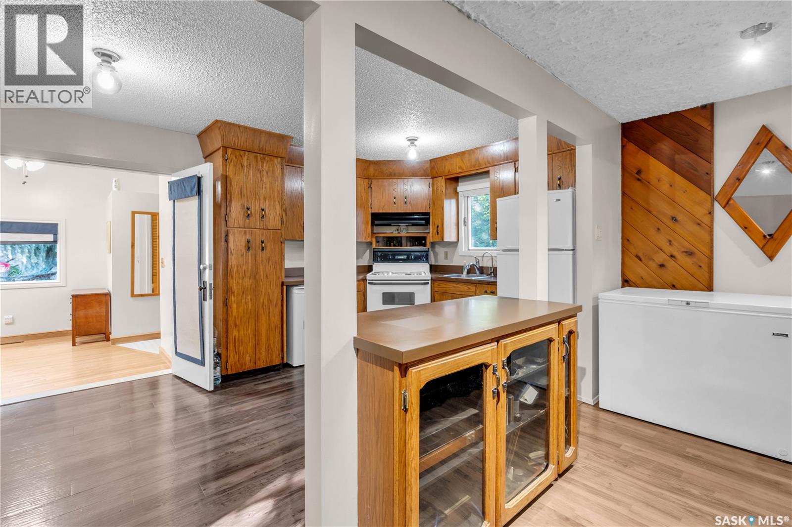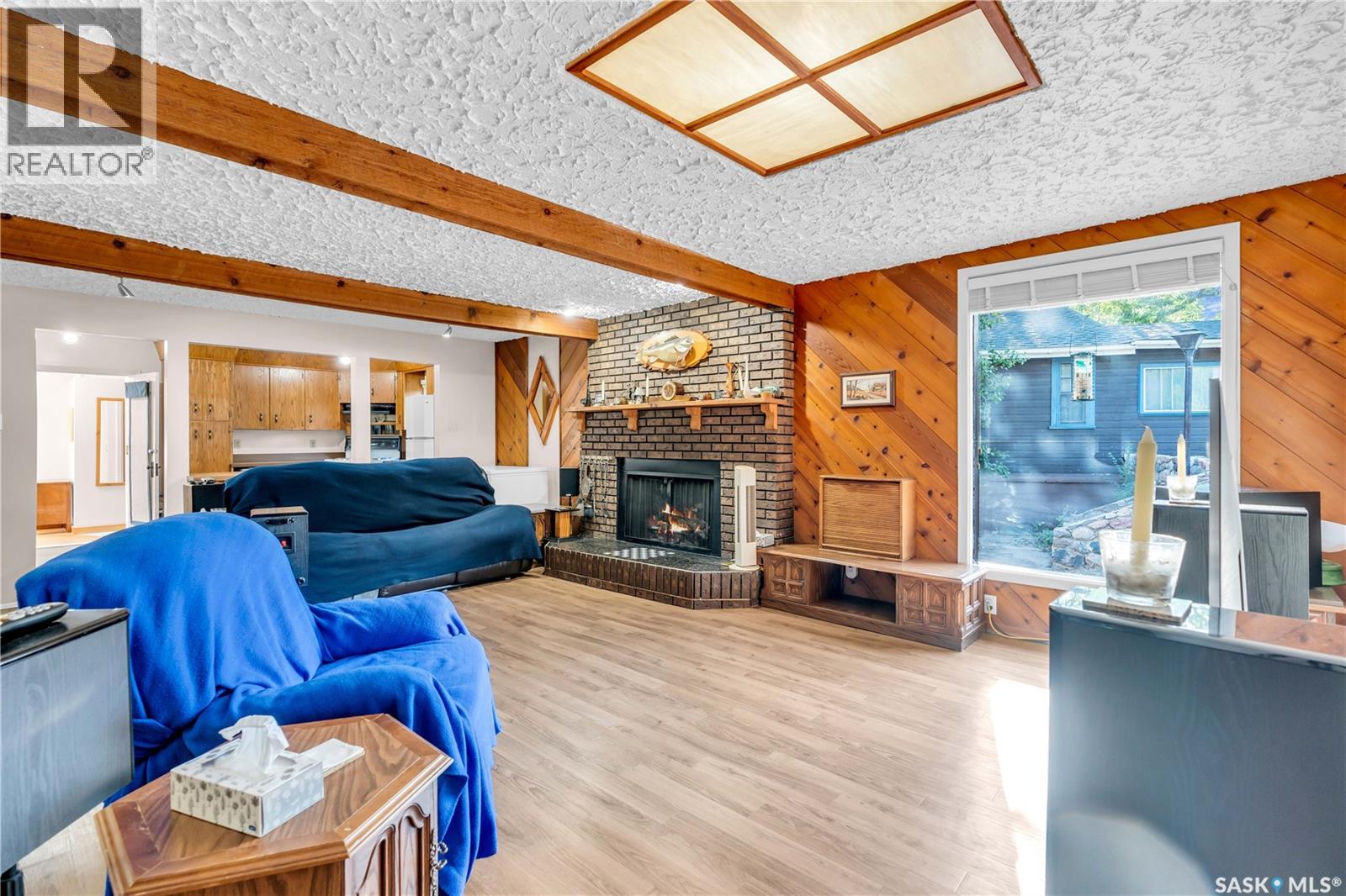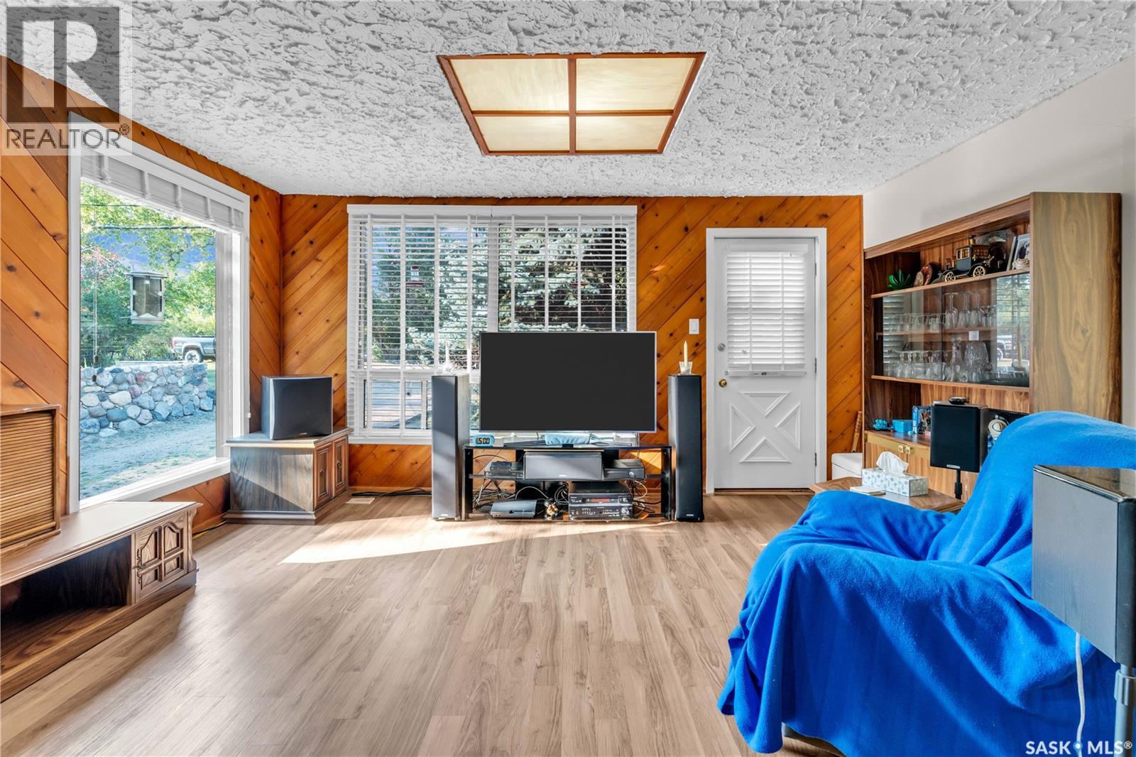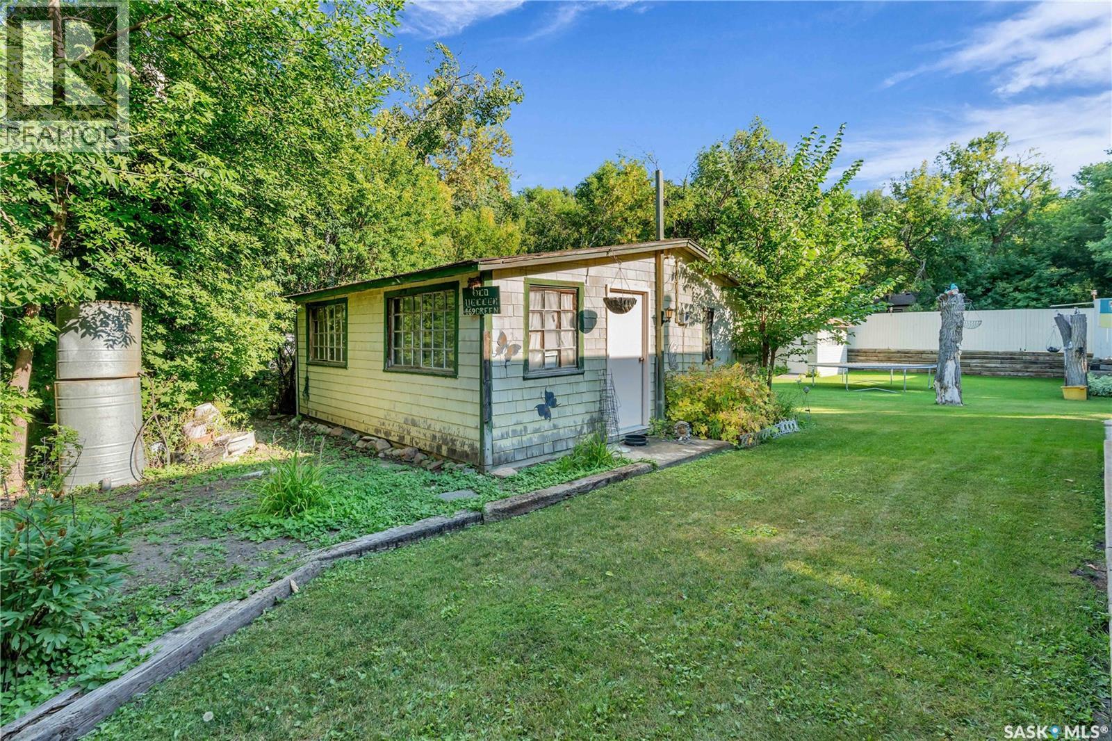 This isn’t just a cabin at the lake—it’s a true four-season home designed for comfort, relaxation, and connection with nature. Nestled on a rare double lot (116 ft x 132 ft), this property offers endless opportunities: keep it as your private retreat, build your dream home, or subdivide for two residences. For over 50 years, this home has been lovingly cared for, and it shows. Inside, you’ll find a bright and versatile flex space at the back—perfect as a dining room, office, guest room, or playroom. The kitchen offers solid cabinetry and plenty of space, opening seamlessly to the living room where a cozy wood-burning fireplace becomes the heart of the home during winter months. Two comfortable bedrooms, a 4-piece bathroom, and a convenient laundry nook complete the layout. Durable luxury vinyl plank flooring runs throughout (with hardwood in the back room), making the home family-, pet-, and beach-day friendly. Step outside and you’ll be greeted by the beauty of nature: from the front deck you can spot deer and a variety of birds, while the backyard invites you to relax beneath a natural canopy of mature trees. Practicality meets convenience with both an oversized single detached garage (with lane access) and a front driveway for extra parking. Located just steps from Last Mountain Lake, you’ll enjoy fishing year-round, sandy summer days, and all the charm that comes with living in the vibrant community of Regina Beach—complete with shops, restaurants, and amenities. Whether you’re looking for a peaceful retreat, a full-time residence, or an investment opportunity, this property is a rare find that offers it all. (id:44393)