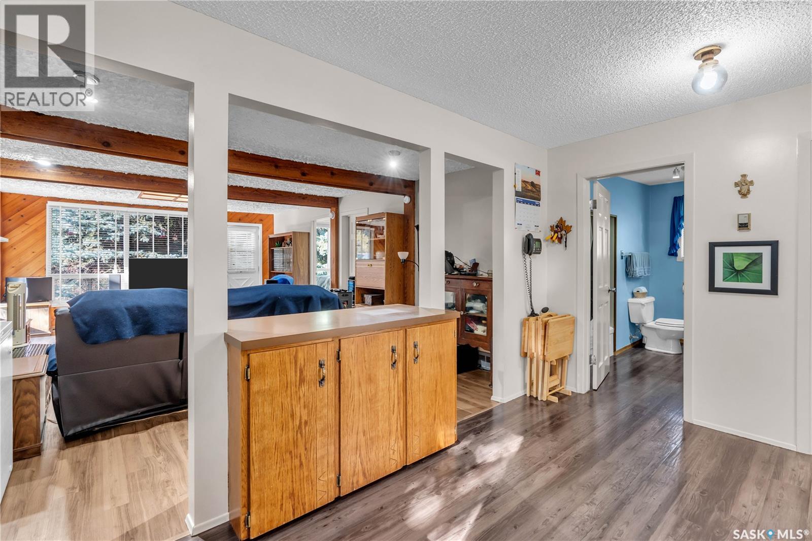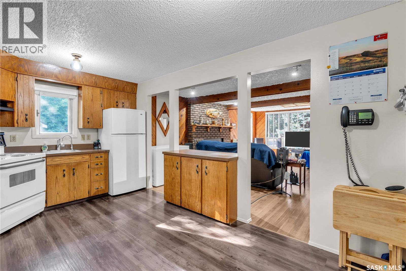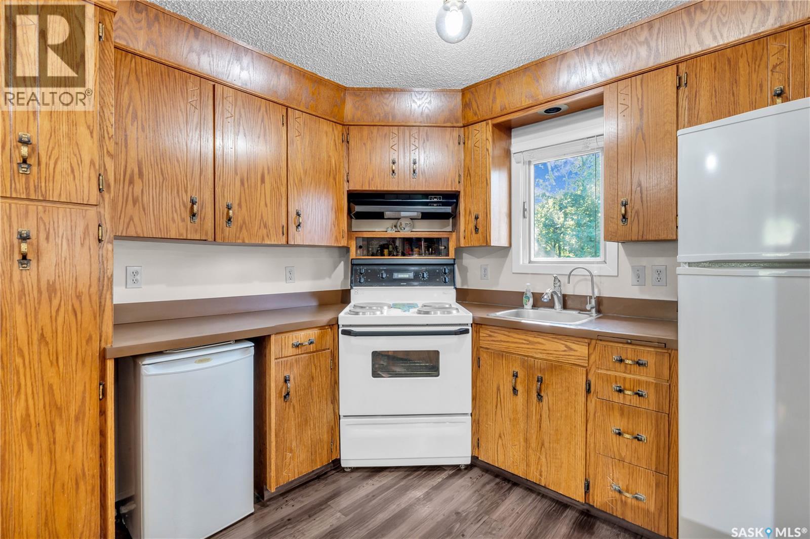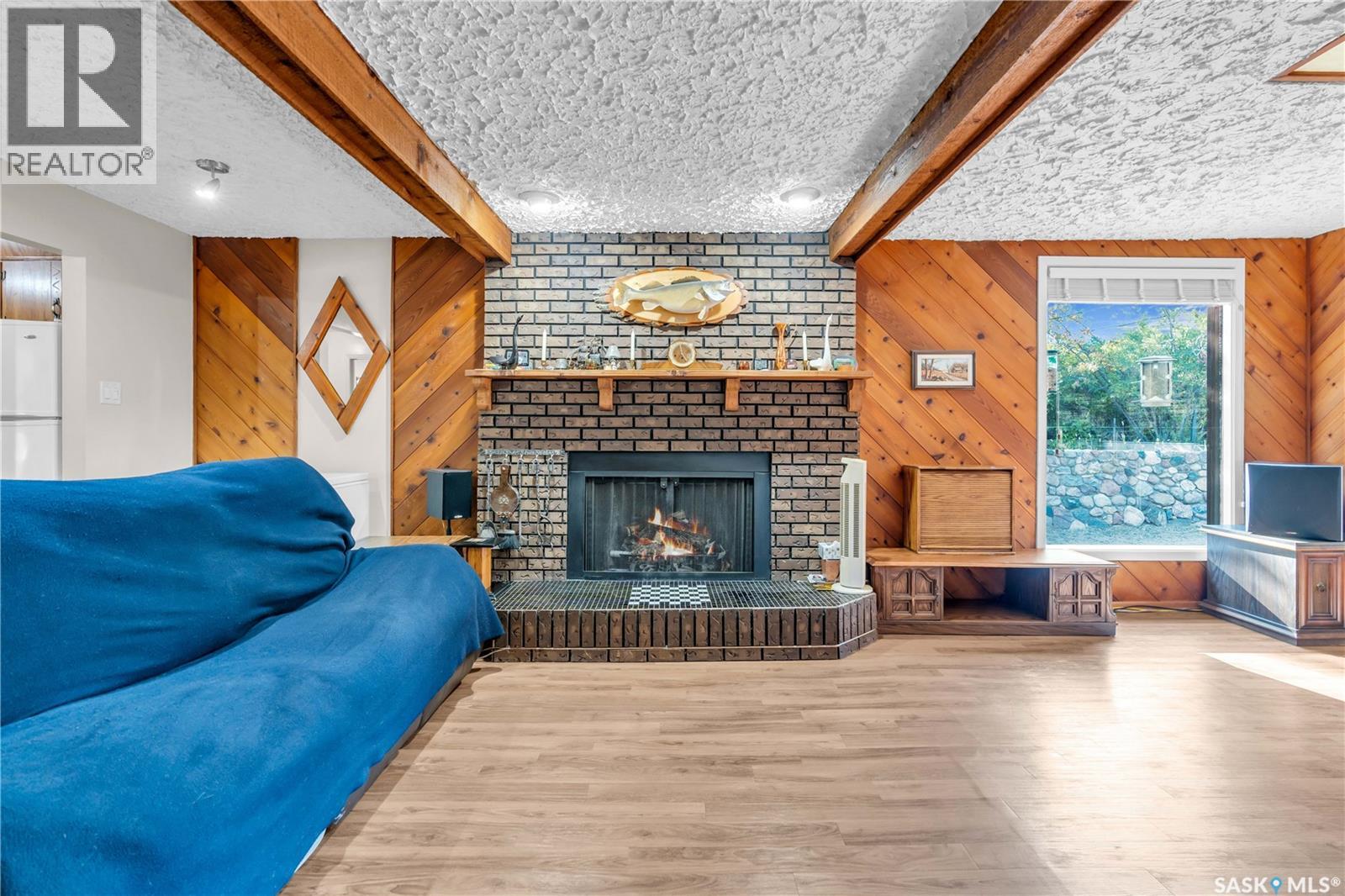 This isn’t just a cabin at the lake—it’s a true four-season home designed for comfort, relaxation, and connection with nature. Nestled on a rare double lot (116 ft x 132 ft), this property offers endless opportunities: keep it as your private retreat, build your dream home, or subdivide for two residences. For over 50 years, this home has been lovingly cared for, and it shows. Inside, you’ll find a bright and versatile flex space at the back—perfect as a dining room, office, guest room, or playroom. The kitchen offers solid cabinetry and plenty of space, opening seamlessly to the living room where a cozy wood-burning fireplace becomes the heart of the home during winter months. Two comfortable bedrooms, a 4-piece bathroom, and a convenient laundry nook complete the layout. Durable luxury vinyl plank flooring runs throughout (with hardwood in the back room), making the home family-, pet-, and beach-day friendly. Step outside and you’ll be greeted by the beauty of nature: from the front deck you can spot deer and a variety of birds, while the backyard invites you to relax beneath a natural canopy of mature trees. Practicality meets convenience with both an oversized single detached garage (with lane access) and a front driveway for extra parking. Located just steps from Last Mountain Lake, you’ll enjoy fishing year-round, sandy summer days, and all the charm that comes with living in the vibrant community of Regina Beach—complete with shops, restaurants, and amenities. Whether you’re looking for a peaceful retreat, a full-time residence, or an investment opportunity, this property is a rare find that offers it all. (id:44393)