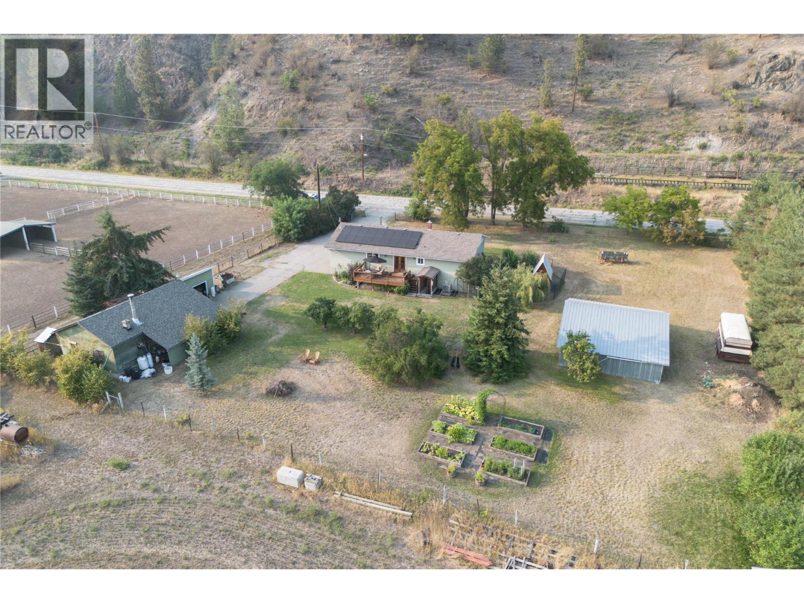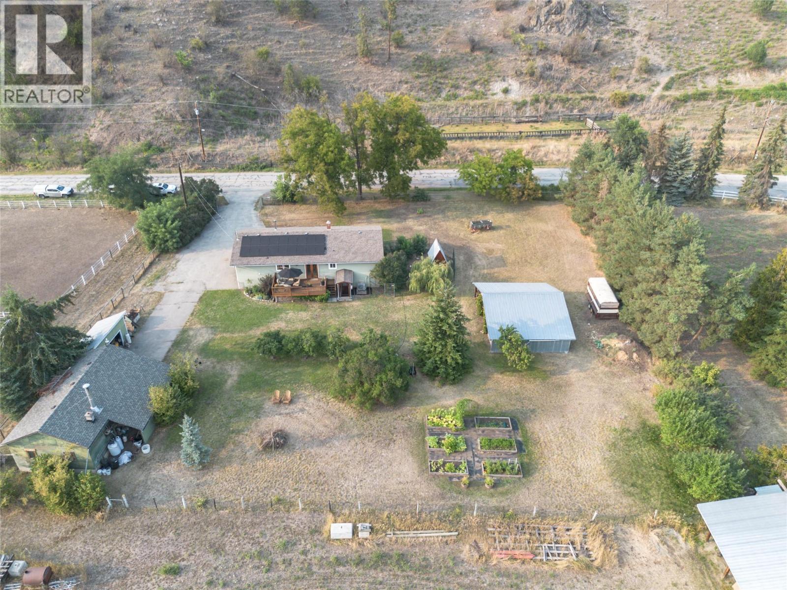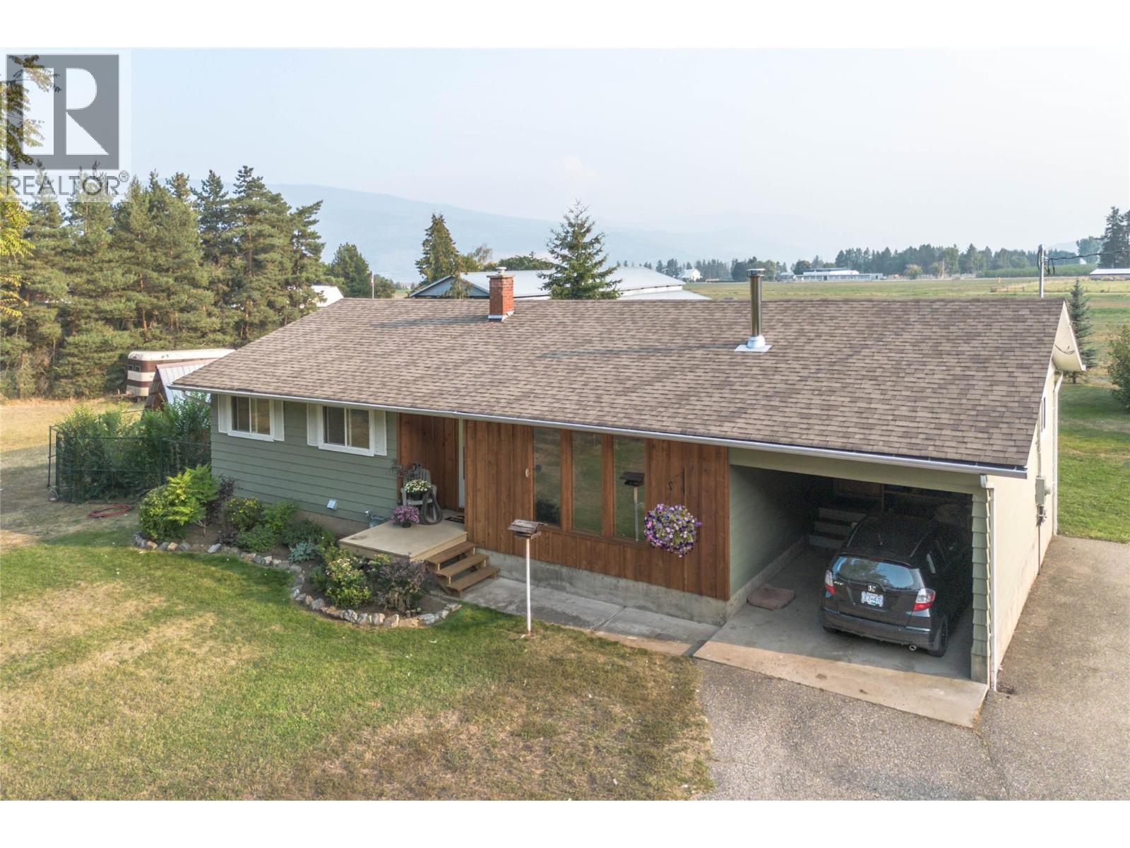 The perfect blend of rural tranquility and modern convenience! This charming 3 bedroom, 1 bathroom home sits on a beautifully cared-for small acreage just minutes from Armstrong and Vernon. The home offers a spacious kitchen layout, French doors off the dining room leading to a large deck with stunning backyard and valley views, and a partially finished basement with suite potential—providing flexibility for your future plans. Major updates have already been addressed, including solar panels (2024) for energy efficiency, a new shop roof (2024), redone windows, and a 14-year young roof on the home, leaving just your personal touch to make it your own. Outbuildings include a 27x33 shop/garage, a 34x28 open 3-bay storage barn, and a 9x19 storage shed. The property is gated, fully fenced, and beautifully maintained, complete with fruit trees, a thriving vegetable garden, and plenty of space for chickens or small animals. Set in a peaceful country location, yet close to town, this property offers a rare opportunity to enjoy the true Okanagan lifestyle. Move-in ready, full of potential, and waiting for you! (id:44393)