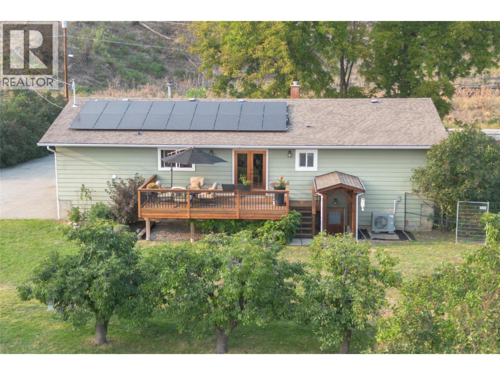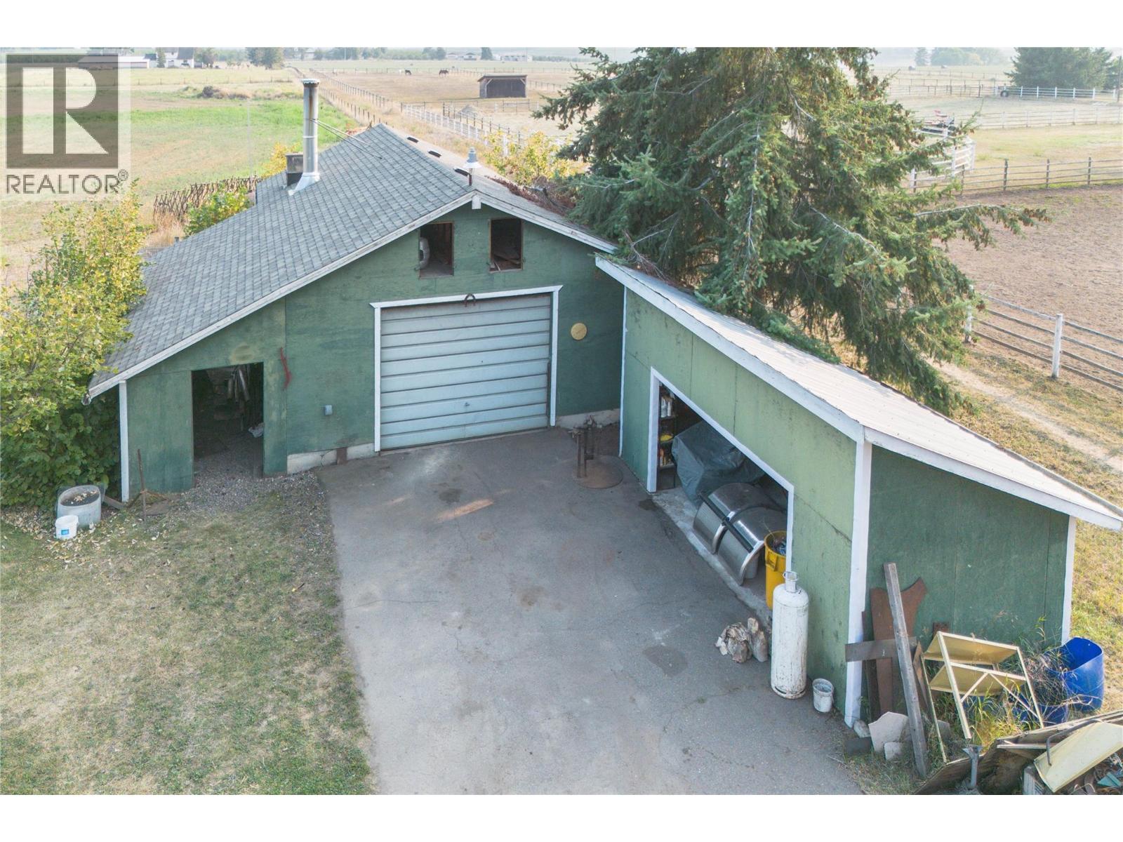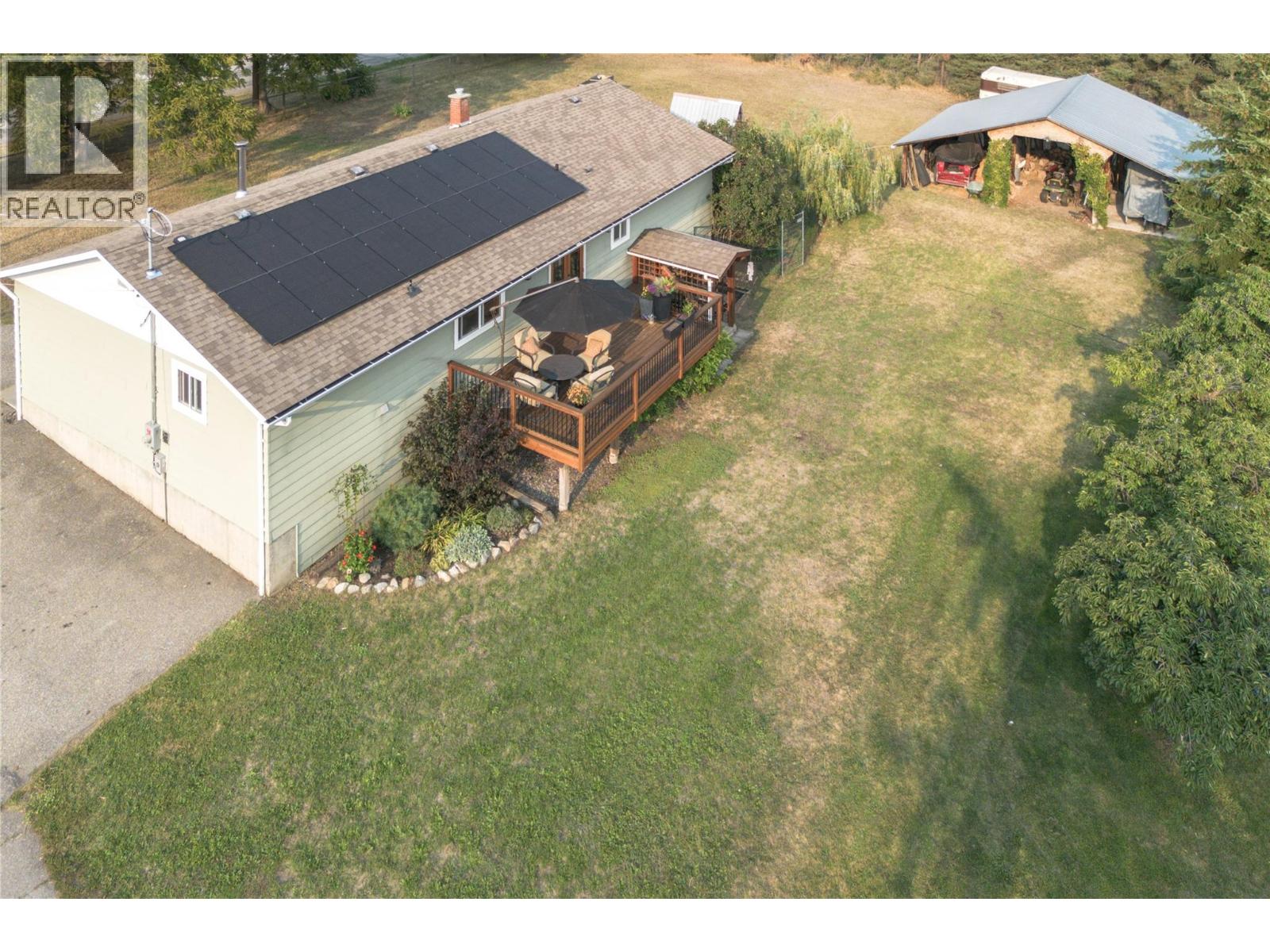 The perfect blend of rural tranquility and modern convenience! This charming 3 bedroom, 1 bathroom home sits on a beautifully cared-for small acreage just minutes from Armstrong and Vernon. The home offers a spacious kitchen layout, French doors off the dining room leading to a large deck with stunning backyard and valley views, and a partially finished basement with suite potential—providing flexibility for your future plans. Major updates have already been addressed, including solar panels (2024) for energy efficiency, a new shop roof (2024), redone windows, and a 14-year young roof on the home, leaving just your personal touch to make it your own. Outbuildings include a 27x33 shop/garage, a 34x28 open 3-bay storage barn, and a 9x19 storage shed. The property is gated, fully fenced, and beautifully maintained, complete with fruit trees, a thriving vegetable garden, and plenty of space for chickens or small animals. Set in a peaceful country location, yet close to town, this property offers a rare opportunity to enjoy the true Okanagan lifestyle. Move-in ready, full of potential, and waiting for you! (id:44393)