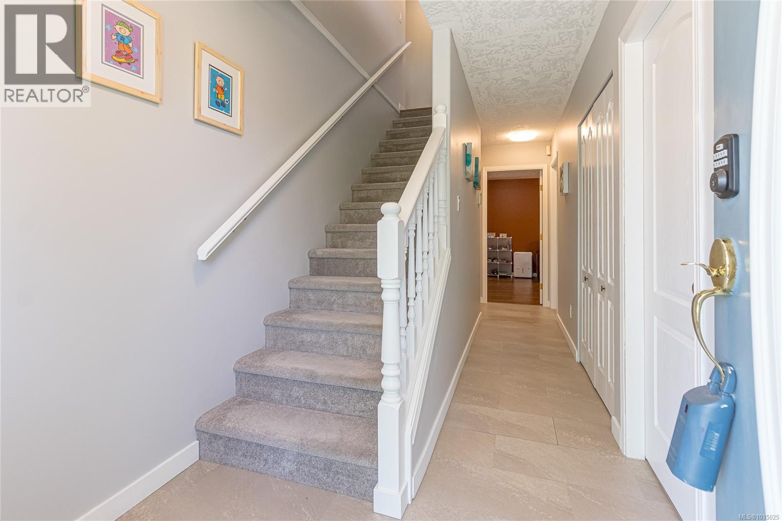 Here is an ideal family home close to Neck Point near Hammond Bay Elementary School (French Immersion). This family home features a large kitchen which overlooks your private backyard with a deck surrounded by trees/hedges & plenty of sunshine! The kitchen features lots of cupboards and an island eating bar and nook area. There is a generous sized living room with bright windows and a gas fireplace. The primary bedroom boasts an enormous walk-in closet as well as a 4 piece ensuite bathroom. There are 2 more bedrooms on this level as well as a main floor laundry room. Downstairs, you will find two more bedrooms and a finished rec room. This level also includes a bathroom with a shower. There is a built-in vacuum system. A double garage plus driveway and additional parking for an RV. The furnace & hot water tank were replaced in 2024 and the roof was replaced in 2021 so this will be a great maintenance free home for many years to come. (id:44393)