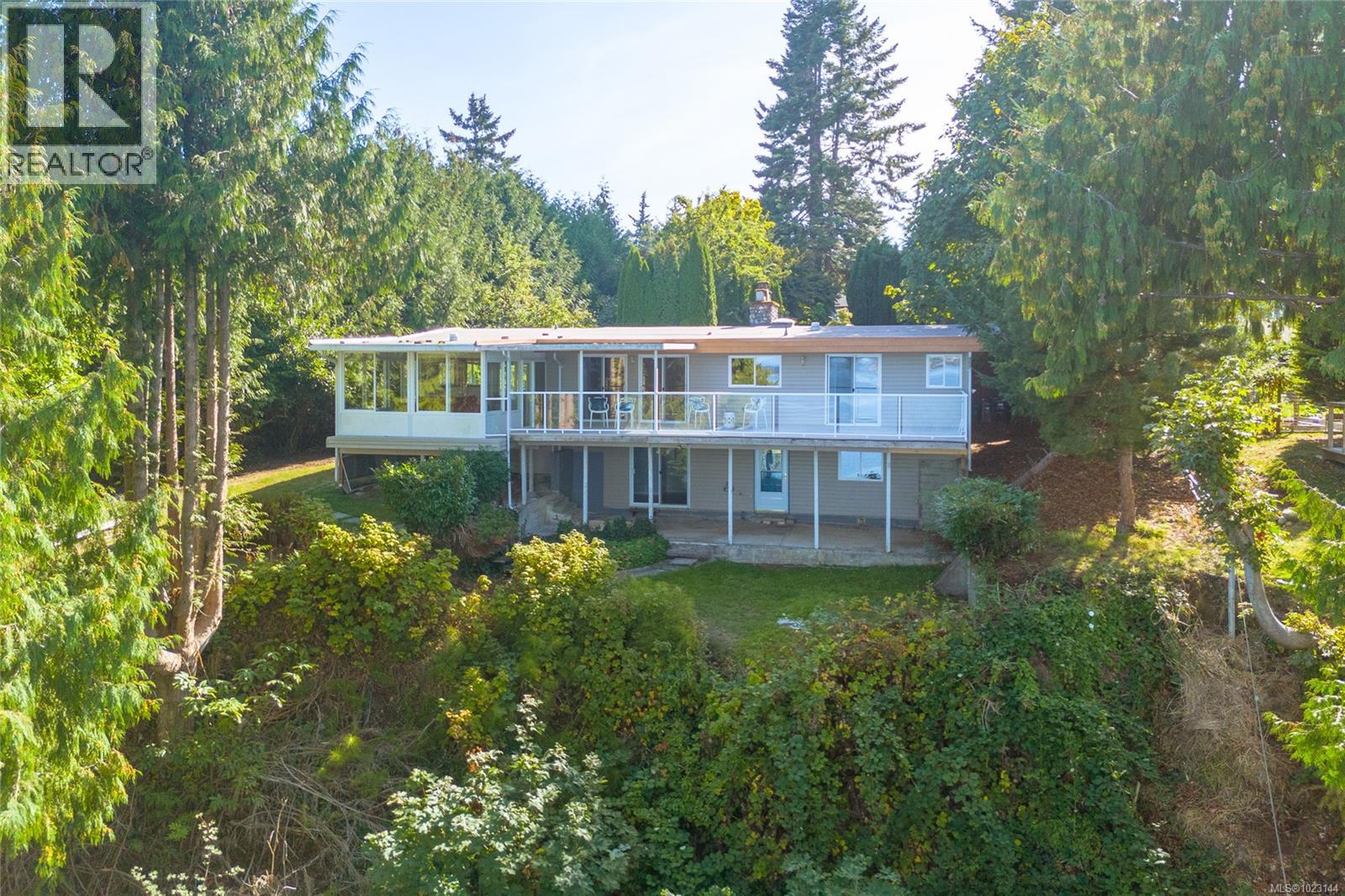 A true Vancouver Island OCEAN BLUFF experience awaits at this 3 bed/3 bath, two-level home perched on a private .58-acre lot. Vaulted ceilings, a cozy river rock fireplace, and expansive decks showcase sweeping views over the Strait of Georgia to the Coastal Mountains, with Denman, Hornby, and Chrome Lighthouse framed in every sunrise and sunset. Watch eagles soar and marine life in the tidal pools below from the comfort of your living room. The walkout basement features full-height ceilings, an ocean view, and a second kitchen—ideal for guests, extended family, or an independent suite. Just three minutes to Bowser’s amenities and 20 minutes to Courtenay or Qualicum Beach, this home blends peaceful living with convenience. Vacant and awaiting new owners, it offers the perfect canvas to renew and personalize your waterfront retreat while embracing the natural beauty and wildlife of the Salish Sea coastline. Room for your RV/Boat with the marina 5 minutes away, and close to golf course and FANTASTIC walking/biking trails. (id:44393)