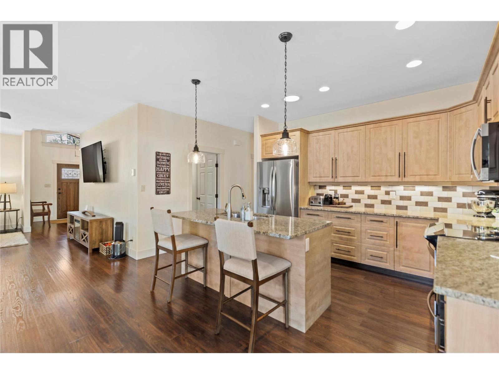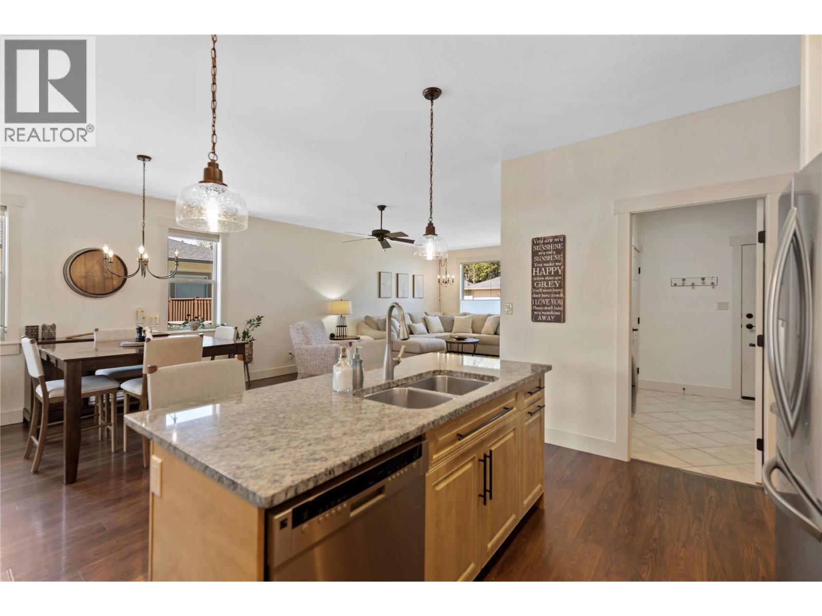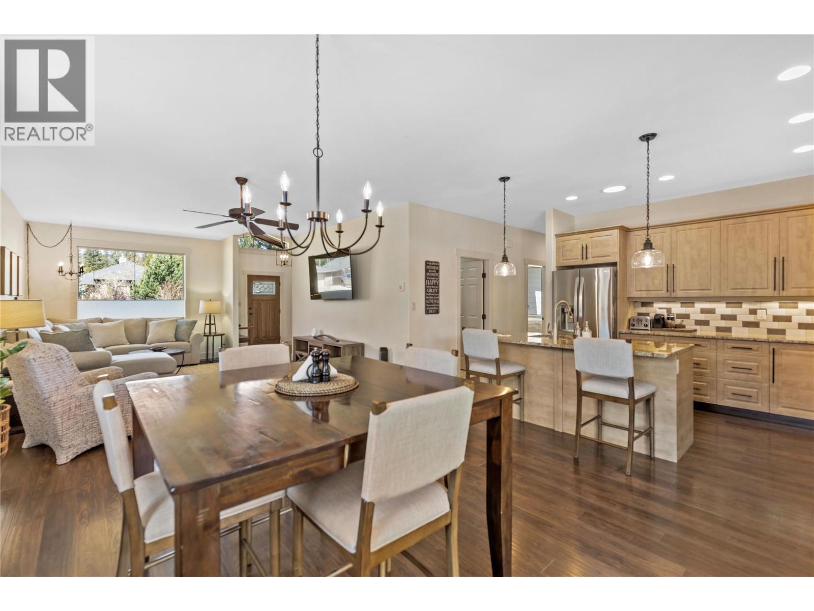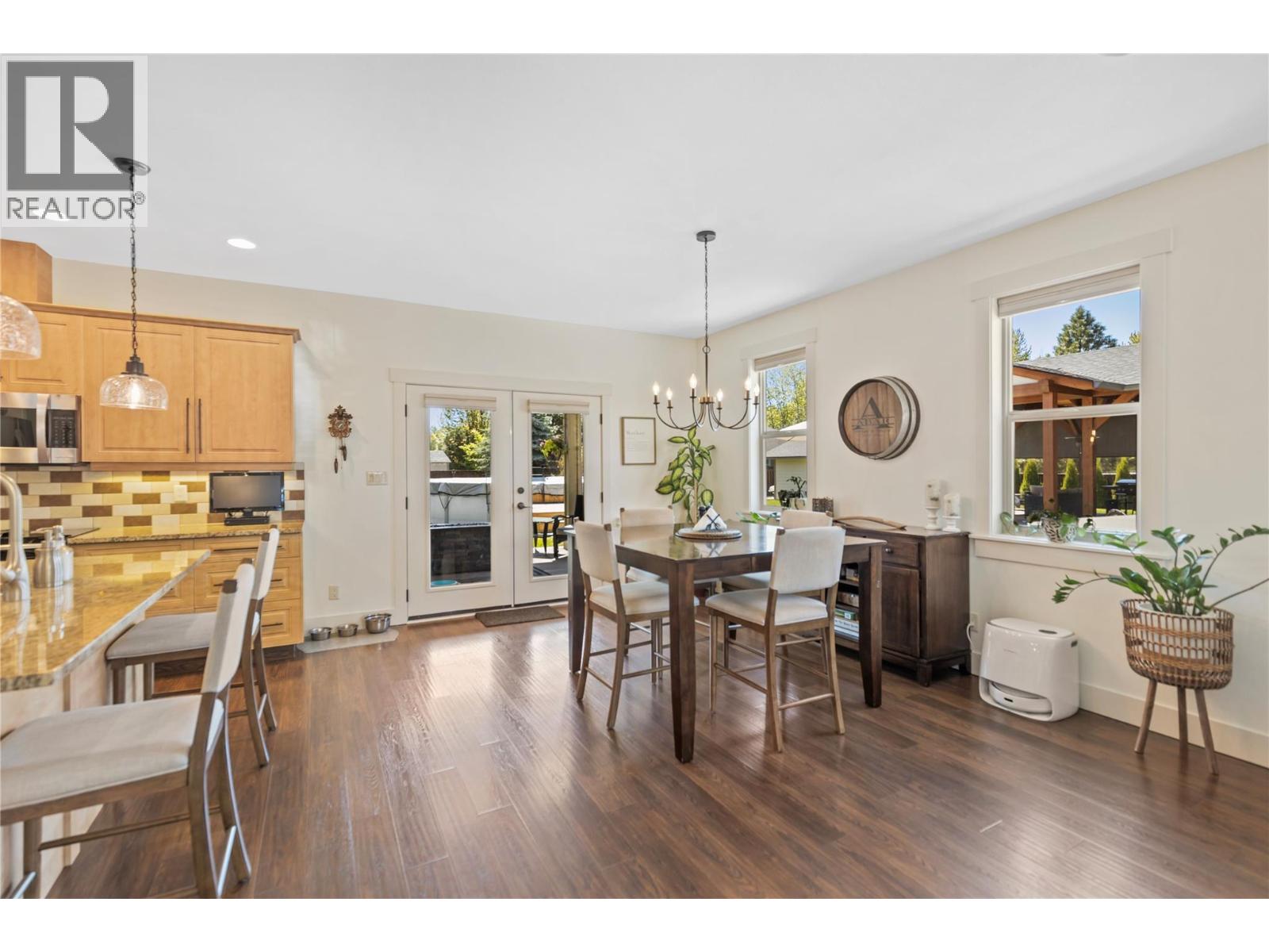 Executive-Style Living with Refined Comfort Situated on a double lot, this beautifully appointed 3-bed, 2-bath rancher offers 2,000+ sq. ft. of open-concept elegance—ideal for quiet evenings or lively gatherings. The chef-inspired kitchen features a central island, granite counters & premium appliances, flowing into a spacious dining area perfect for hosting. French doors lead to a 12' x 14' covered patio, extending your living space outdoors. Unwind in your private oasis with a brick patio & 25' round above-ground pool. The covered Post & Beam outdoor kitchen/bar with propane fireplace sets the tone for year-round fireside entertaining. The spacious main bedroom includes a W-I closet, 4-pc ensuite & private deck access via French doors. The attached garage doubles as a games room, easily convertible back. A separate 29' x 27' heated shop/garage with epoxy floors, 2-pc bath & ample storage is perfect for hobbies or a home-based business. Fully fenced backyard with IG irrigation & RV parking (2 x 30-amp plugs) offers low-maintenance living. Just a short stroll to town amenities & minutes from golf & outdoor recreation—this home blends luxury with lifestyle. (id:44393)