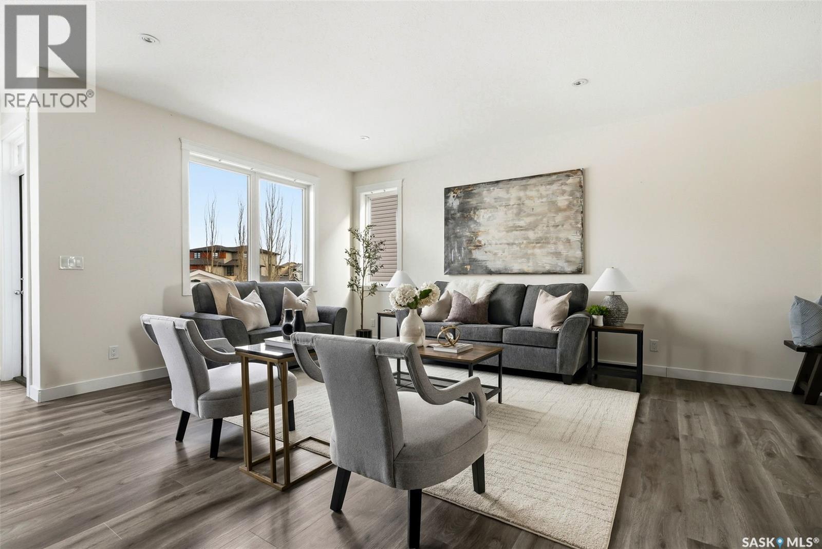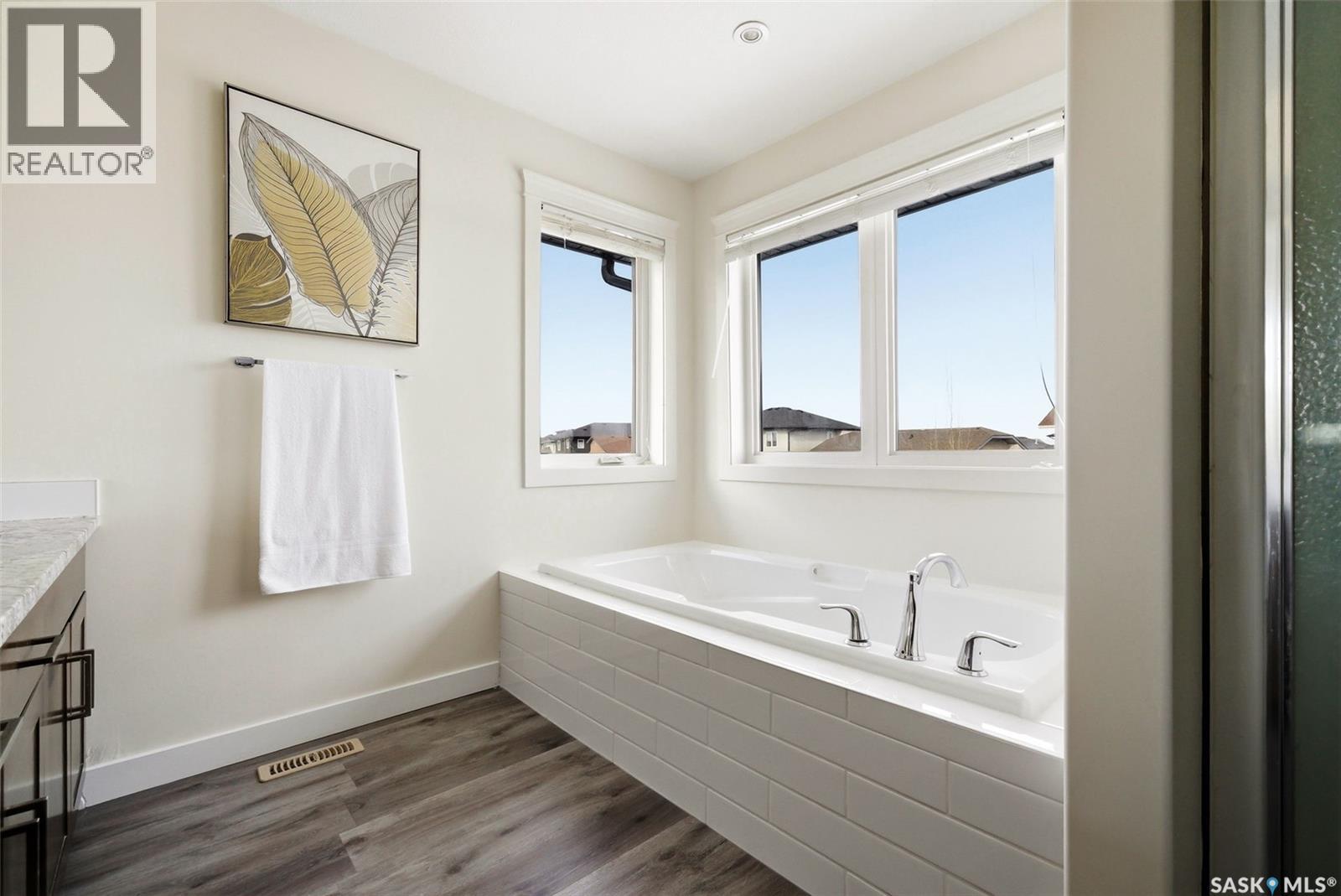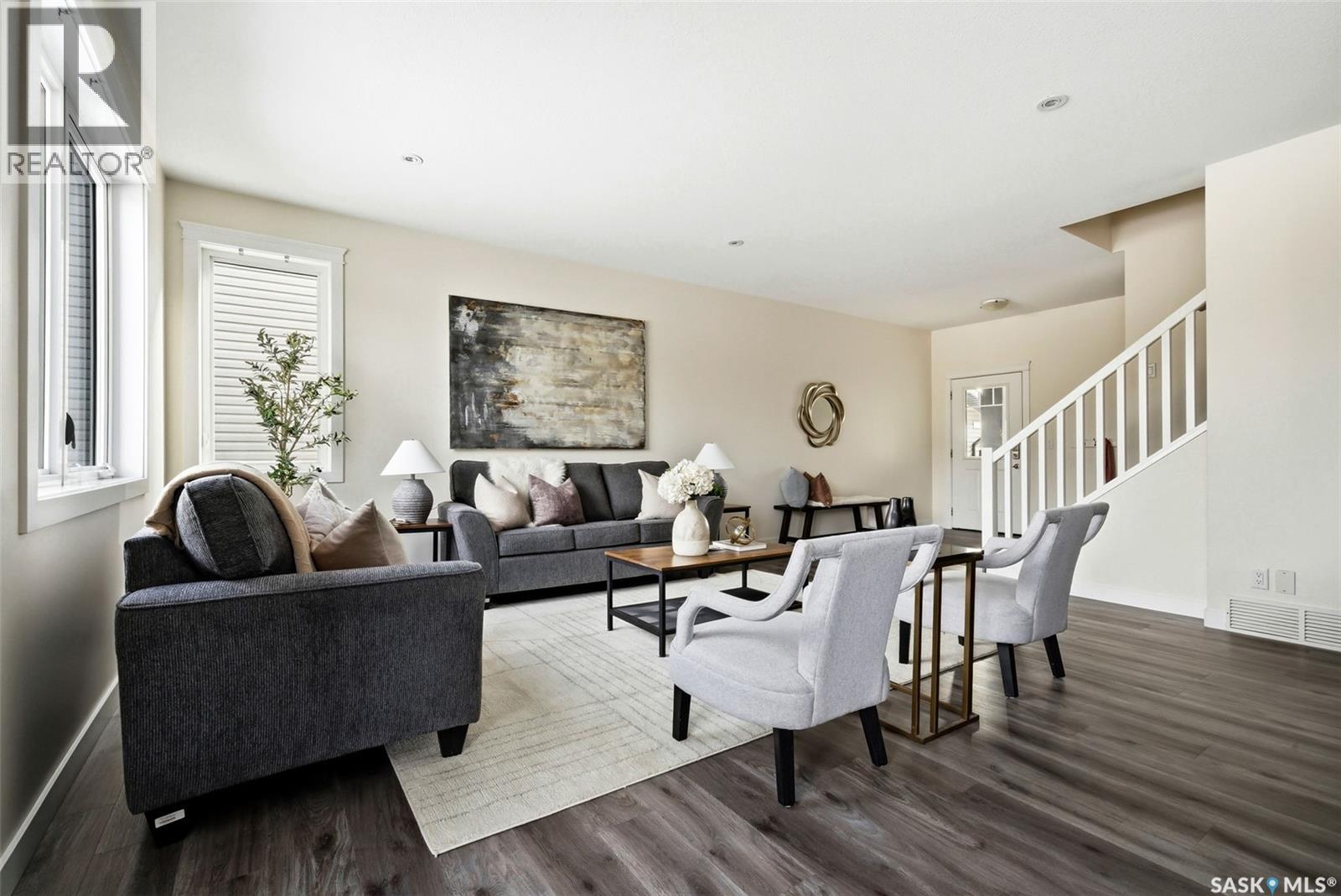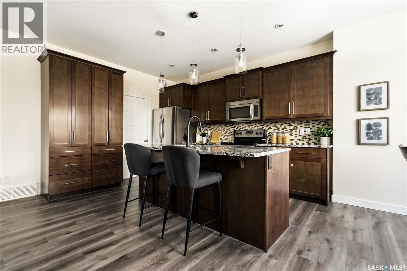 Welcome to 4830 Green Apple Drive, located in the heart of the desirable Greens on Gardiner neighbourhood. This custom-built two-storey offers over 1,730 sq. ft. of well-designed living space, featuring 4 bedrooms and 4 bathrooms, plus a fully developed basement with separate side entrance. Open-concept main floor features 9-foot ceilings and newer vinyl plank flooring throughout, creating a bright and modern living space. A convenient mudroom area leads to the double attached garage, adding functionality for everyday living. The spacious living room is filled with natural light thanks to large windows overlooking the backyard. The kitchen is beautifully finished with espresso-toned maple cabinetry, a built-in pantry, granite countertops, tile backsplash, soft-close drawers, and a large island perfect for meal prep or casual dining. The adjoining dining area provides plenty of space for family gatherings and features a garden door leading to the back deck with gas BBQ hookup. The deck overlooks the fully fenced backyard with lawn, offering great space for outdoor enjoyment. A two-piece powder room is conveniently located near the front closet and garage entrance. Upstairs, the second level offers three good-sized bedrooms, including a spacious primary suite featuring a large walk-in closet and a five-piece ensuite with jetted tub, double vanity with granite countertops, and separate shower. The second level also includes a full four-piece main bathroom and convenient second-floor laundry. New carpet throughout the second level adds a fresh feel. Fully developed basement, with separate side entrance, features a large recreation room with wet bar area, an additional spacious bedroom, and a four-piece bathroom with granite vanity, offering great extra living space. This home is ideally located within walking distance to École Wascana Plains School and École St. Elizabeth, as well as parks, walking paths, and all east-end amenities. As per the Seller’s direction, all offers will be presented on 03/19/2026 7:00PM. (id:44393)