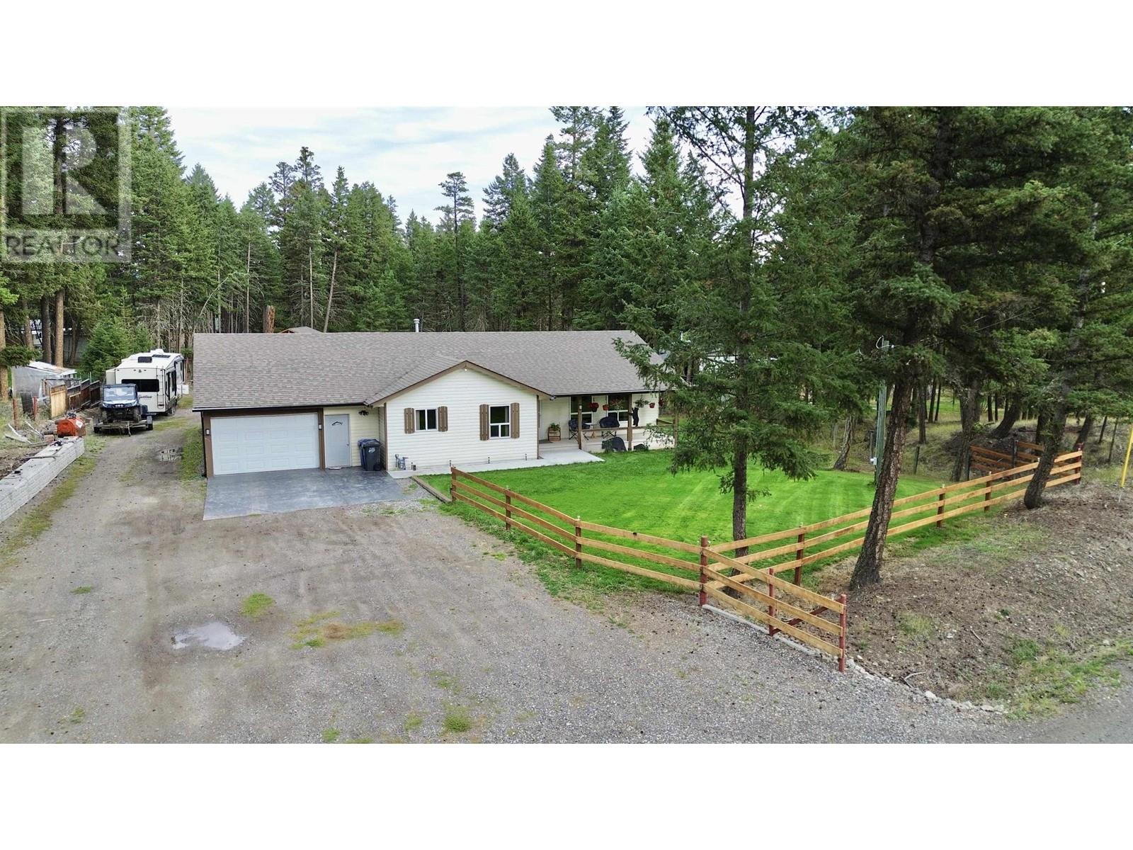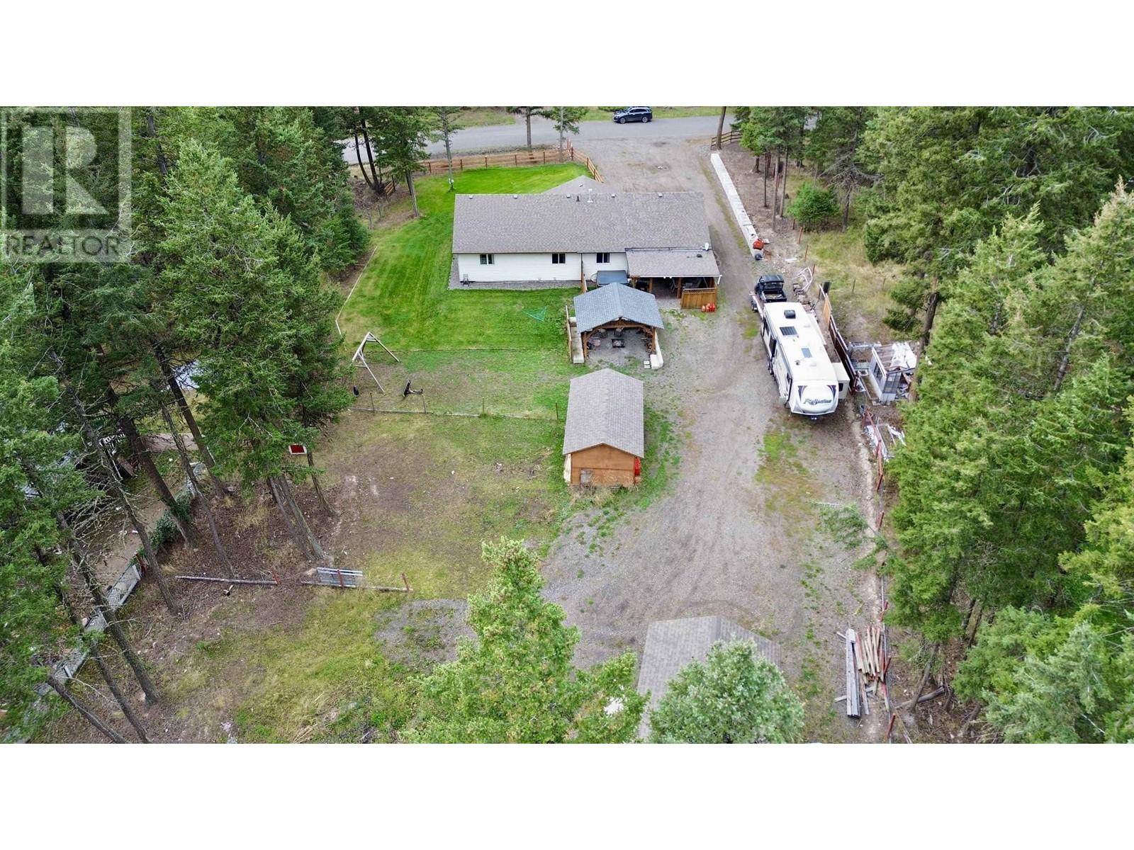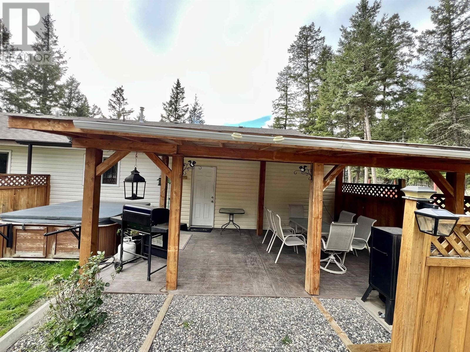 Charming 1,432 sq ft rancher with 3 bedrooms and 2 bathrooms on a level 0.75 acre lot in 108 Mile Ranch. The primary bedroom features an ensuite, and the kitchen offers a built-in oven and cook-top, adjacent to a cozy dining room. The spacious living room includes a natural gas fireplace. With plenty of storage, including a great crawl space and attached garage, this home has it all. Outside, enjoy the 15' high Covered Boat/RV Bay, covered patio, hot tub, and storage shed. Perfect for peaceful living with room to grow! (id:44393)