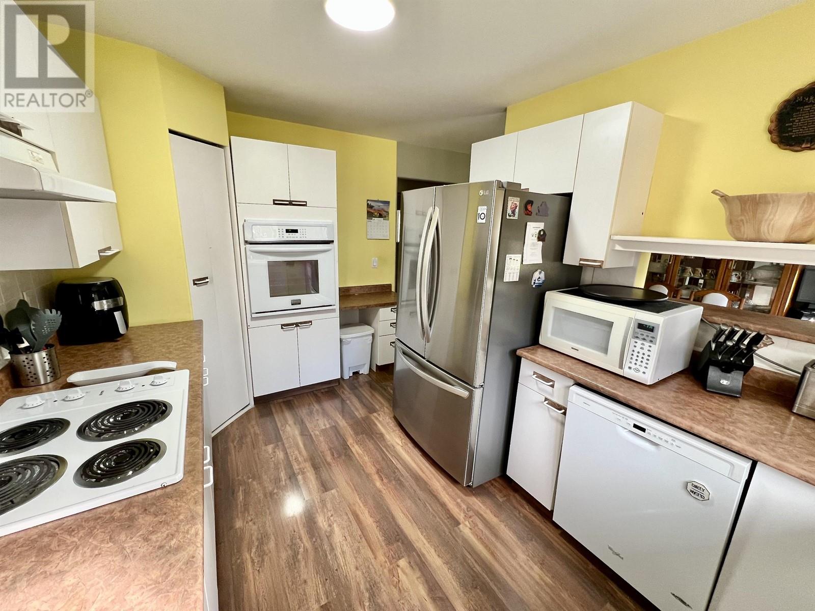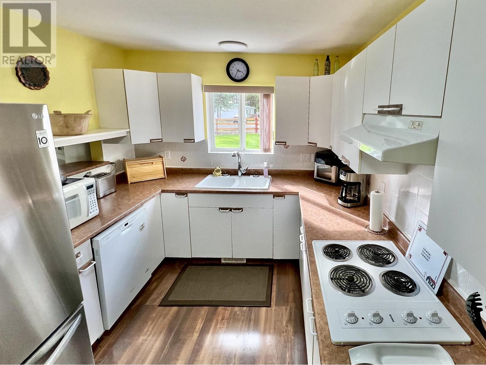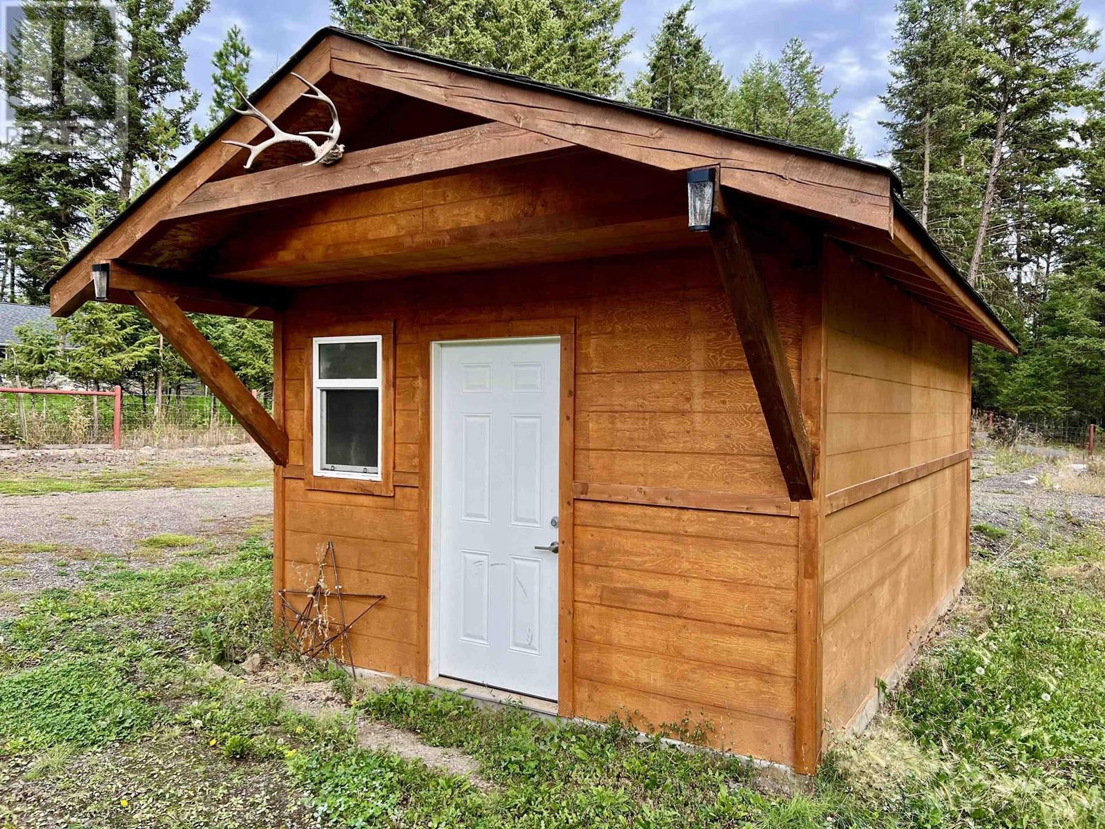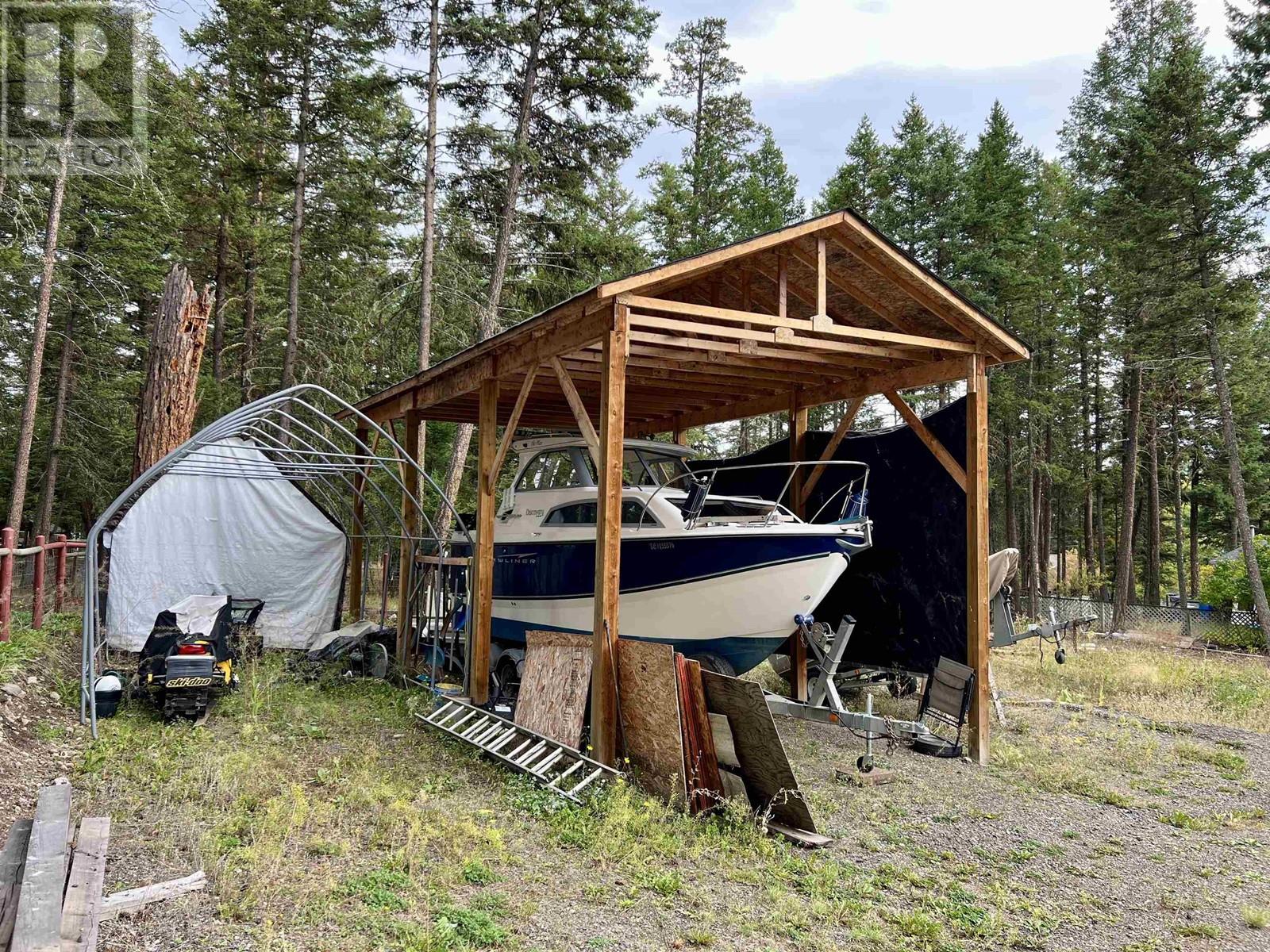 Charming 1,432 sq ft rancher with 3 bedrooms and 2 bathrooms on a level 0.75 acre lot in 108 Mile Ranch. The primary bedroom features an ensuite, and the kitchen offers a built-in oven and cook-top, adjacent to a cozy dining room. The spacious living room includes a natural gas fireplace. With plenty of storage, including a great crawl space and attached garage, this home has it all. Outside, enjoy the 15' high Covered Boat/RV Bay, covered patio, hot tub, and storage shed. Perfect for peaceful living with room to grow! (id:44393)