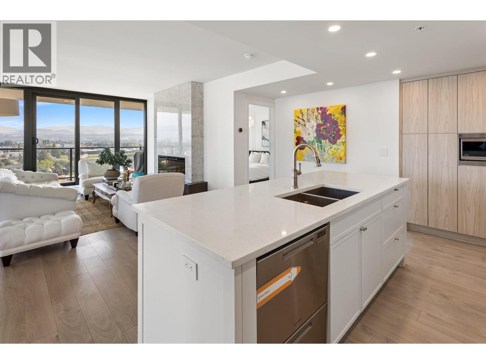 $702.98 MonthlyBeautiful luxury condo at Sopa Square in the vibrant South Pandosy community with $150+K in upgrades and just steps to Okanagan Lake. Bright and open 3 bedroom floor plan with a flex space that could be used as an office or a den. With floor to ceiling windows in the main living space, this home is flooded with an abundance of natural light. Enjoy the utmost in outdoor living on the covered wrap-around patio that overlooks the city and offers beautiful views of the lake. Attention to detail is evident at every turn. This home has been well finished throughout and offers stylish updates including designer lighting, feature walls, and custom wainscoting in the primary bedroom. The gourmet kitchen will delight any culinary enthusiast with a stainless-steel appliance package including a Wolf gas range. Entertain with ease at the large centre island. An electric fireplace in the living room creates a cozy ambiance. The primary bedroom boasts a 4-piece en suite and walk through closet. Two additional bedrooms share an adjacent bath. Residents of SOPA will enjoy the resort style amenities including a fitness centre, outdoor pool & hot tub, and sun-soaked terrace. A new waterfront city park is planned to open this summer. Stroll the Abbott St. Corridor or the Pandosy Village amidst boutique shopping, fine restaurants & trendy cafes–truly a vibrant community within a city. (id:44393)