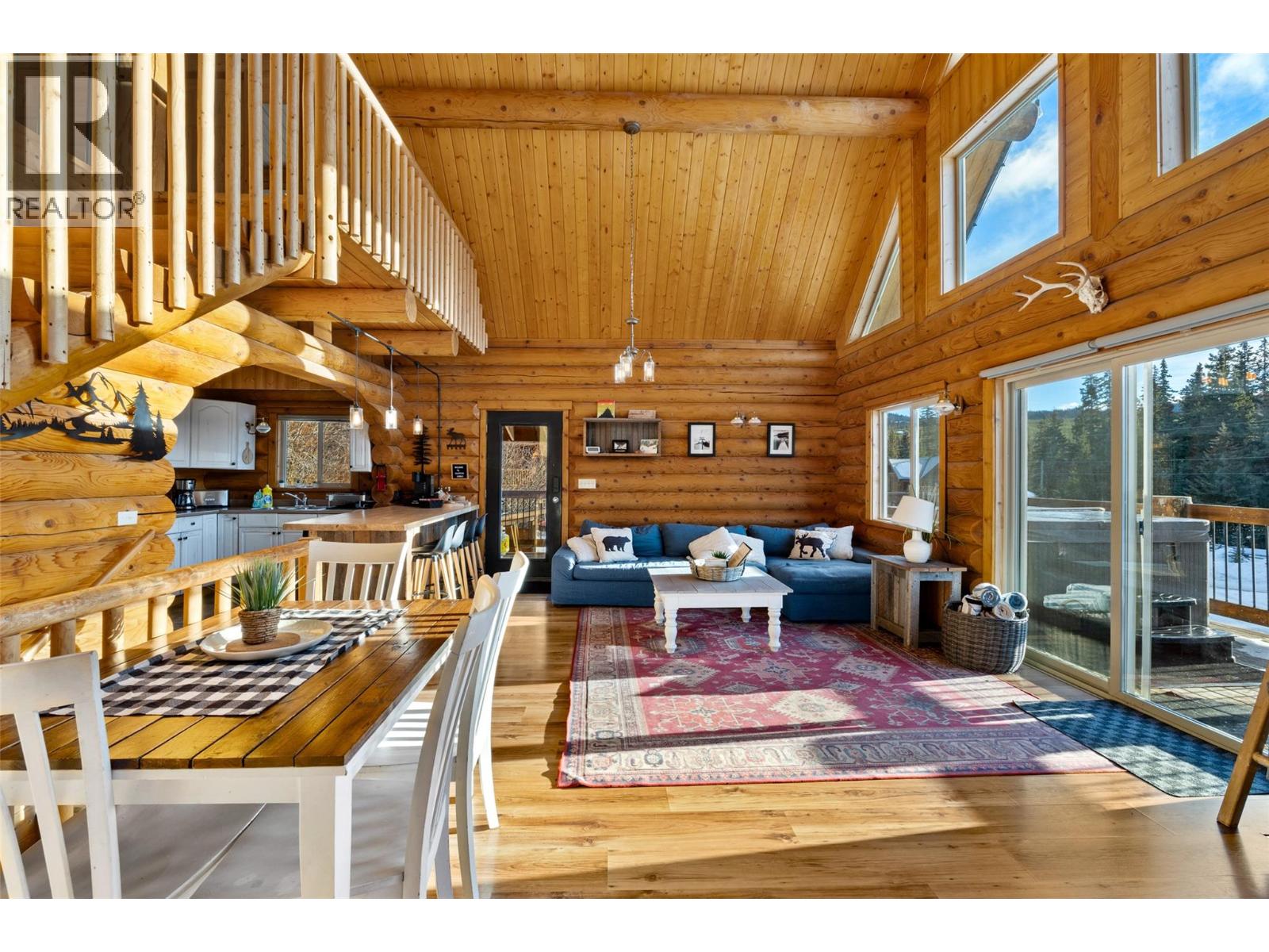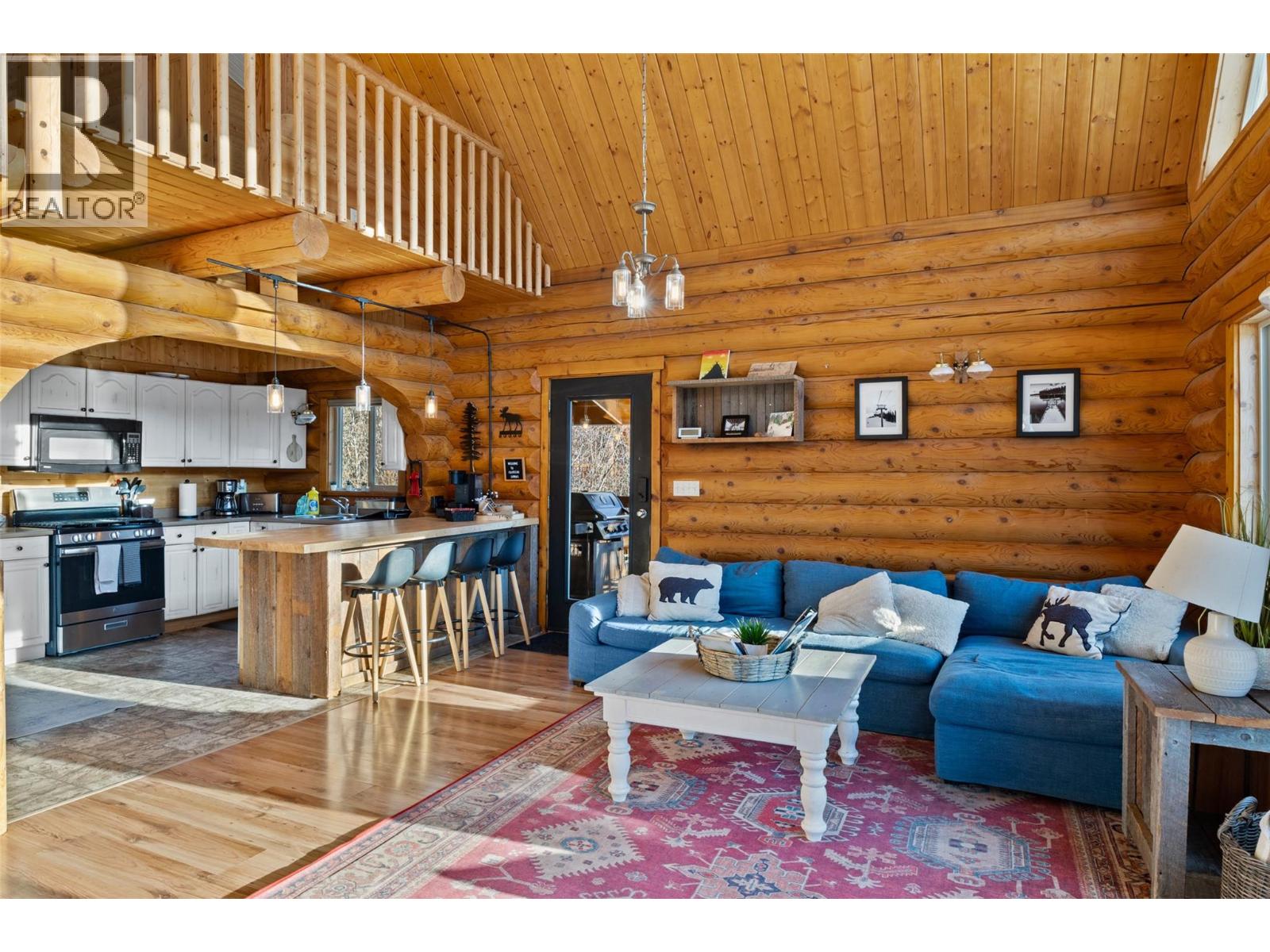 $137.95 MonthlyTucked into the heart of Mile High Resort, this handcrafted log home sits only steps from Face Lake offering shared access to the boat launch and year-round recreation. Thoughtfully laid out, the home offers over 2,000 sq ft of warm, inviting living space that balances comfort with function. Vaulted ceilings and an open main floor create an ideal setting for gatherings, while the wraparound deck—complete with a hot tub—invites you to unwind and enjoy the quiet forest surroundings. 2 bdr+den/3bath home, including an expansive primary retreat featuring a private balcony and ensuite. The lower level has been fully renovated and includes a separate entrance, large rec/games room, den, and bathroom, making it well suited for guests or future in-law suite potential. Practical upgrades include on-demand hot water and a WETT-certified Blaze King wood stove, ensuring comfort through all seasons. Set on a secluded 0.4-acre lot, the property offers a peaceful, private setting while still being just 20 minutes from Kamloops. A detached storage/workshop provides ample room for recreational gear and tools. The home has also proven itself as a solid short-term rental ($40,000 annually over the past 2 years). Residents enjoy shared lake access, snow removal, water, and sewer (bare land strata $137.95/mnth). Whether you’re searching for a recreational getaway or a full-time mountain home, this property delivers a rare blend of privacy, income potential, and four-season enjoyment. (id:44393)