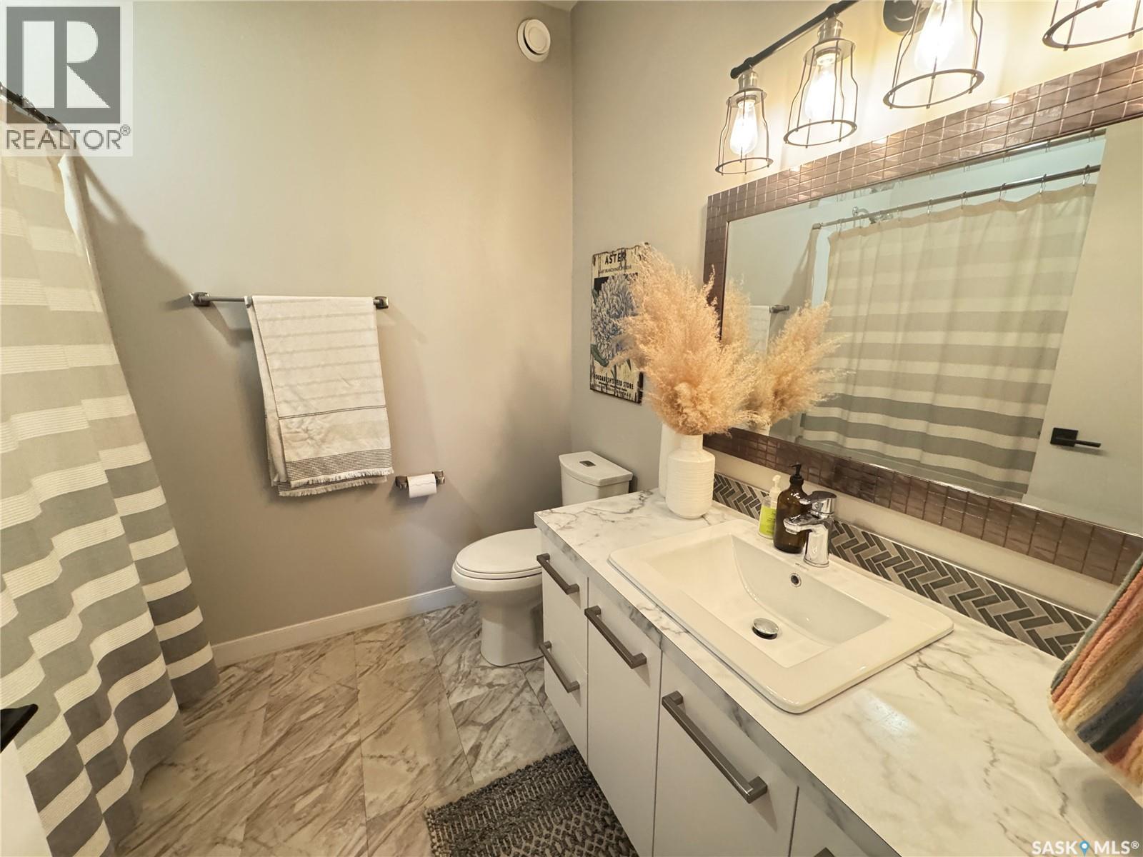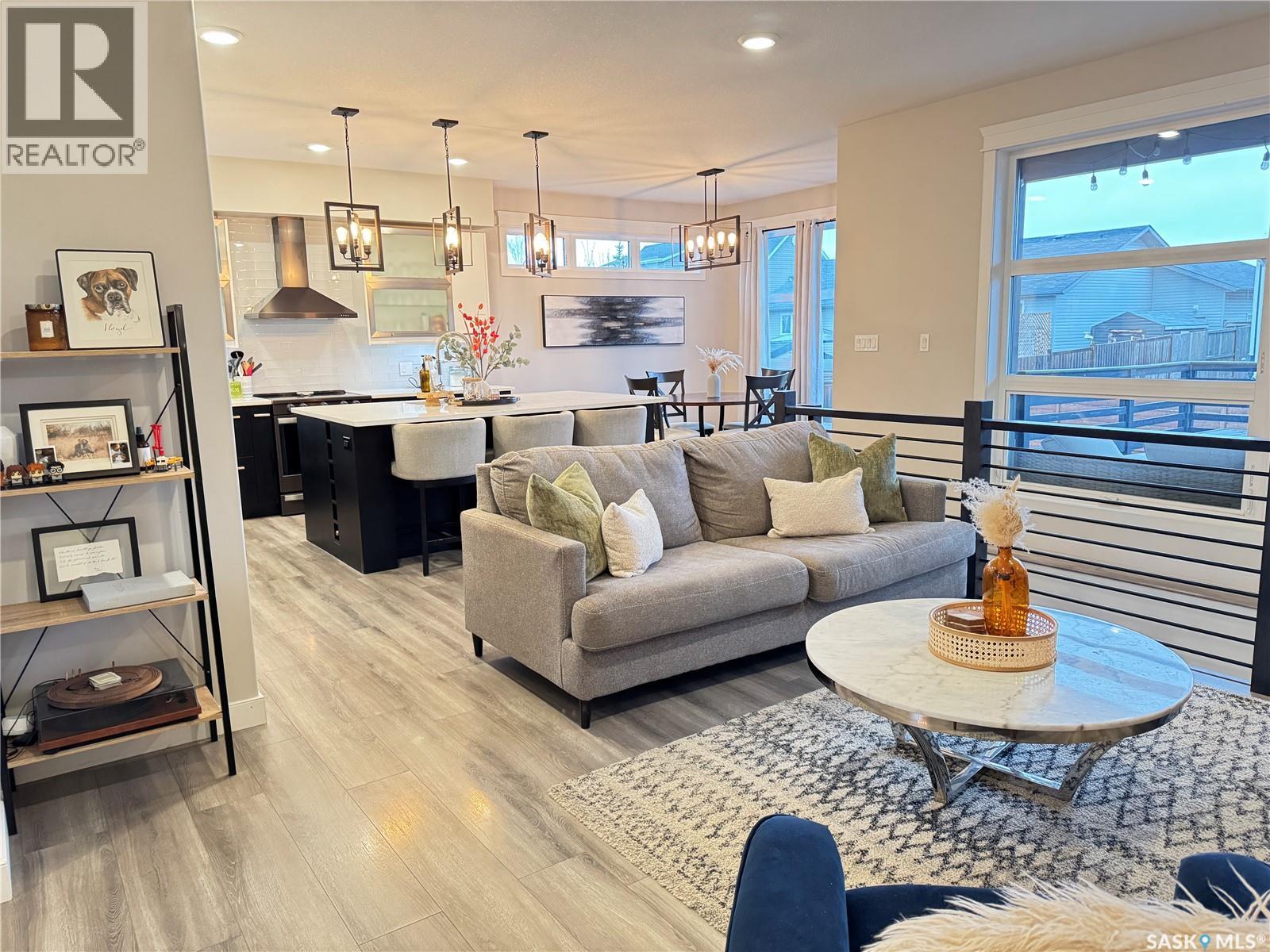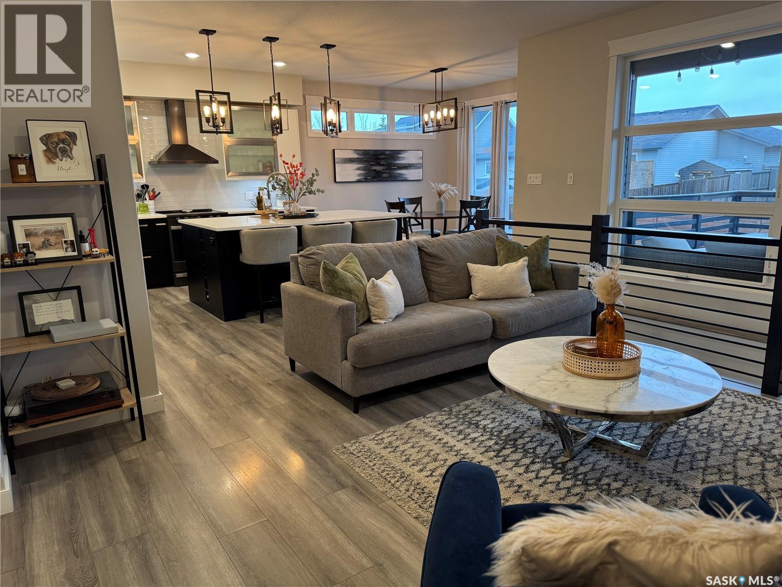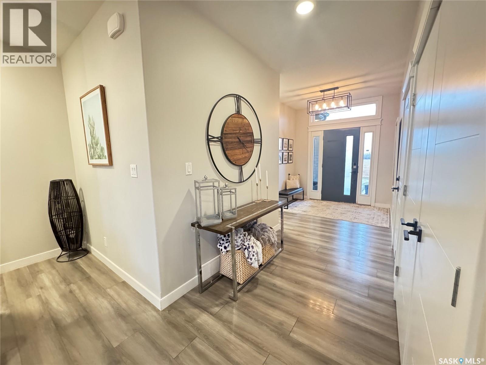 Welcome to this stunning modern-style 2 + 2 bedroom raised bungalow, ideally situated in Humboldt’s sought-after North Division—just a short walk from the hospital and Humboldt’s beautiful 18-hole golf course. Step inside to a bright, open-concept main floor featuring 9-ft ceilings and stylish laminate flooring throughout. The front bedroom offers flexible space—perfect as a home office or guest room. The spacious entertaining area includes a beautifully designed kitchen with a large island, wall pantry, and dining space that overlooks the backyard with access to a covered deck—ideal for relaxing or entertaining. The main floor also features convenient laundry and a welcoming layout designed for comfort and functionality. The primary bedroom is a true retreat, complete with a beautiful 4-piece ensuite and direct access to a walk-in closet. The fully finished basement mirrors the home’s modern appeal with 9-ft ceilings, a cozy and spacious family room, and a well-equipped wet bar (or optional second kitchen for revenue potential). Two additional bedrooms, a 4-piece bath, utility room, and storage area complete the lower level, with direct access to the heated garage. Curb appeal shines with an oversized heated garage (30’ x 24’) featuring two 8’ x 10’ overhead doors, plus an additional 12’ x 10’ section with an 8’ x 6’ rear door opening to the backyard and a direct pathway to RV parking. The fully fenced yard is beautifully manicured with lush greenspace, flower gardens, and garden boxes. Additional features include central air, central vac, and garburator.?Buyer to verify all measurements. (id:44393)