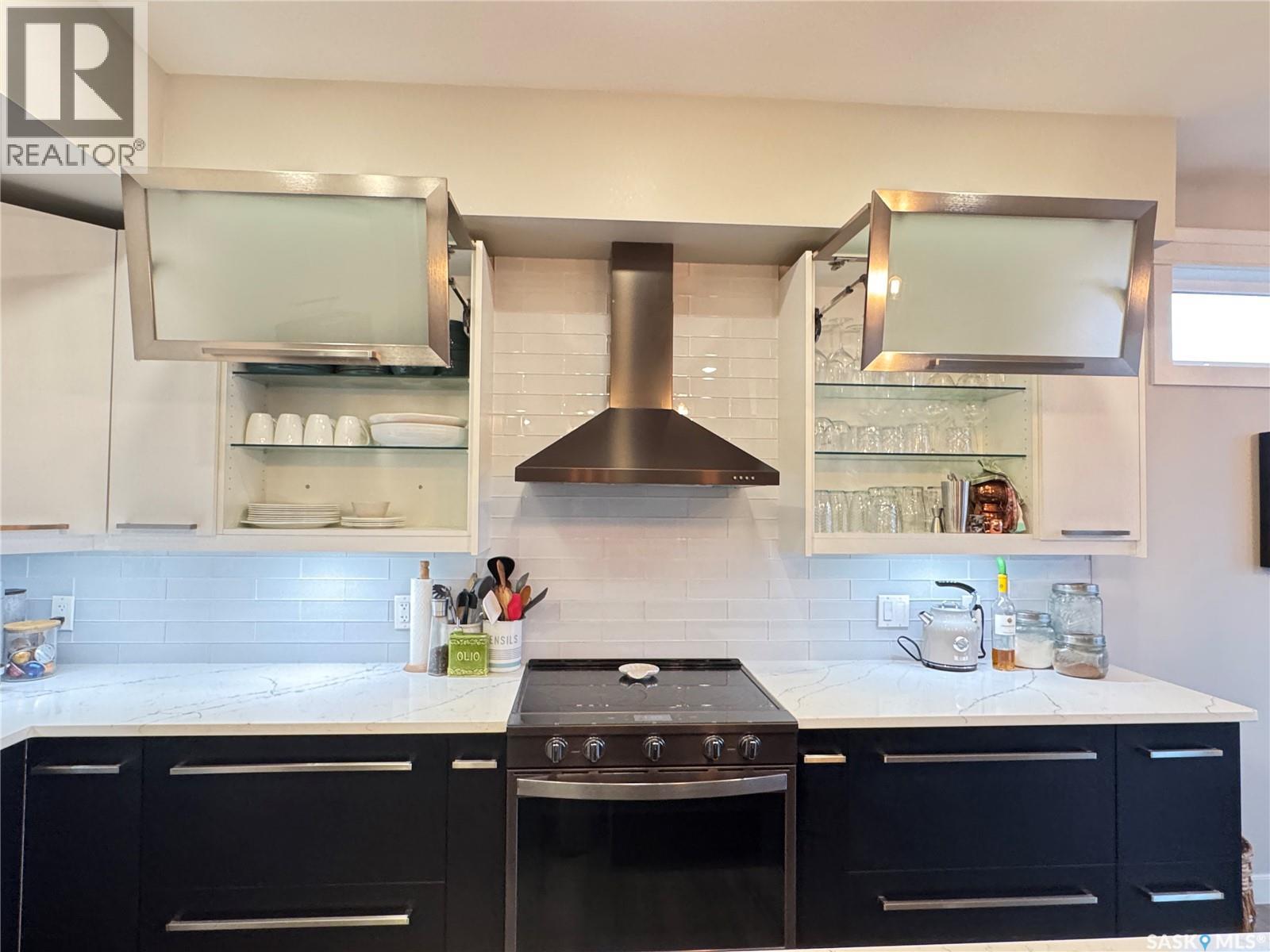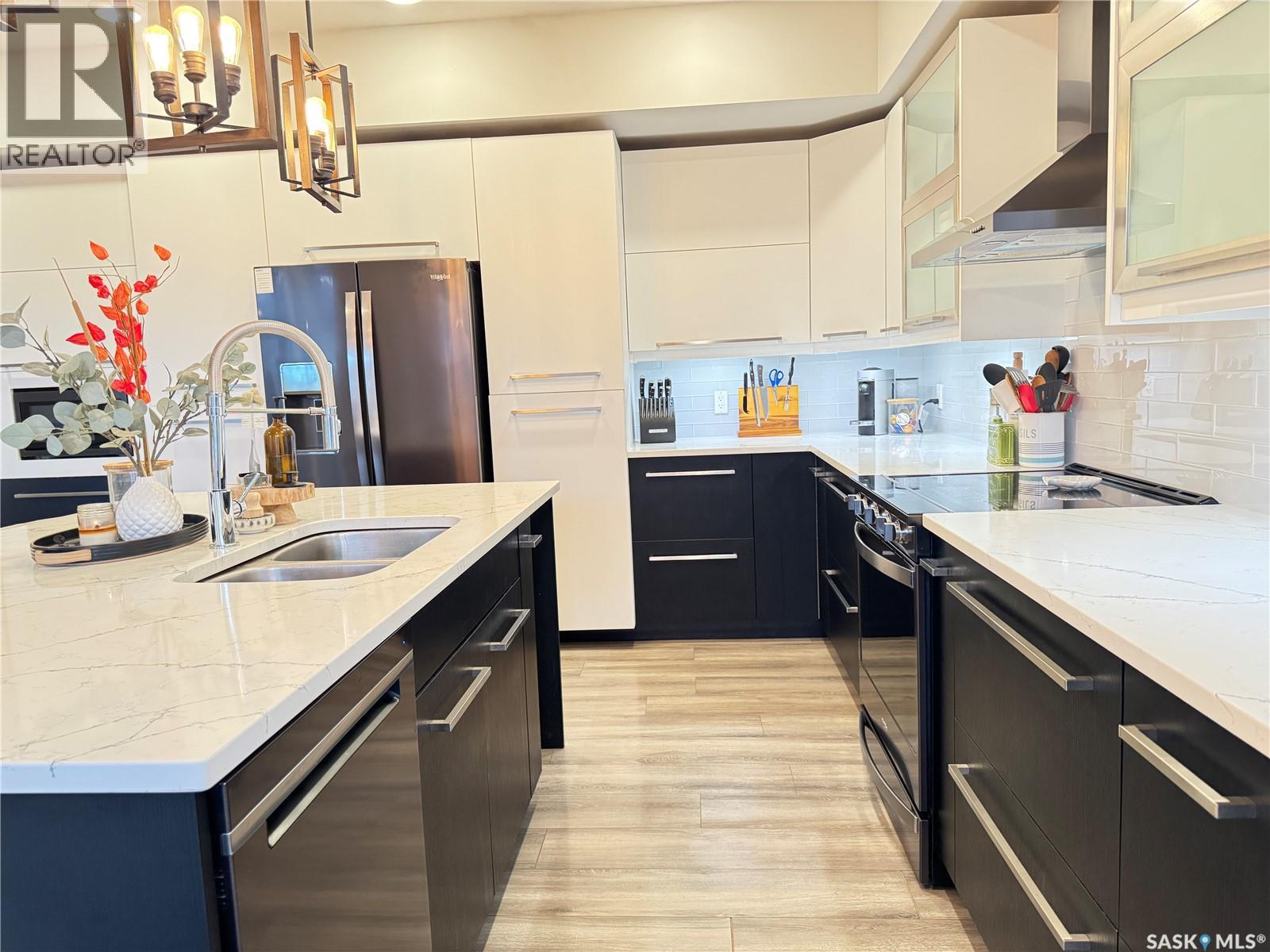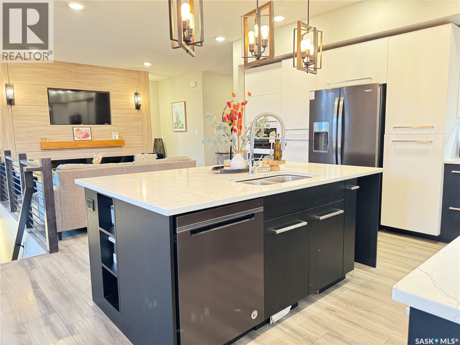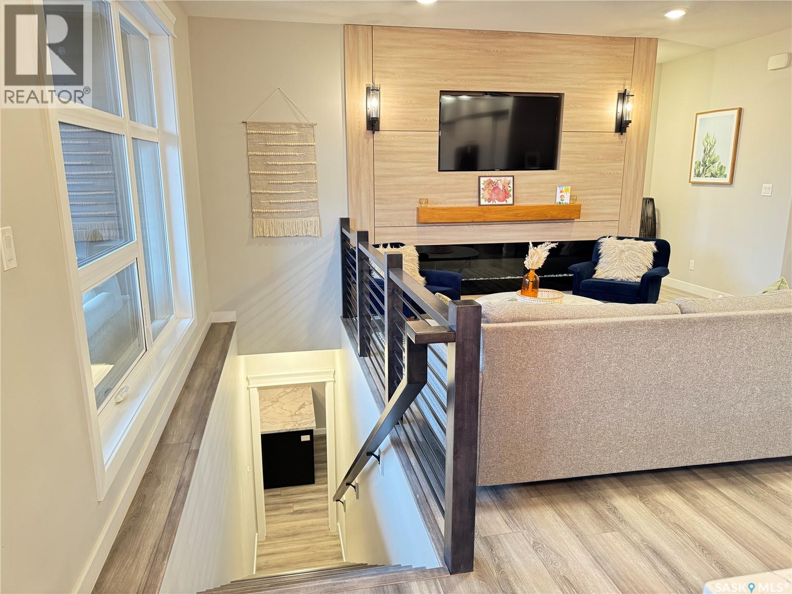 Welcome to this stunning modern-style 2 + 2 bedroom raised bungalow, ideally situated in Humboldt’s sought-after North Division—just a short walk from the hospital and Humboldt’s beautiful 18-hole golf course. Step inside to a bright, open-concept main floor featuring 9-ft ceilings and stylish laminate flooring throughout. The front bedroom offers flexible space—perfect as a home office or guest room. The spacious entertaining area includes a beautifully designed kitchen with a large island, wall pantry, and dining space that overlooks the backyard with access to a covered deck—ideal for relaxing or entertaining. The main floor also features convenient laundry and a welcoming layout designed for comfort and functionality. The primary bedroom is a true retreat, complete with a beautiful 4-piece ensuite and direct access to a walk-in closet. The fully finished basement mirrors the home’s modern appeal with 9-ft ceilings, a cozy and spacious family room, and a well-equipped wet bar (or optional second kitchen for revenue potential). Two additional bedrooms, a 4-piece bath, utility room, and storage area complete the lower level, with direct access to the heated garage. Curb appeal shines with an oversized heated garage (30’ x 24’) featuring two 8’ x 10’ overhead doors, plus an additional 12’ x 10’ section with an 8’ x 6’ rear door opening to the backyard and a direct pathway to RV parking. The fully fenced yard is beautifully manicured with lush greenspace, flower gardens, and garden boxes. Additional features include central air, central vac, and garburator.?Buyer to verify all measurements. (id:44393)