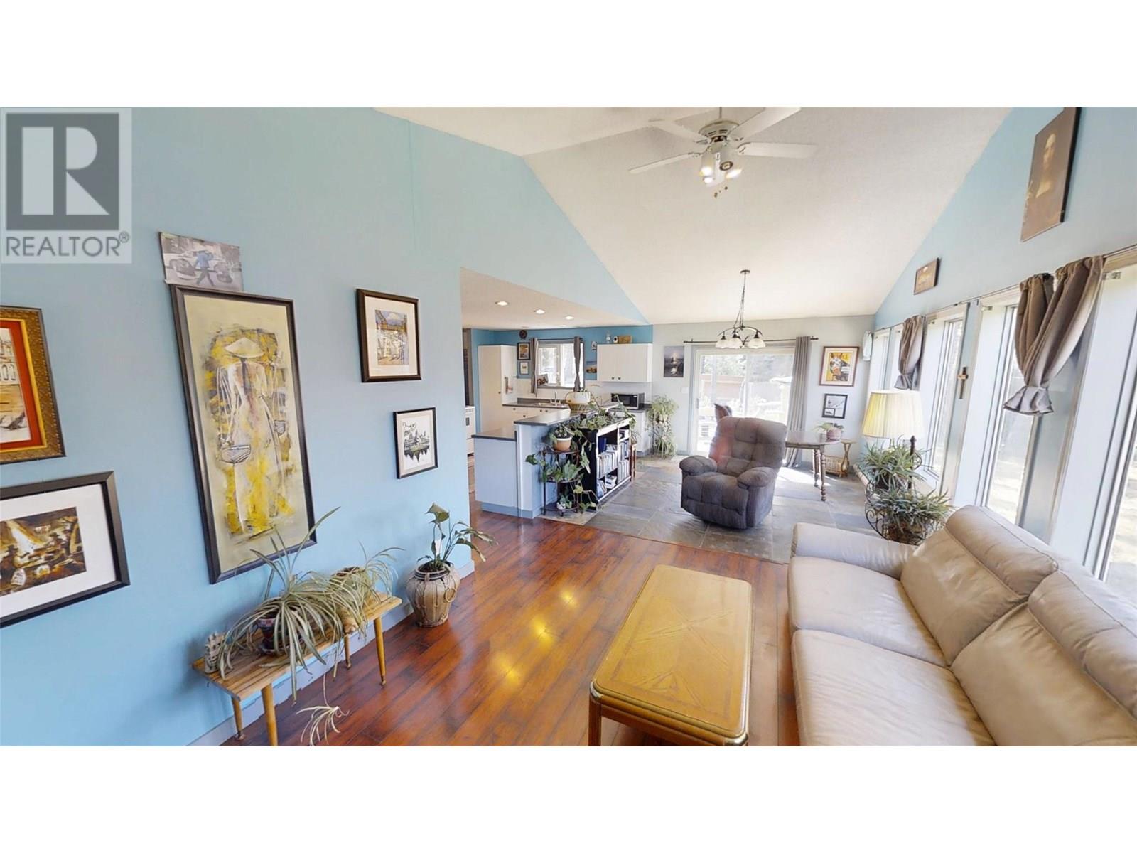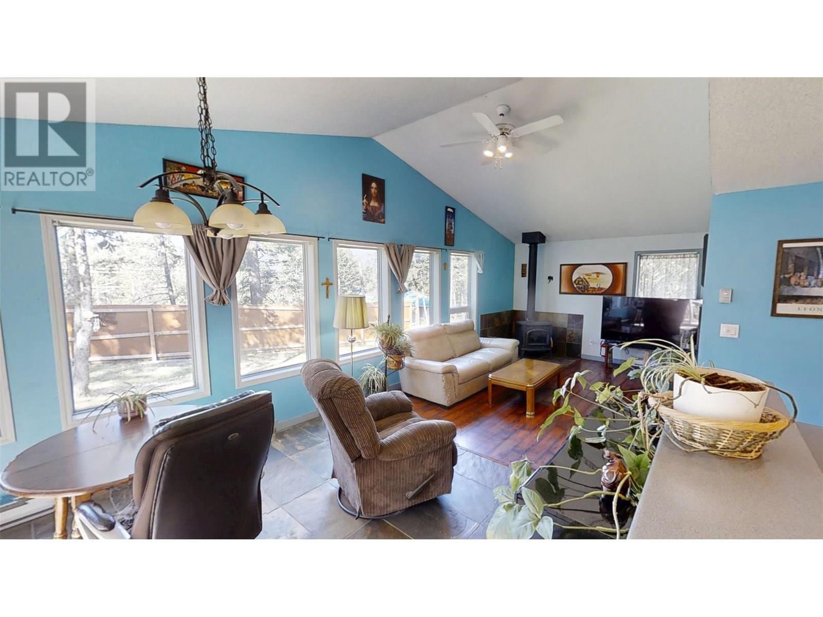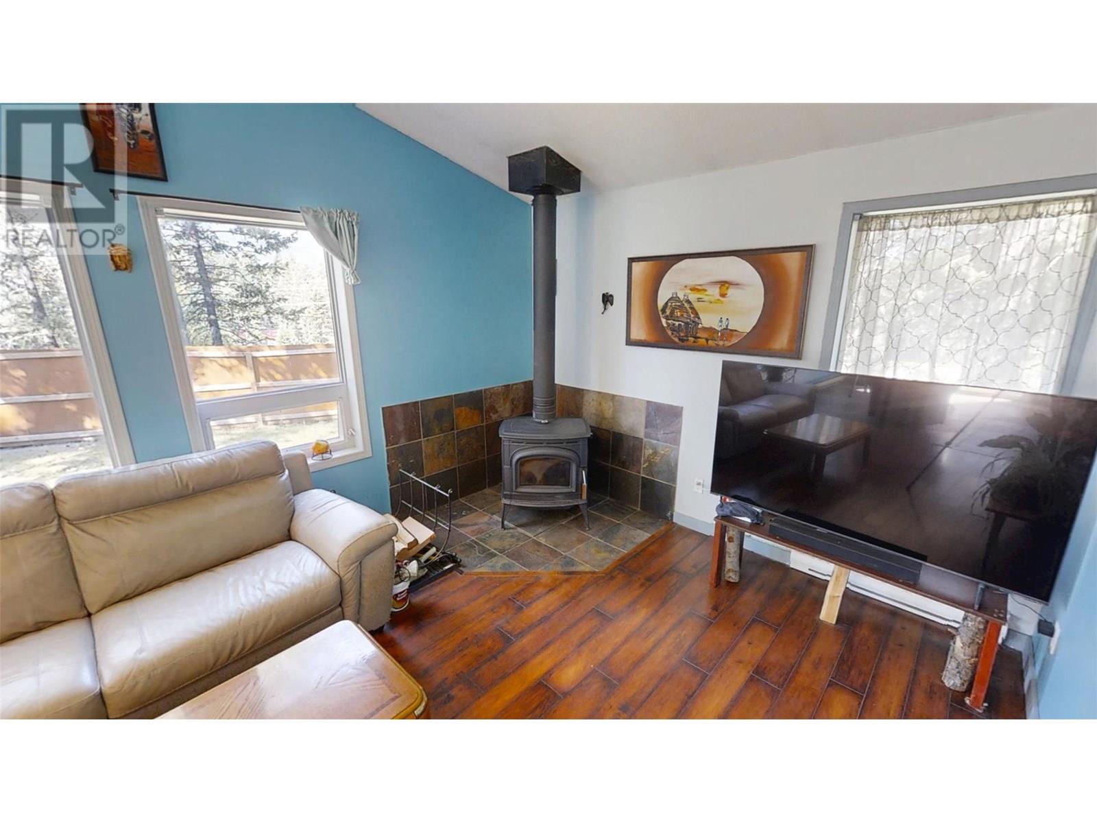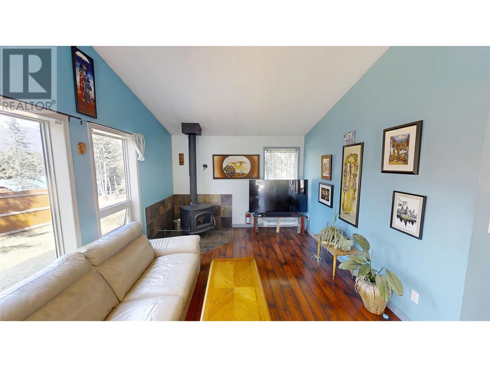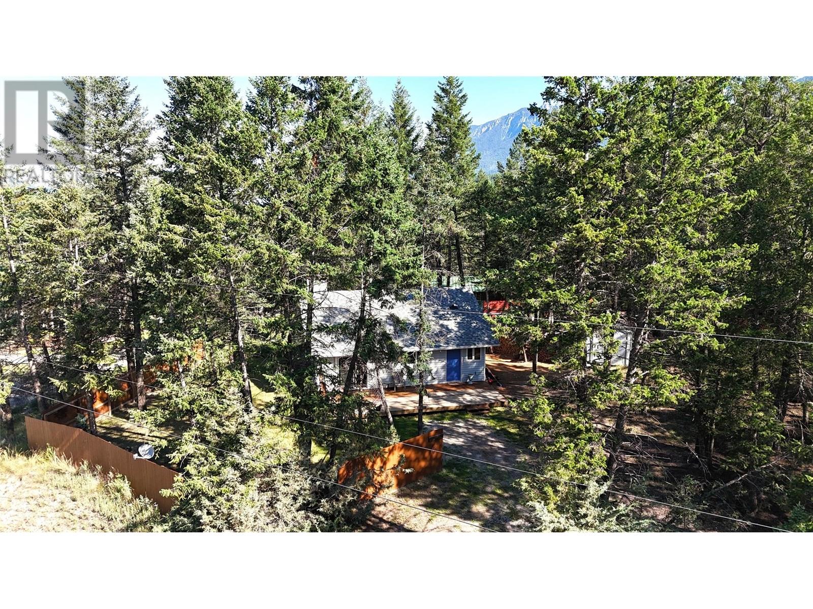 Spur Valley - A great cottage with 2 bedrooms & 1 bathroom ( 1994 - approx. age), suitable for full time living, or as recreational cabin. Spur Valley is located approximately a 20 min drive north of Radium Hot Springs, getting you out of the hustle & bustle of the central part of the Valley, and has you on a low maintenance, corner lot in a wooded setting with nice mountain views. This well maintained cottage has a newer high efficiency wood stove, vaulted great room ceiling and updated flooring. The Spur Valley golf course and Cantina restaurant are directly across the highway and are a favorite destination of locals in the know. If you are looking for great simplified living that does not break the bank you owe to yourself to check out this great cottage. Average - BC Hydro utility cost - $42 monthly - Full time resident / Septic pumped - July 2025 / (id:44393)