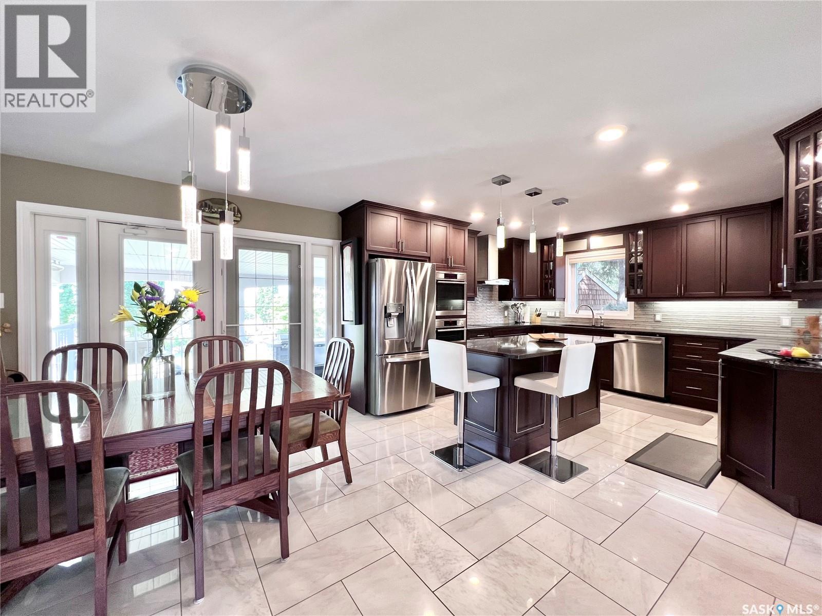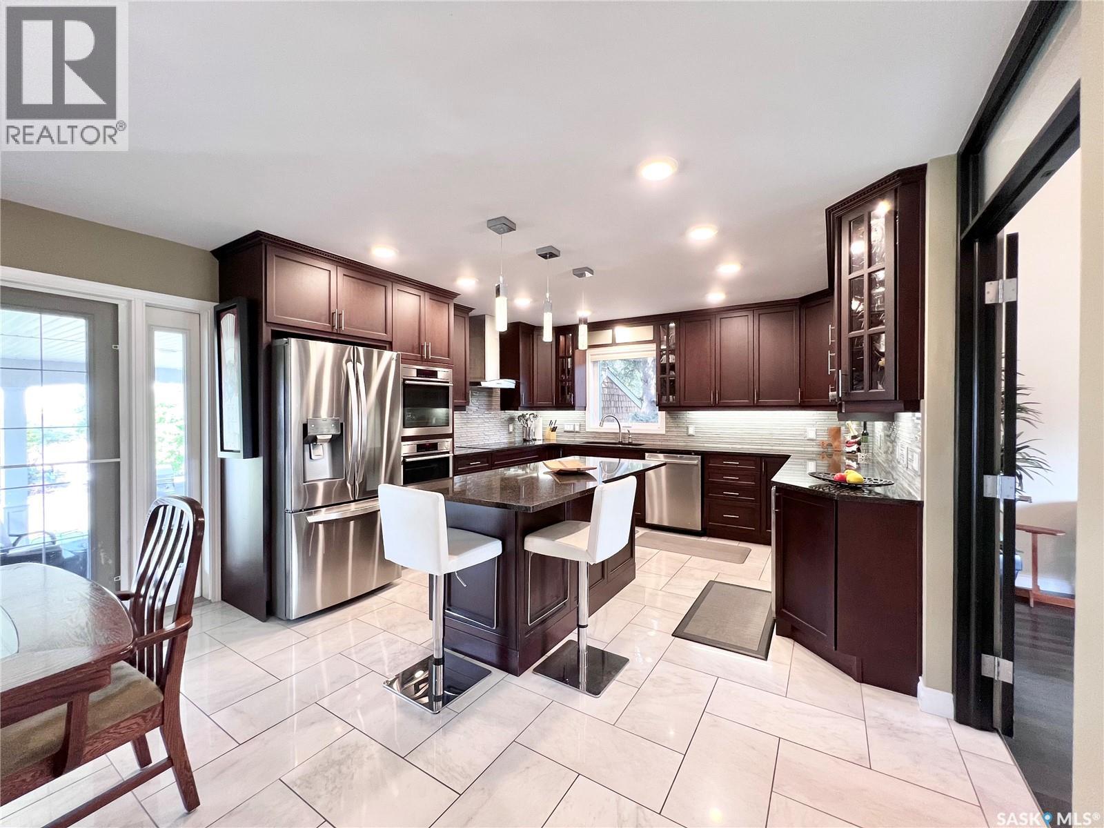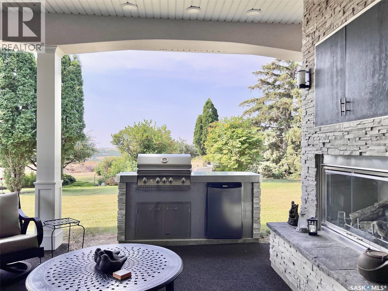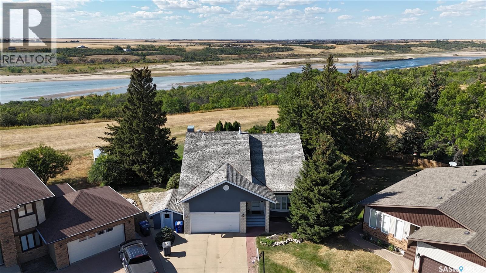 If your looking for WOW Factor this is it! Overlooking the beautiful South Saskatchewan River this home is a dream with completely renovated main level and second level and to maximize those picturesque river views! Enter into the grand foyer with stunning vaulted ceilings and statement chandelier. The kitchen is the perfect work space for any level of home chef with granite countertops, stainless steel appliances, double built-in ovens, huge island and under counter lighting. The office is just steps away with its own gas fireplace, custom built in shelves and glass moving privacy wall; working from home will feel like heaven with the greenspace and riverbank views it offers! The stunning tile floor leads around the corner to the powder room, perfect for guests to pop into and the laundry room with storage. The second level contains two generous sized spare rooms, a large 4 piece bathroom and then into the massive primary suite. In the primary suite you will get not only beautiful river views, but also a stunning 4 piece en-suite, with tub and walk-in shower, his and hers walk-in closets and dressing area. Let your hosting dreams come to life in the amazing covered patio with built-in natural gas BBQ, beer fridge, natural gas fireplace, space heaters, and TV cabinet, perfect for riders game days! Between the easy maintenance of the rubber patio and eye catching stone work, this area will fast become a family favorite hang out spot! The basement offers a large family room with the perfect games/craft room attached! With the added benefit of an extra bedroom and bathroom, this could be a great in-law suite! There is over $400,000 of recent high end upgrades like cedar shakes and lifetime metal shingles, 2 x 6 insulated walls with additional 2' of external insulation, custom woodwork and more! Get a detailed list from us! Just a short 48 minute drive to Saskatoon, 25 minutes to Lake Diefenbaker, this could be everything your family has been waiting for! (id:44393)