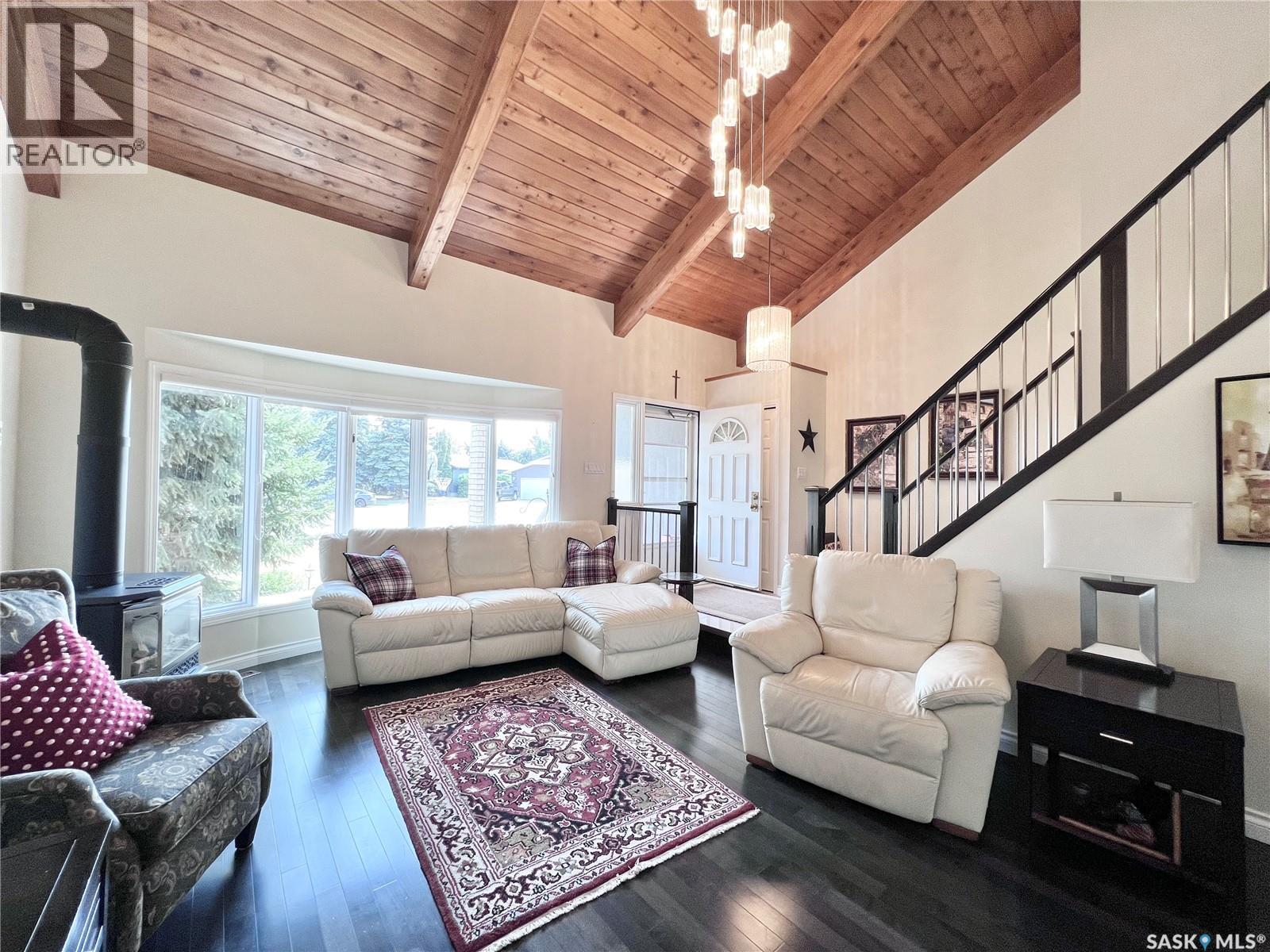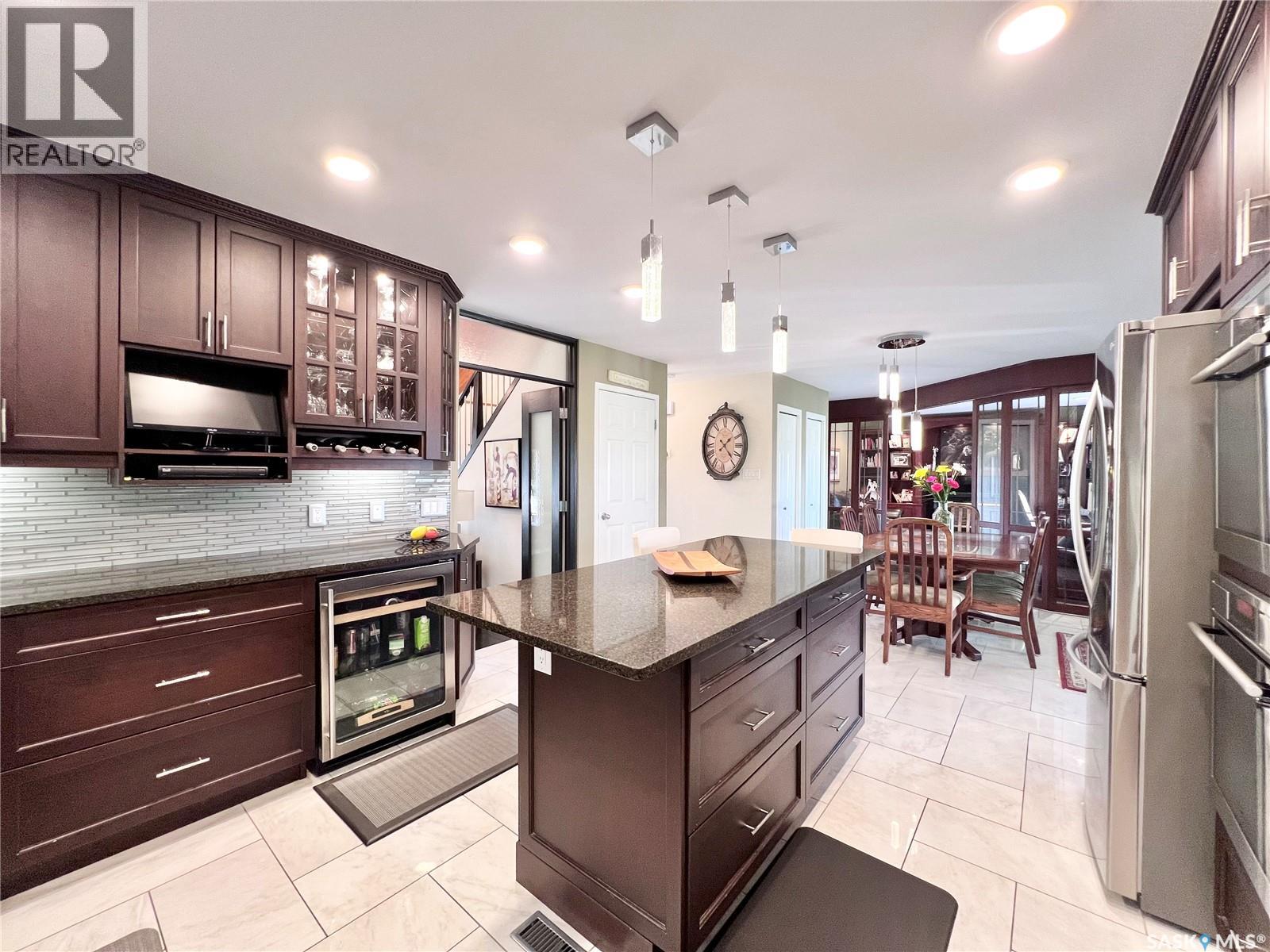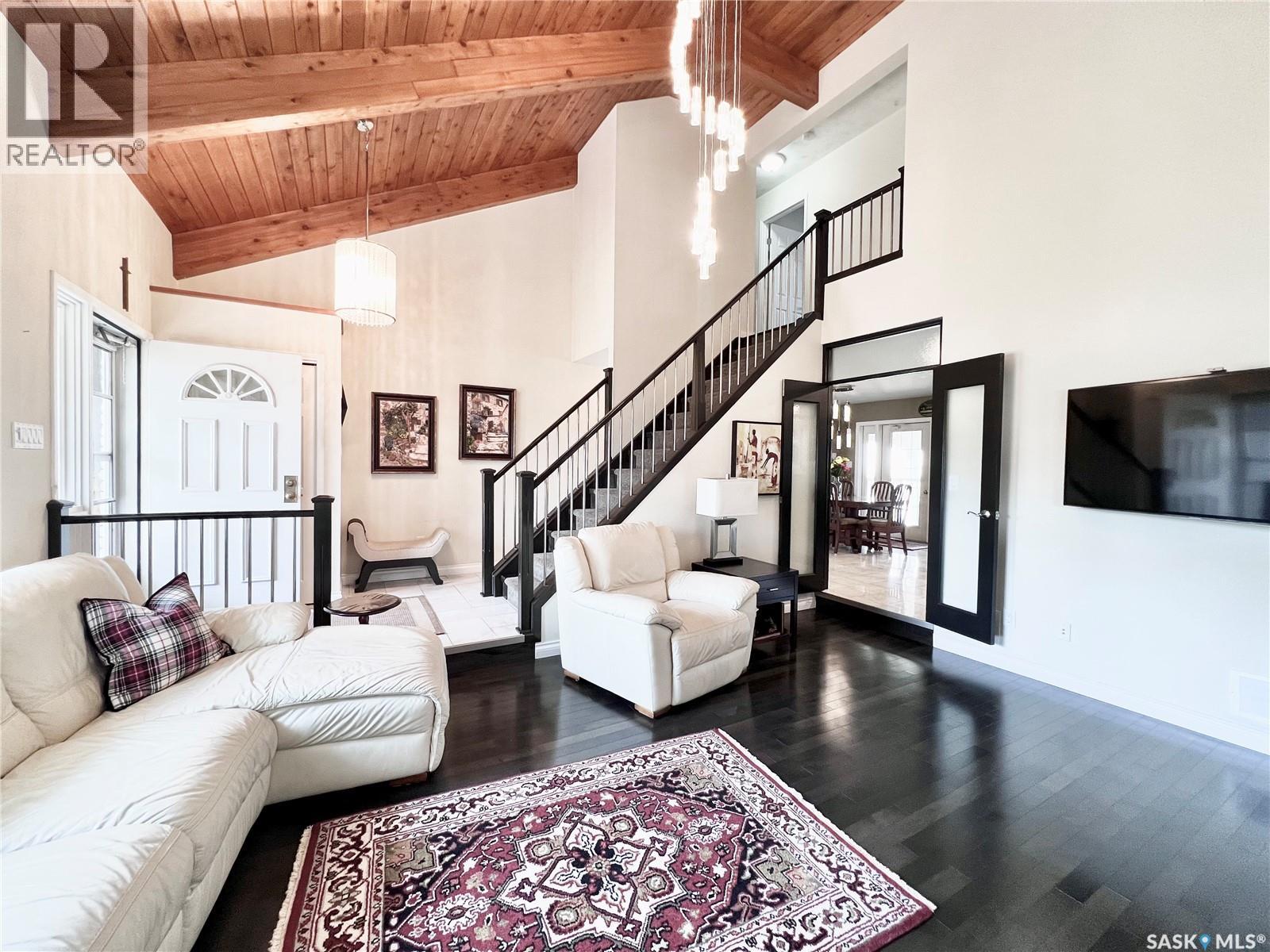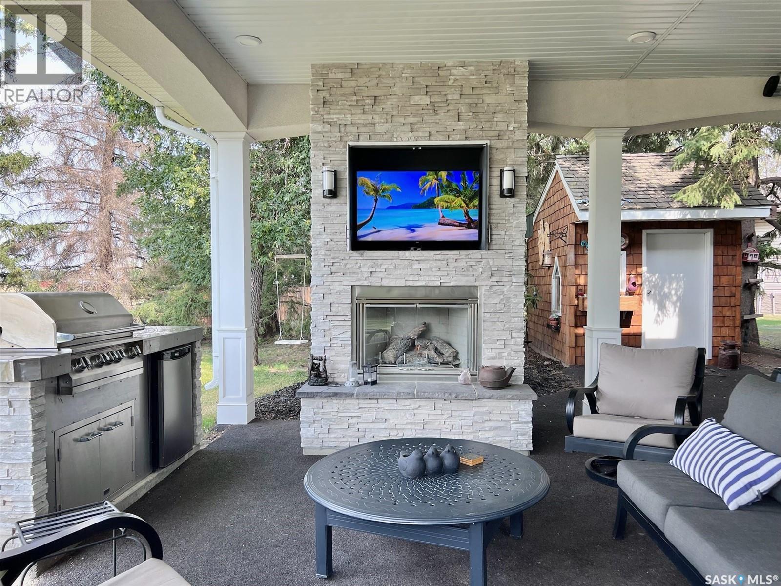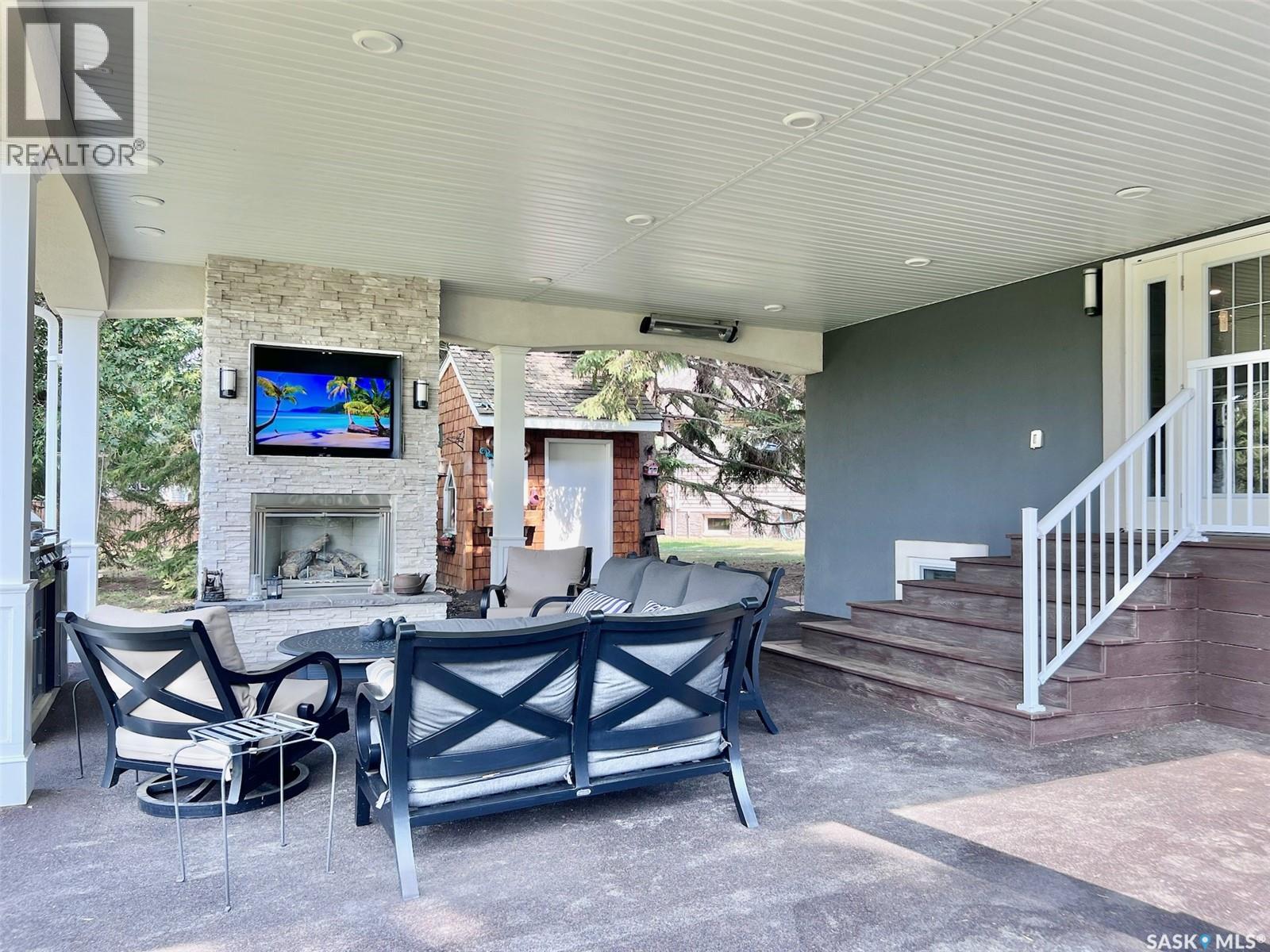 If your looking for WOW Factor this is it! Overlooking the beautiful South Saskatchewan River this home is a dream with completely renovated main level and second level and to maximize those picturesque river views! Enter into the grand foyer with stunning vaulted ceilings and statement chandelier. The kitchen is the perfect work space for any level of home chef with granite countertops, stainless steel appliances, double built-in ovens, huge island and under counter lighting. The office is just steps away with its own gas fireplace, custom built in shelves and glass moving privacy wall; working from home will feel like heaven with the greenspace and riverbank views it offers! The stunning tile floor leads around the corner to the powder room, perfect for guests to pop into and the laundry room with storage. The second level contains two generous sized spare rooms, a large 4 piece bathroom and then into the massive primary suite. In the primary suite you will get not only beautiful river views, but also a stunning 4 piece en-suite, with tub and walk-in shower, his and hers walk-in closets and dressing area. Let your hosting dreams come to life in the amazing covered patio with built-in natural gas BBQ, beer fridge, natural gas fireplace, space heaters, and TV cabinet, perfect for riders game days! Between the easy maintenance of the rubber patio and eye catching stone work, this area will fast become a family favorite hang out spot! The basement offers a large family room with the perfect games/craft room attached! With the added benefit of an extra bedroom and bathroom, this could be a great in-law suite! There is over $400,000 of recent high end upgrades like cedar shakes and lifetime metal shingles, 2 x 6 insulated walls with additional 2' of external insulation, custom woodwork and more! Get a detailed list from us! Just a short 48 minute drive to Saskatoon, 25 minutes to Lake Diefenbaker, this could be everything your family has been waiting for! (id:44393)