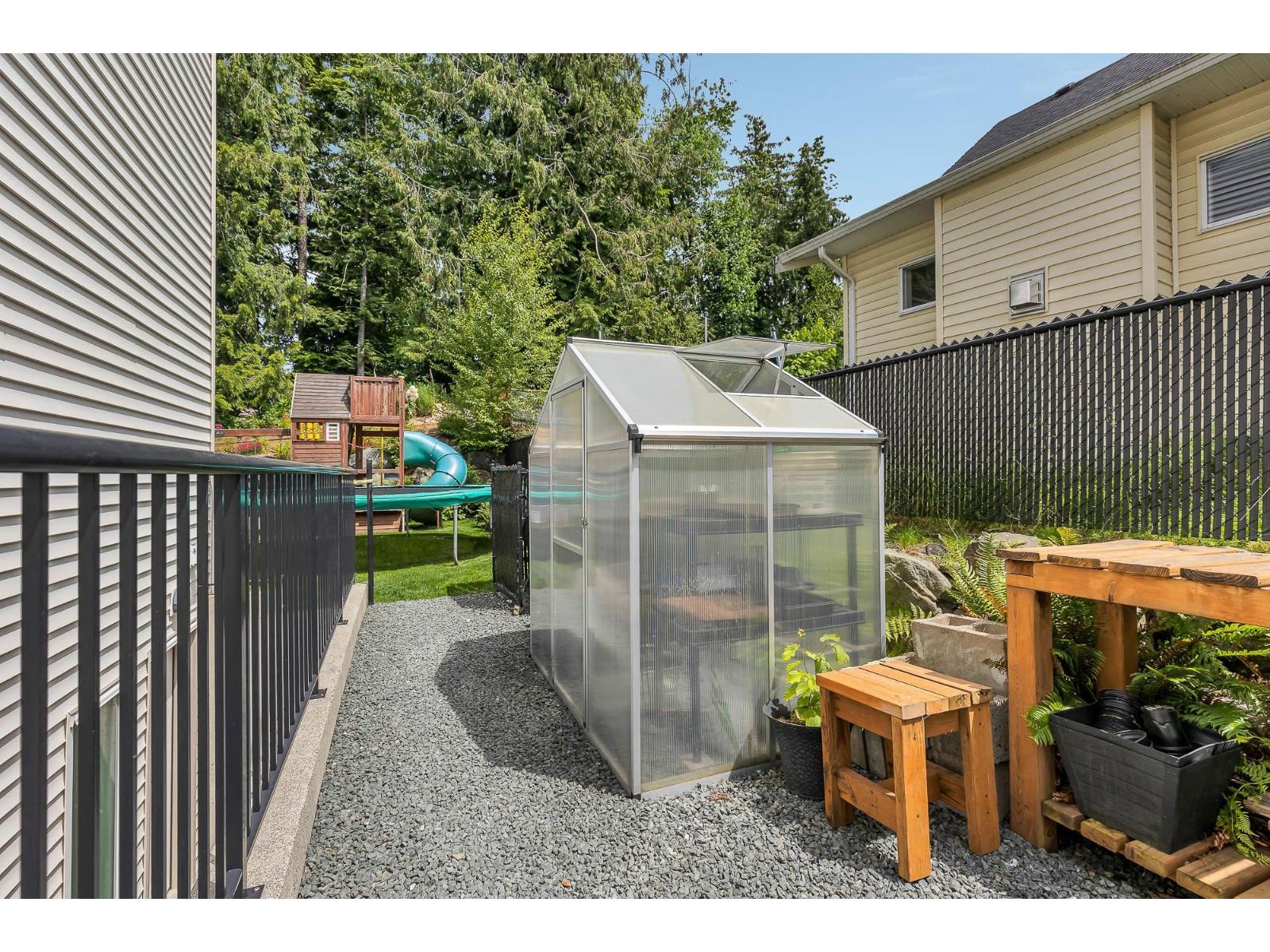 Stunning Executive 6 Bed, 4 bathroom fully finished home in one of Chilliwack's premier neighbourhoods. This immaculately maintained home greets you w/ a spacious open concept living space, floor to ceiling windows displaying the beautiful private, green space. Kitchen offers ample cabinetry & counter space, dining room has plenty of room for entertaining w/ access to covered patio. The backyard is its own oasis w/ playground for the kids, raised custom deck for get-togethers & custom raised garden beds & greenhouse for the garden enthusiast. Upstairs offers 4 bedrooms inc. primary suite w/ full ensuite. Downstairs you walk into a fully finished basement, media room w/ full sound proofing, another bedroom, large family room & functional storage. A/C, EV Rough in & countless other upgrades. * PREC - Personal Real Estate Corporation (id:44393)