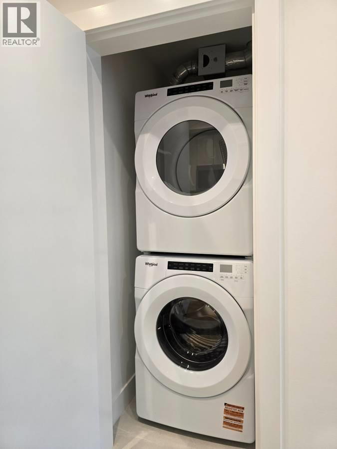 Modern 1-bedroom condo featuring a walk-in closet and large flex room (no closet) perfect for a 2nd bedroom, office, or guest space. This 721 sq. ft. south-facing home offers an open layout with quartz countertops, stainless steel appliances, full-size washer/dryer, and a private extra-long patio overlooking the park and playground. Bright, quiet, and wheelchair accessible, with high-end finishes and great kitchen storage. Building amenities include a fitness centre, lounge, co-work studio, outdoor courtyard, shared green space, and dog/bike wash room. Walk to Rocky Point Park, Suter Brook Village, Brewers Row, schools, shops, and Moody Centre SkyTrain & West Coast Express. Includes 1 parking, 1 locker, gas & water; tenant pays hydro. Pets considered with deposit. (id:44393)