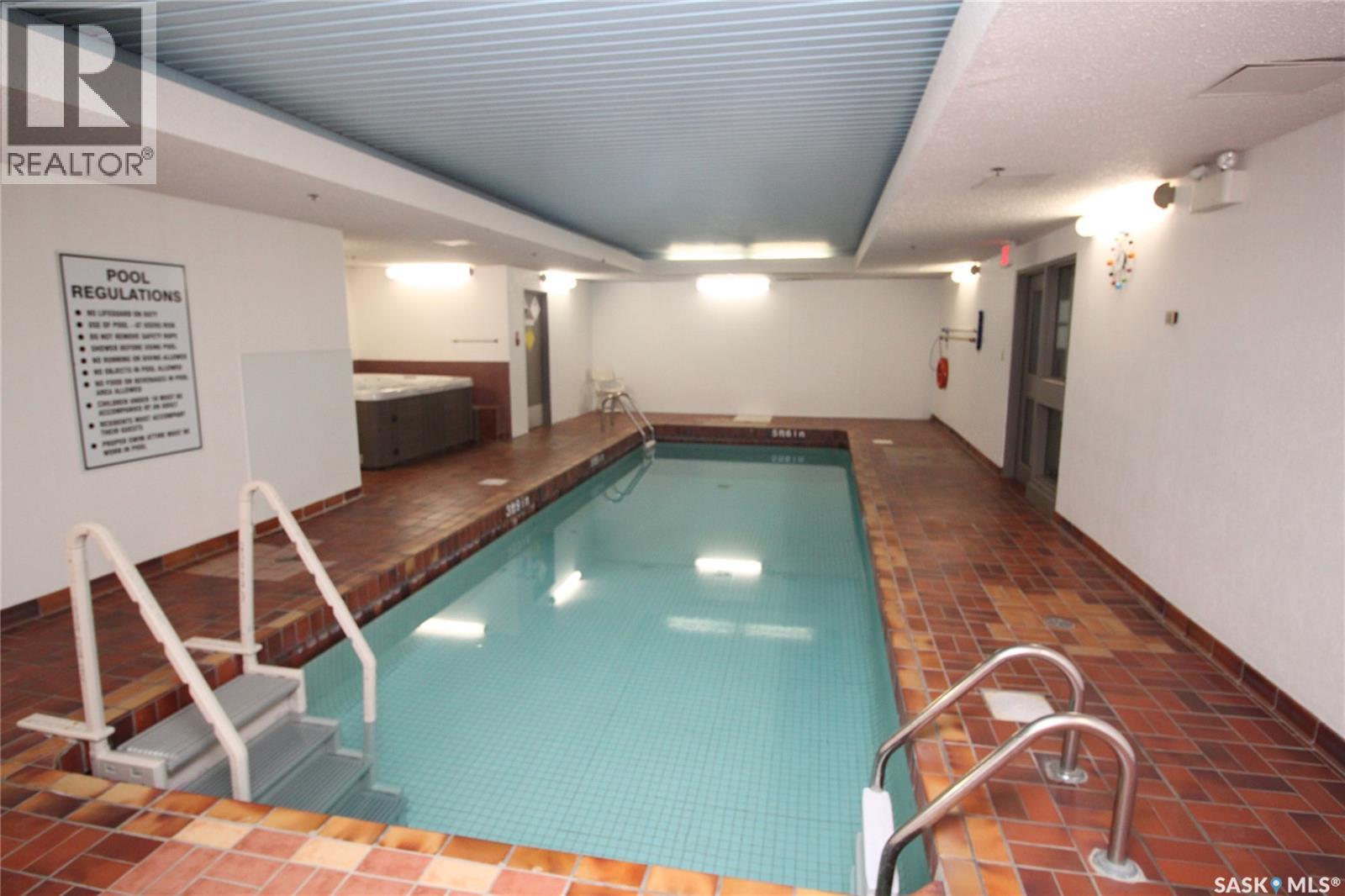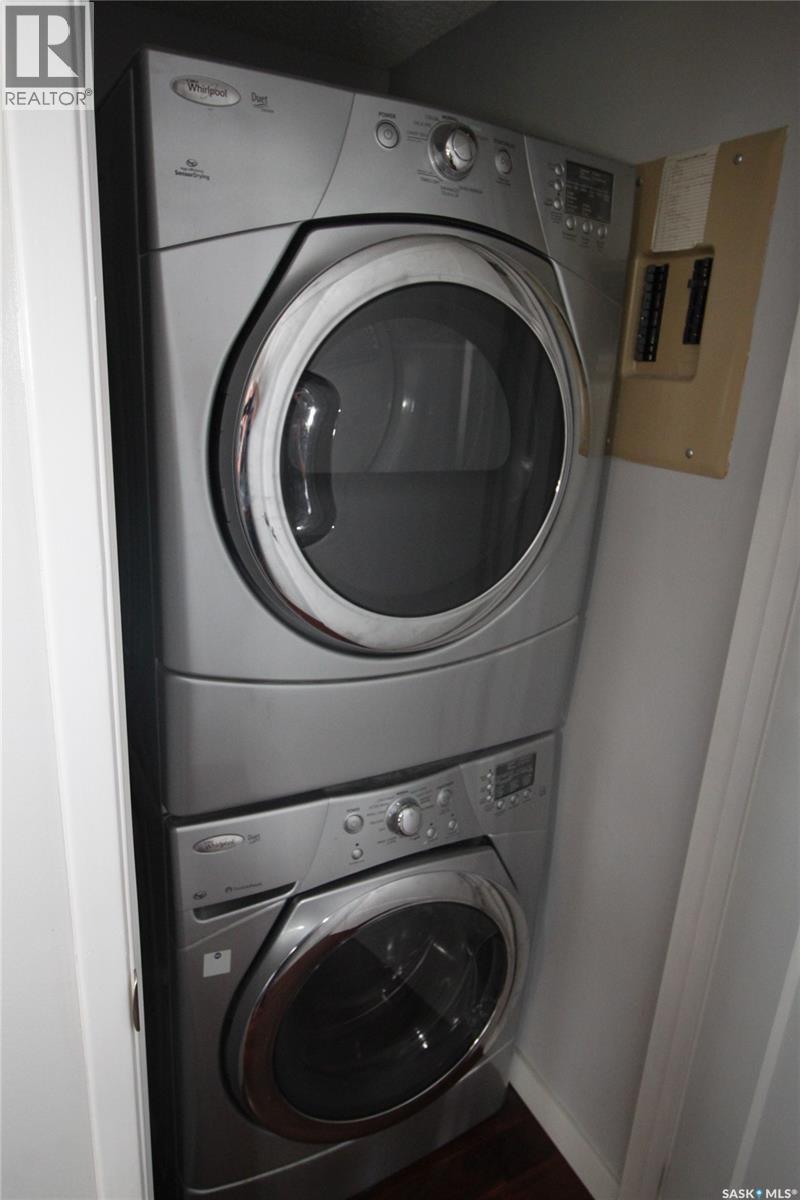 $648.67 MonthlyWelcome to Park Avenue, where you can live the dream of residing in luxury in the heart of vibrant downtown Saskatoon. This 2-bedroom 2-bath condo is situated in City Park with a beautiful view of Kinsmen Park from a very private corner balcony. Large living/dining room that is great for relaxing or entertaining! The galley kitchen has plenty of storage. The primary bedroom is spacious and features a walk-in closet with a 2pc ensuite. Good-sized second bedroom. In-suite laundry. Central air conditioning, wheelchair accessible, one surface-electrified parking stall, swimming pool, hot tub, amenities room with pool table. Well managed and quiet building with 2 elevators to move you seamlessly to your floor. Located within easy walking distance of City Hospital, RUH, UofS and downtown Saskatoon. (id:44393)