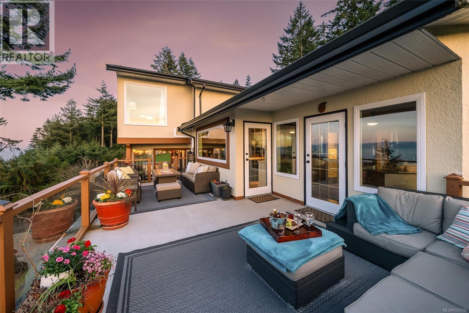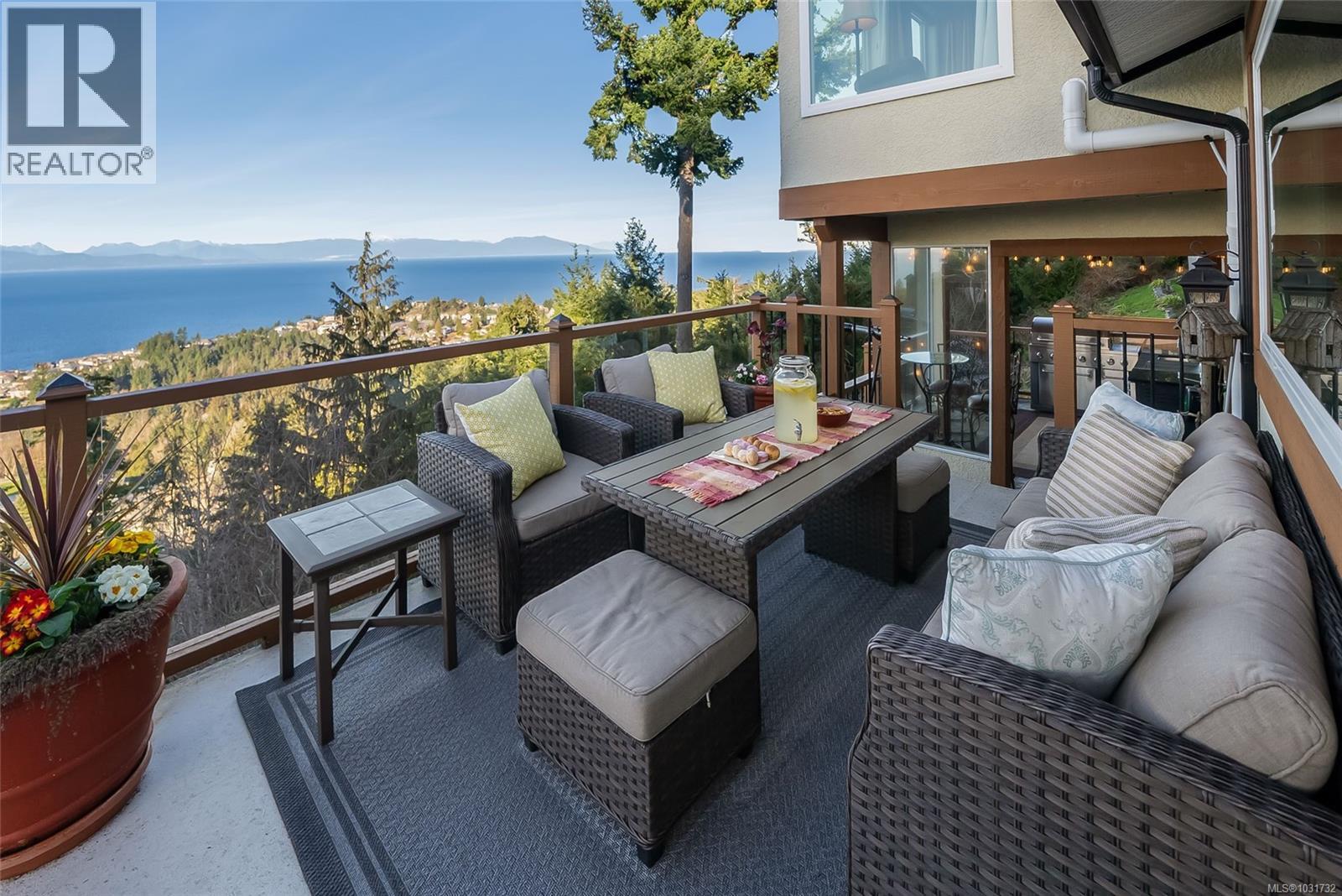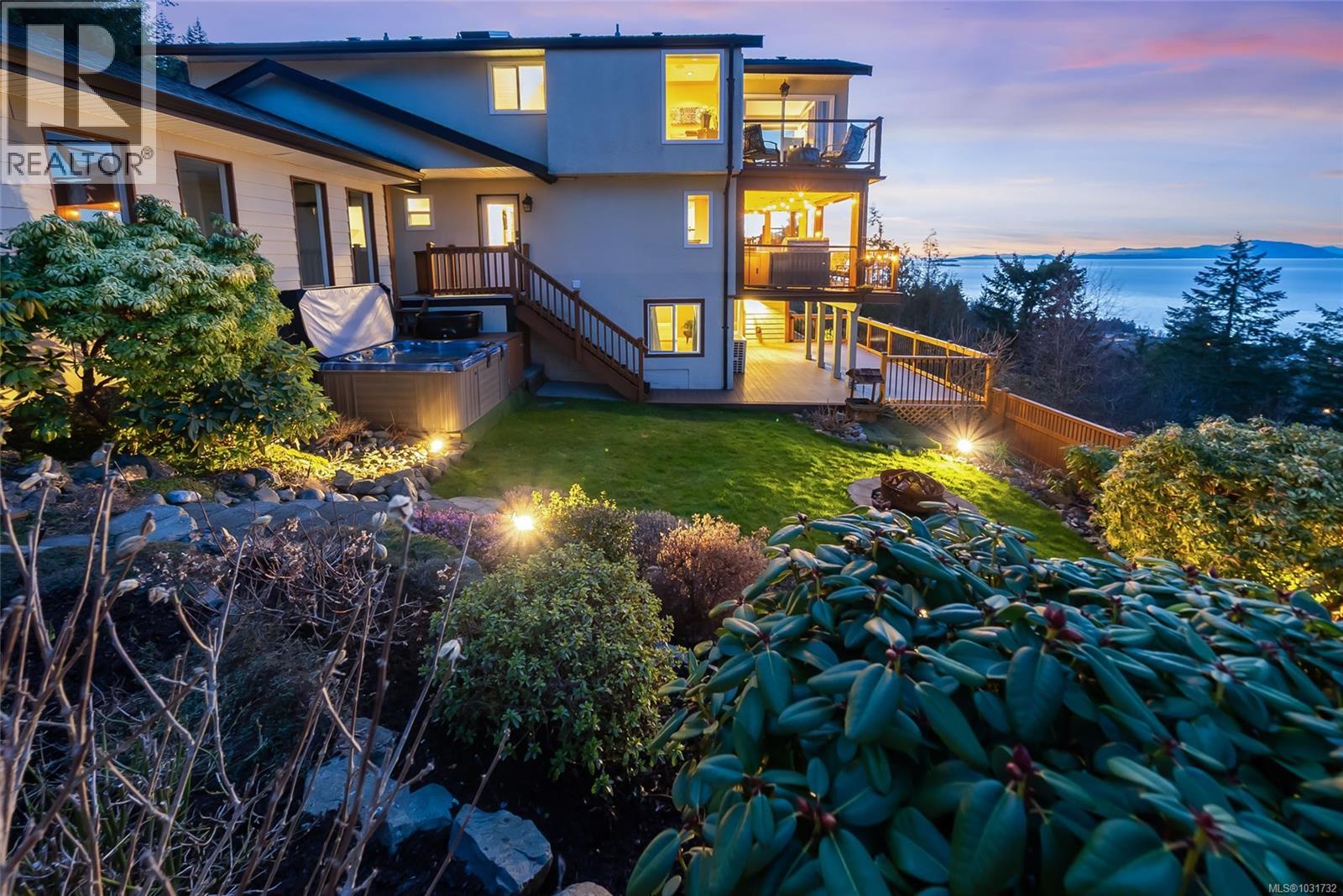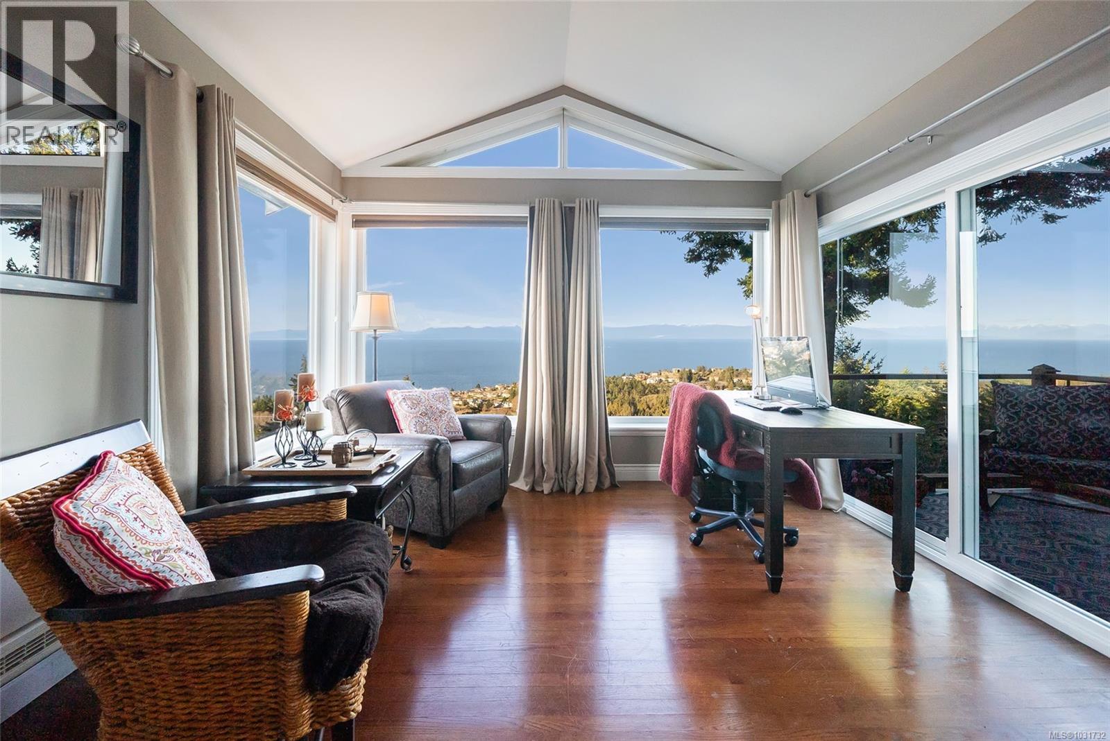 Perched on 1.18 acres with fabulous ocean and mountain views, this exceptional estate offers over 5,500 sq.ft. of living space. The beautifully renovated 4,281 sq.ft main residence is a stunning 3-bedroom upper-level home, with a private studio suite and a separate 2-bedroom suite that can easily be reintegrated into the main living area. Quality finishes throughout include hardwood flooring and expansive windows that frame the spectacular coastal scenery, while the spa-inspired primary suite invites relaxation with its sunken double Jacuzzi tub. The self contained 1,235 sq.ft. guest house with kitchen, full bath, 2 bedrooms, and generous living space is ideal for extended family or guests. Multiple decks provide great views and the private fenced yard and fire pit offer a peaceful retreat. With ample off-street parking, a carport, garage space for all your vehicles and toys, as well as development potential, this is a rare chance to own a remarkable view property in North Nanaimo. (id:44393)