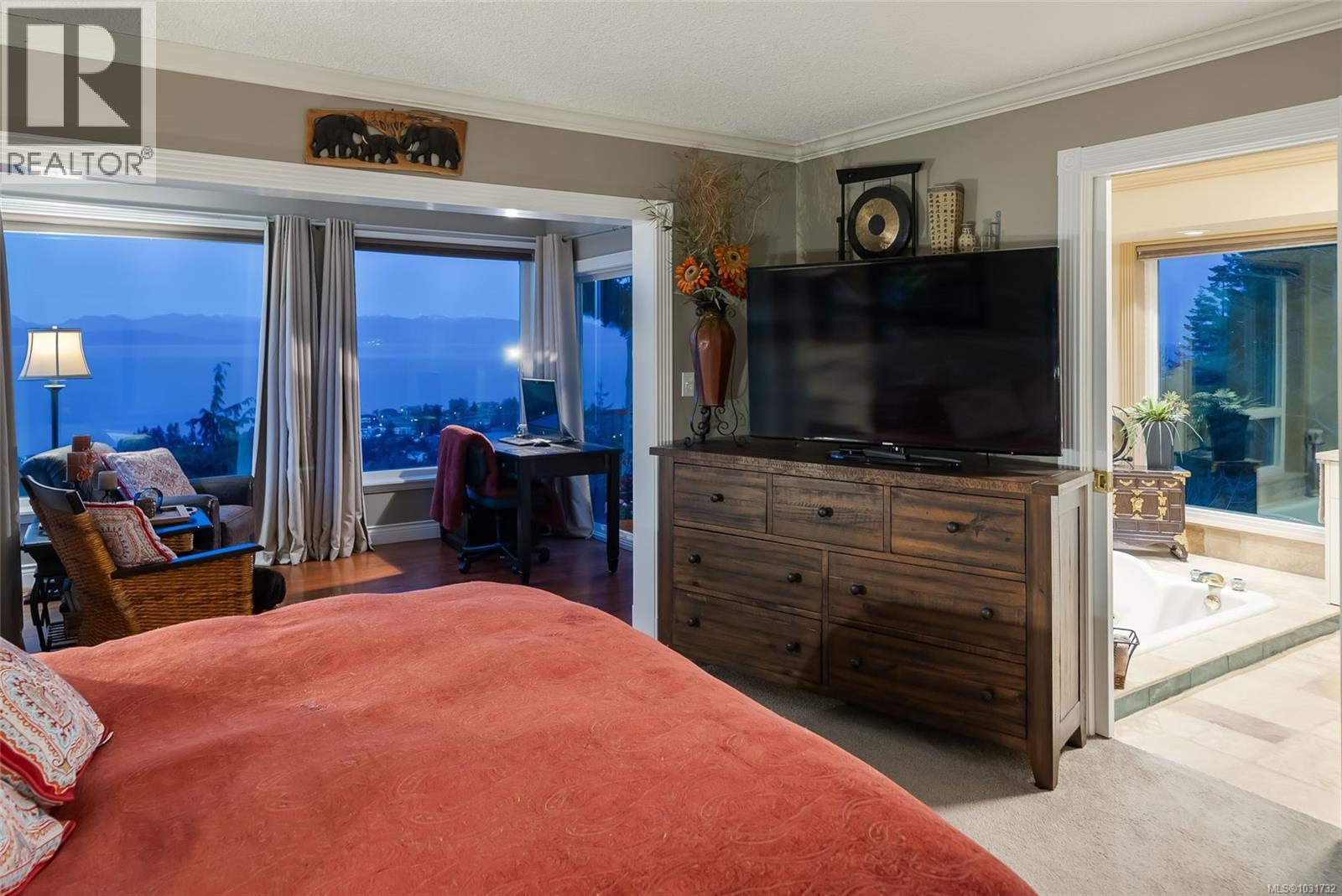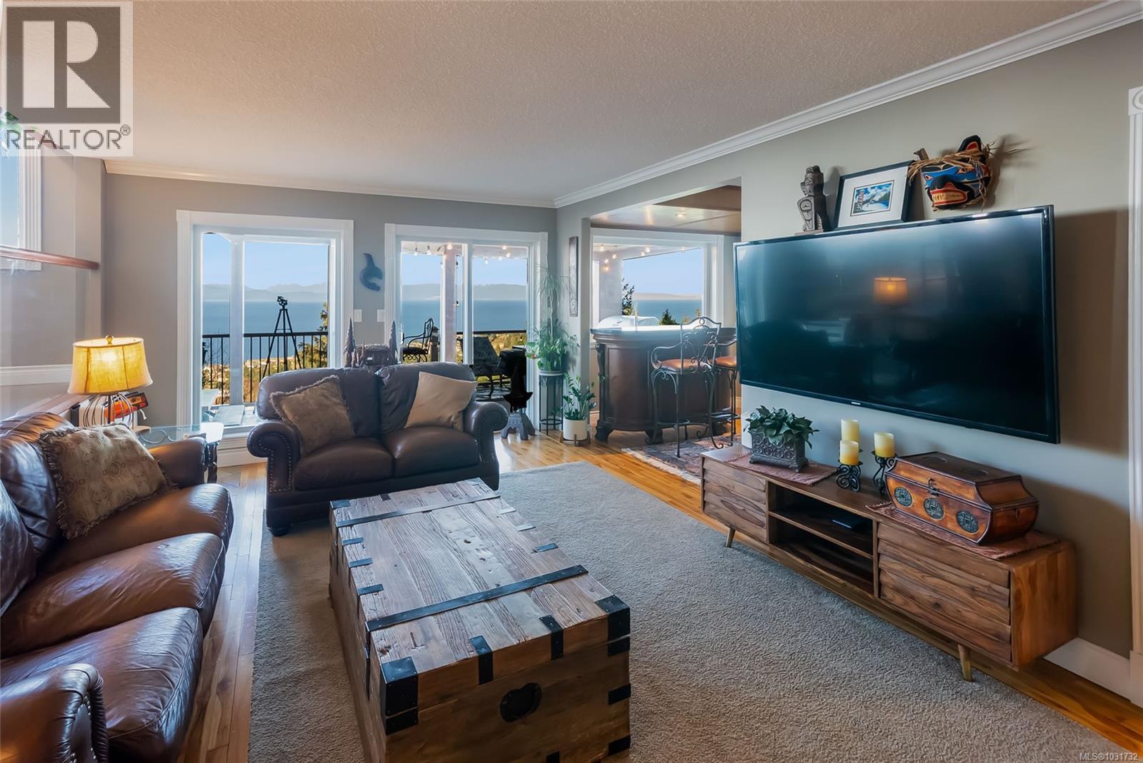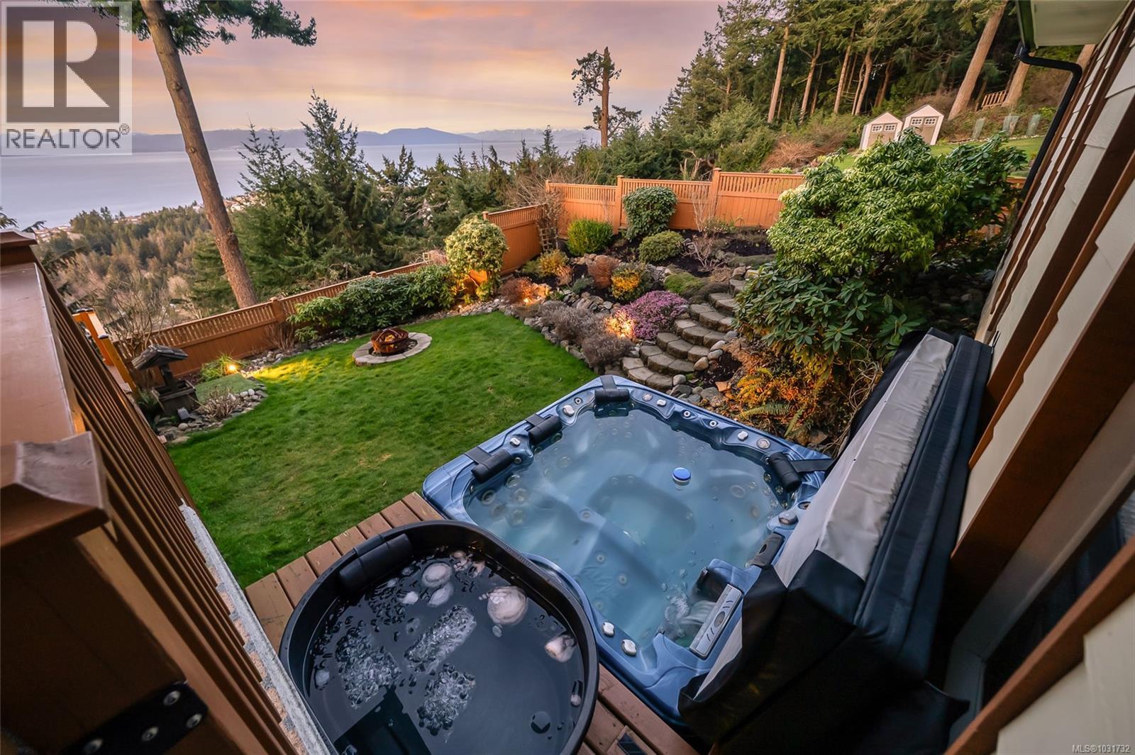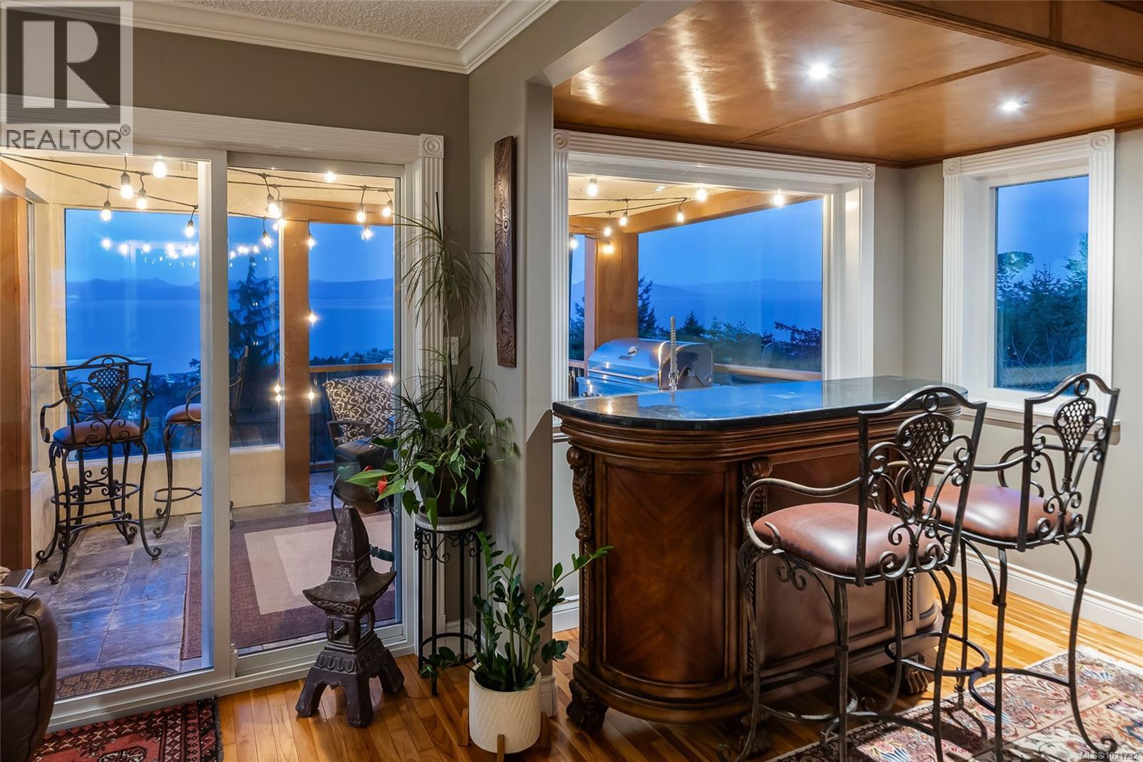 Perched on 1.18 acres with fabulous ocean and mountain views, this exceptional estate offers over 5,500 sq.ft. of living space. The beautifully renovated 4,281 sq.ft main residence is a stunning 3-bedroom upper-level home, with a private studio suite and a separate 2-bedroom suite that can easily be reintegrated into the main living area. Quality finishes throughout include hardwood flooring and expansive windows that frame the spectacular coastal scenery, while the spa-inspired primary suite invites relaxation with its sunken double Jacuzzi tub. The self contained 1,235 sq.ft. guest house with kitchen, full bath, 2 bedrooms, and generous living space is ideal for extended family or guests. Multiple decks provide great views and the private fenced yard and fire pit offer a peaceful retreat. With ample off-street parking, a carport, garage space for all your vehicles and toys, as well as development potential, this is a rare chance to own a remarkable view property in North Nanaimo. (id:44393)