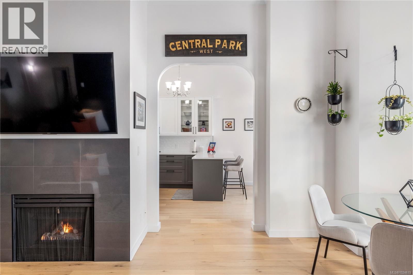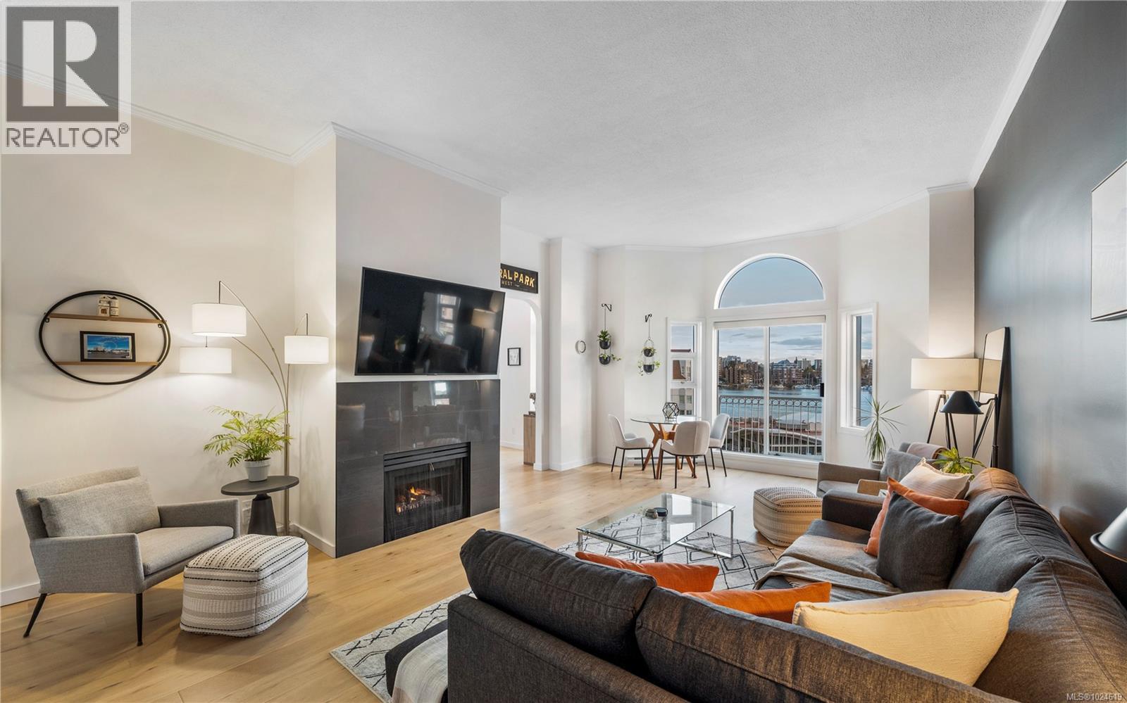 $639.46 MonthlyIt’s all about the view at this top-floor, south-facing condo in the Royal Quays. Enjoy the grand feeling of gorgeous 11-foot ceilings and large picture windows framing stunning ocean, city, and mountain views. Open the sliding door to the Juliette balcony for fresh air and a spot for potted plants. With nearly 1,200 sq ft of living space, the layout is bright and airy with windows on either side for a wonderful cross-breeze. The sellers have beautifully updated the kitchen, bathroom, and flooring with a modern, refreshed finish. The spacious living room features a gas fireplace and flows into the bright kitchen, where you can enjoy the view right from the kitchen window. The primary bedroom offers a cheater en-suite, plus a second bedroom, in-suite laundry, separate storage, and 1 parking stall. The building was fully remediated in 2003 and welcomes all ages, rentals, and pets. An oceanside walkway, restaurants, groceries, and everyday amenities are all within easy walking distance. (id:44393)