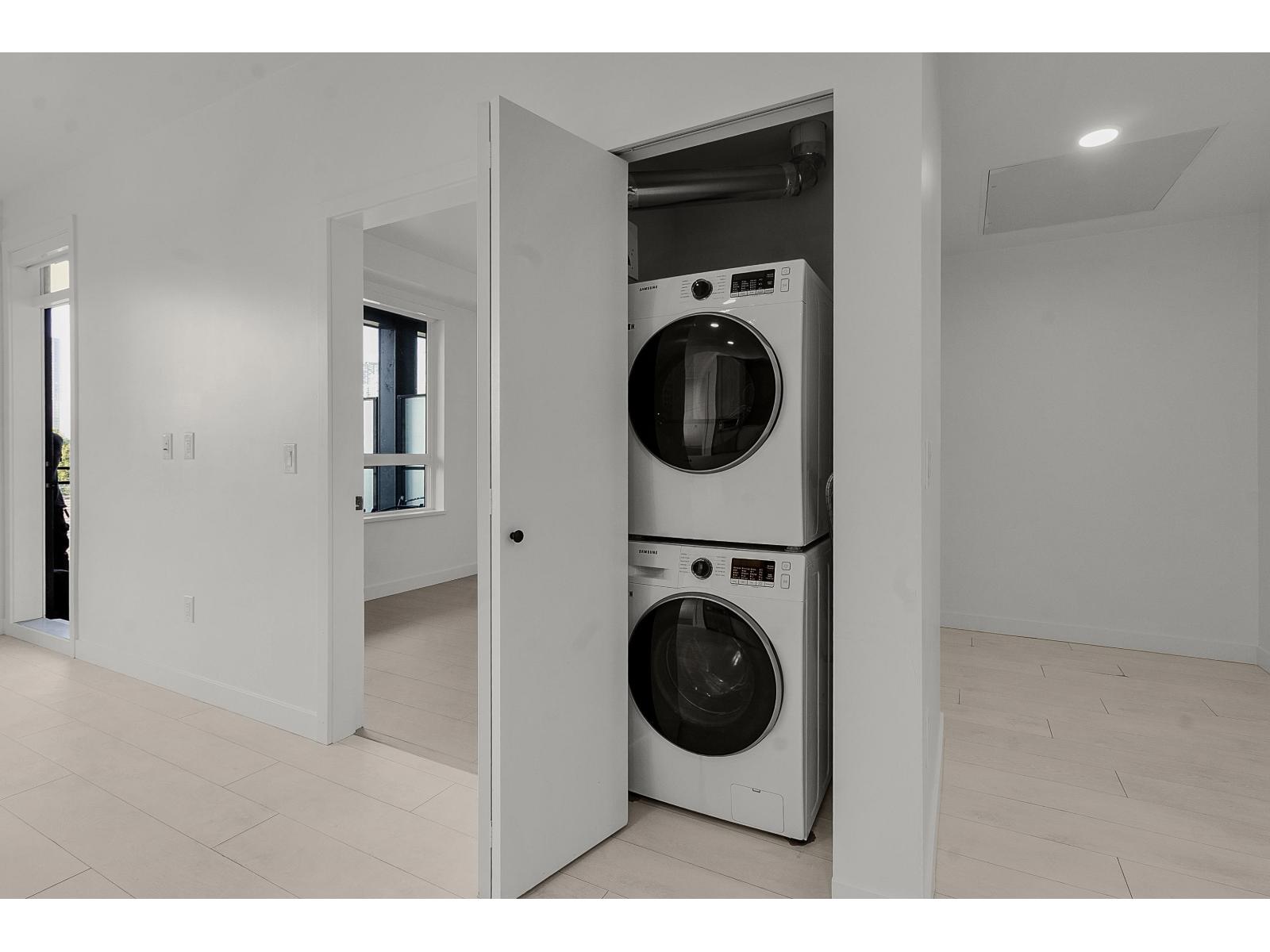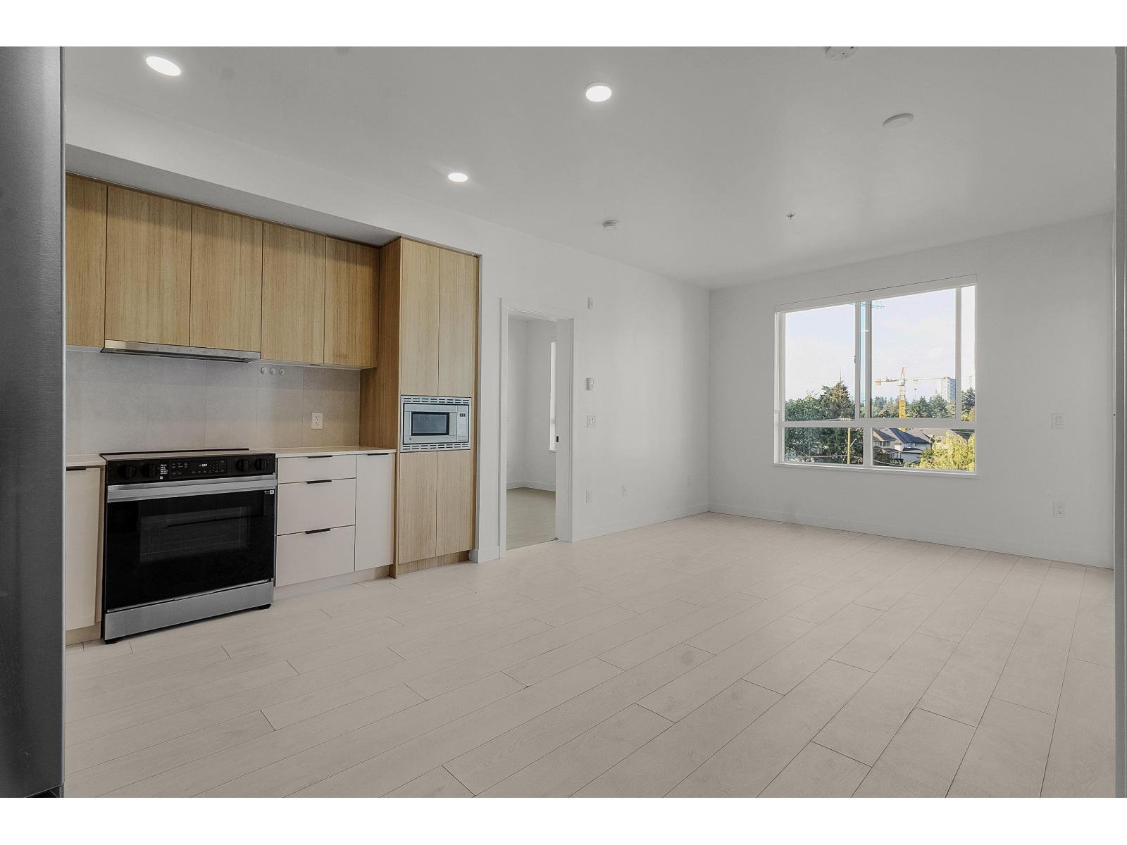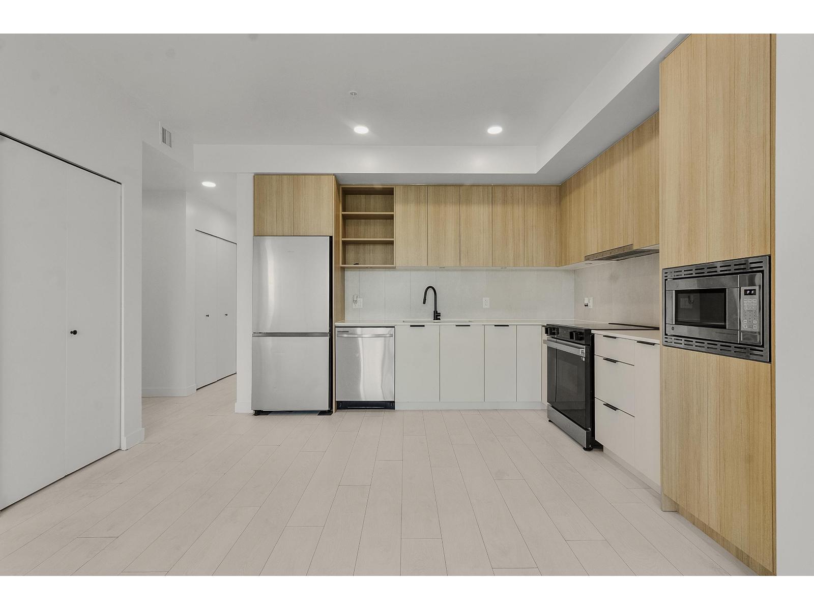$450 MonthlyAlmost brand new, this bright unit features an open-concept layout with laminate flooring, in-floor heating, and large windows with a non-obstructed view. The sleek kitchen includes stainless steel appliances, contemporary cabinetry, and ample storage. Conveniently located near the elevator, the home comes with 1 parking stall and 1 storage locker. Amenities include a gym, party room with kitchen, outdoor BBQ and fire pit, rooftop deck, ping pong, and shuffleboard. Steps from King George SkyTrain Station, Surrey Memorial Hospital, and Surrey Central Mall, you'll have shopping, transit, and healthcare at your doorstep. Perfect for professionals, small families, or investors, this home delivers modern finishes, prime location, and lifestyle amenities. Don't miss out-book your showing today! (id:44393)