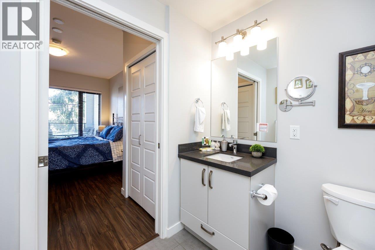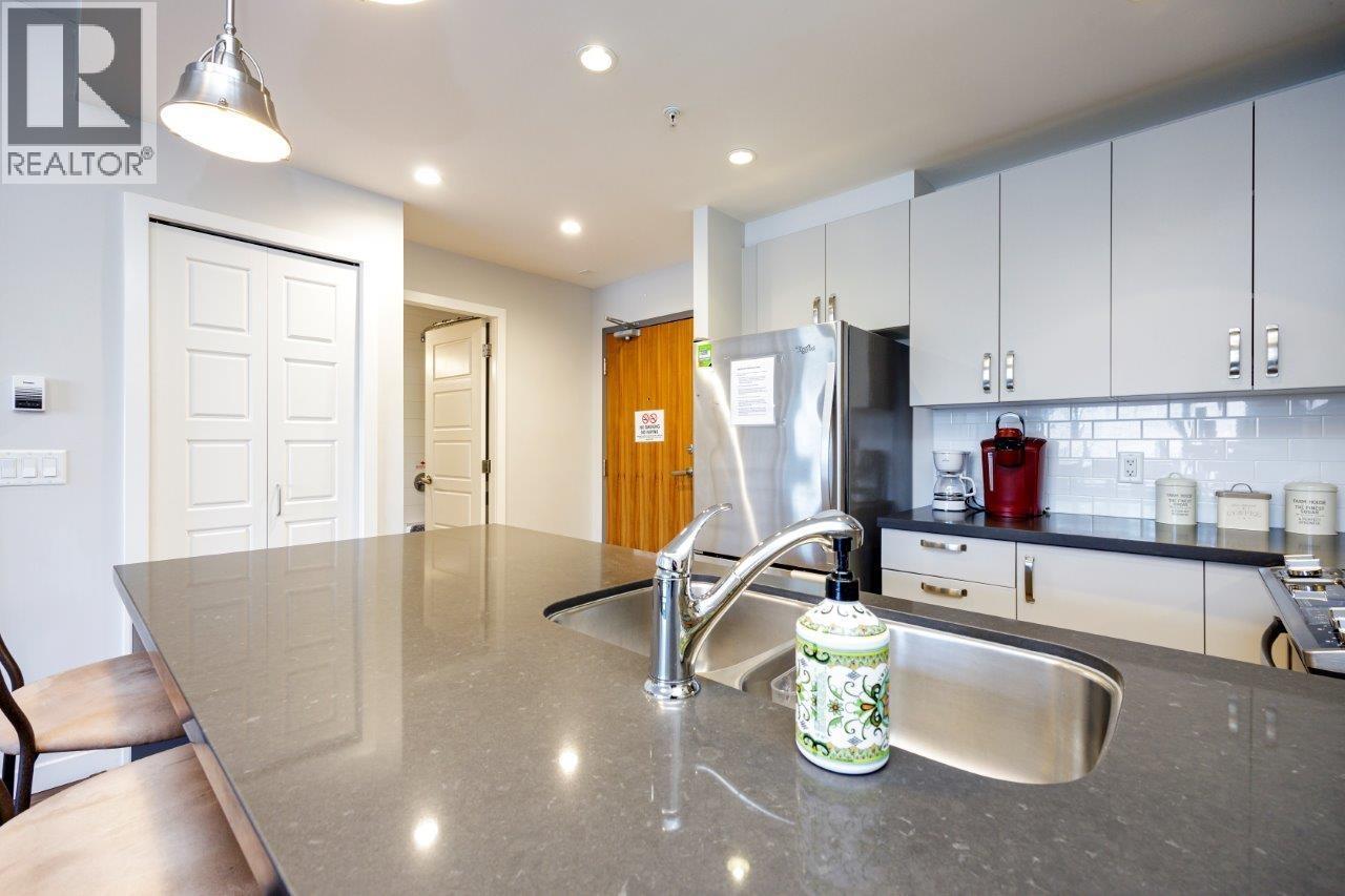 Discover contemporary living in this beautifully furnished 650-square-foot condo, ideally situated in North Vancouver. This one-bedroom, one-bathroom residence is perfect for individuals or couples seeking a stylish and comfortable home. As you step inside, you are welcomed into a bright and open living area, thoughtfully furnished to create a warm and inviting atmosphere. Large windows frame breathtaking mountain views and allow natural light to flood the space, enhancing the airy and spacious feel. For your entertainment needs, a flat-screen TV is included, providing a perfect spot for relaxation and enjoyment. The kitchen is a culinary enthusiast's dream, featuring sleek stainless steel appliances and elegant granite, stone, or quartz countertops. (id:44393)