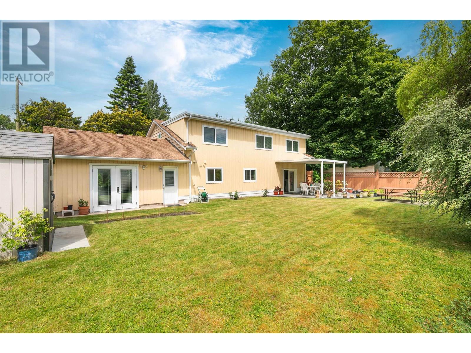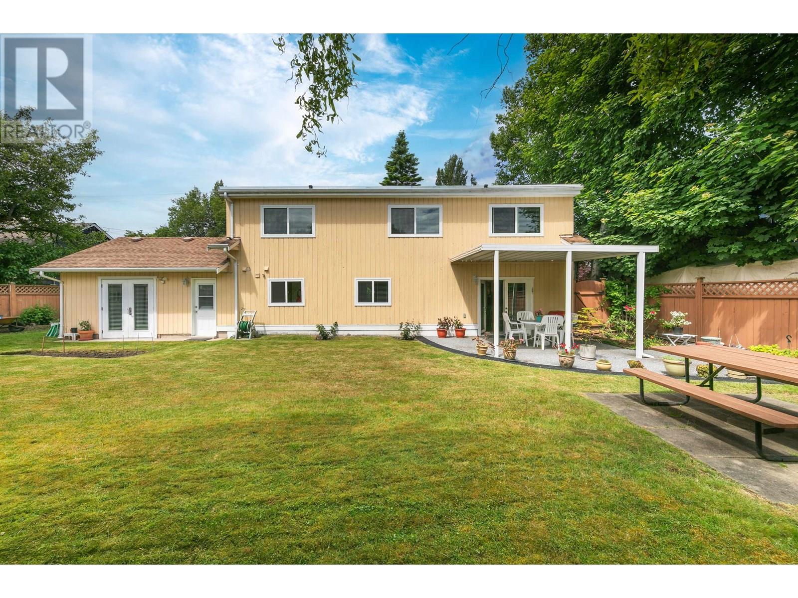 Prime central location within walking to distance to transit and all local amenities in Tsawwassen! Warm and inviting 3 level split 2276 sq.ft. family home featuring 3 bedrooms, original hardwood floors, newer vinyl windows and updated 5 pc bathroom upstairs. The bright kitchen with modern backsplash & stainless steel appliances is adjoined to a large eating area. There is a spacious living room with gas fireplace which overlooks the family room and dining area below. French doors open out to the huge sun drenched SOUTHERN exposed rear garden with a covered patio. Bonus flex room with separate entrance & 3 pc bath can be used as a 4th or primary bedroom. Recent updates include BRAND NEW ROOF, furnace, A/C ( 2021), eco walkway in front and rear patio area. (id:44393)