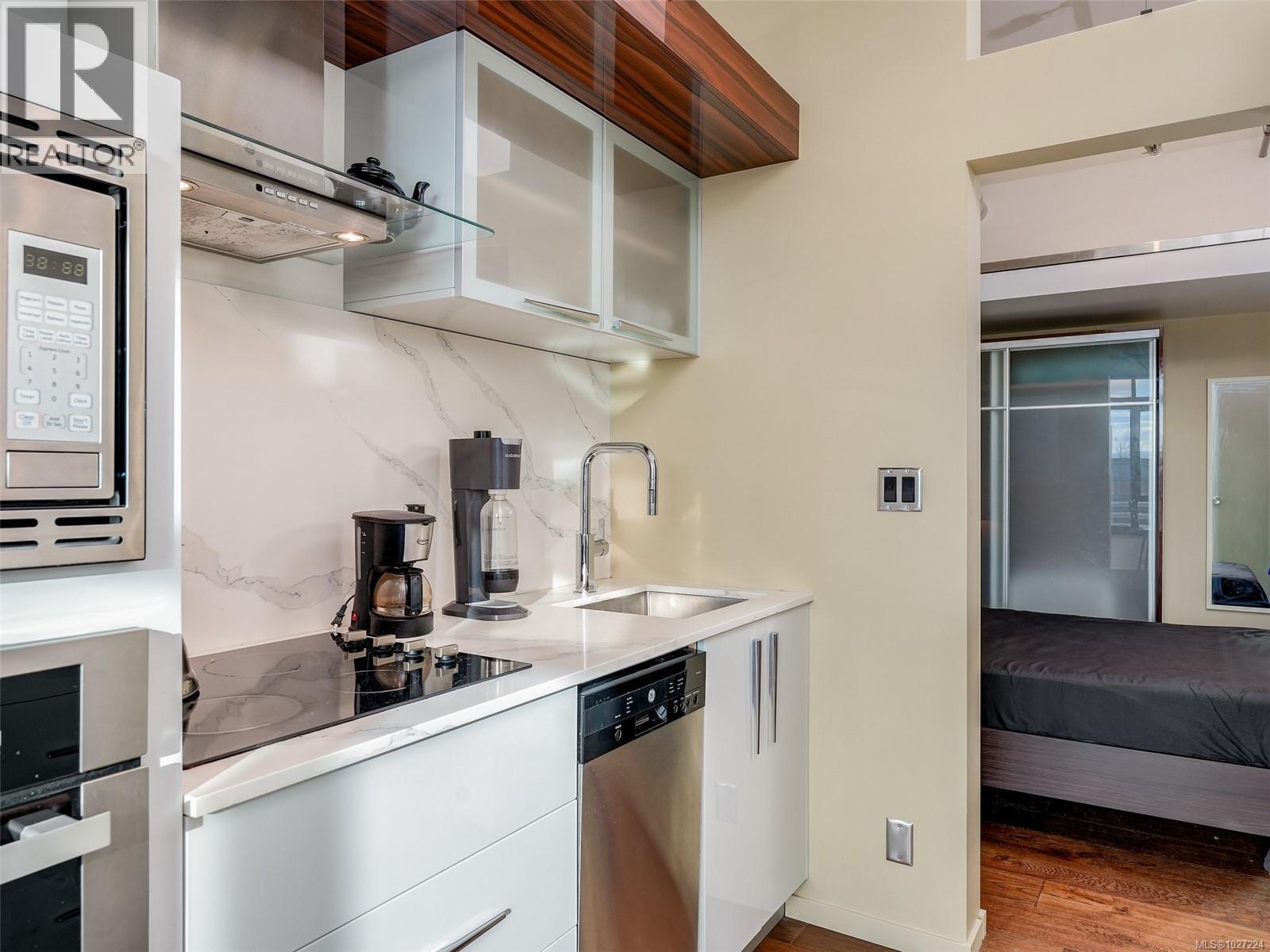$315 MonthlyExperience downtown living at its finest with Jukebox, a stylish 2019-built steel and concrete condo by Mosaic Properties Inc. This 1-bedroom home is bright and modern with south-facing exposure, and the features are stunning: 10-foot ceilings, hardwood floors, quartz countertops, soft close cabinets, stainless steel appliances and in-suite laundry. Also, heating and hot water are included with the strata fees and there is a separate storage locker. Located in the vibrant Harris Green district of Downtown Victoria, the location is extremely central and within walking distance to so many amenities including London Drugs, Bin 4, restaurants, cafe's, shopping and so much more. With a walk score of 98, a bike score of 98 and a transit score of 89 there are so many convenient options for green transportation. Also, the building has a fully equipped gym with landscaped meditation garden and is pet friendly and rentable. Don't miss the opportunity to invest and call this property your home. (id:44393)