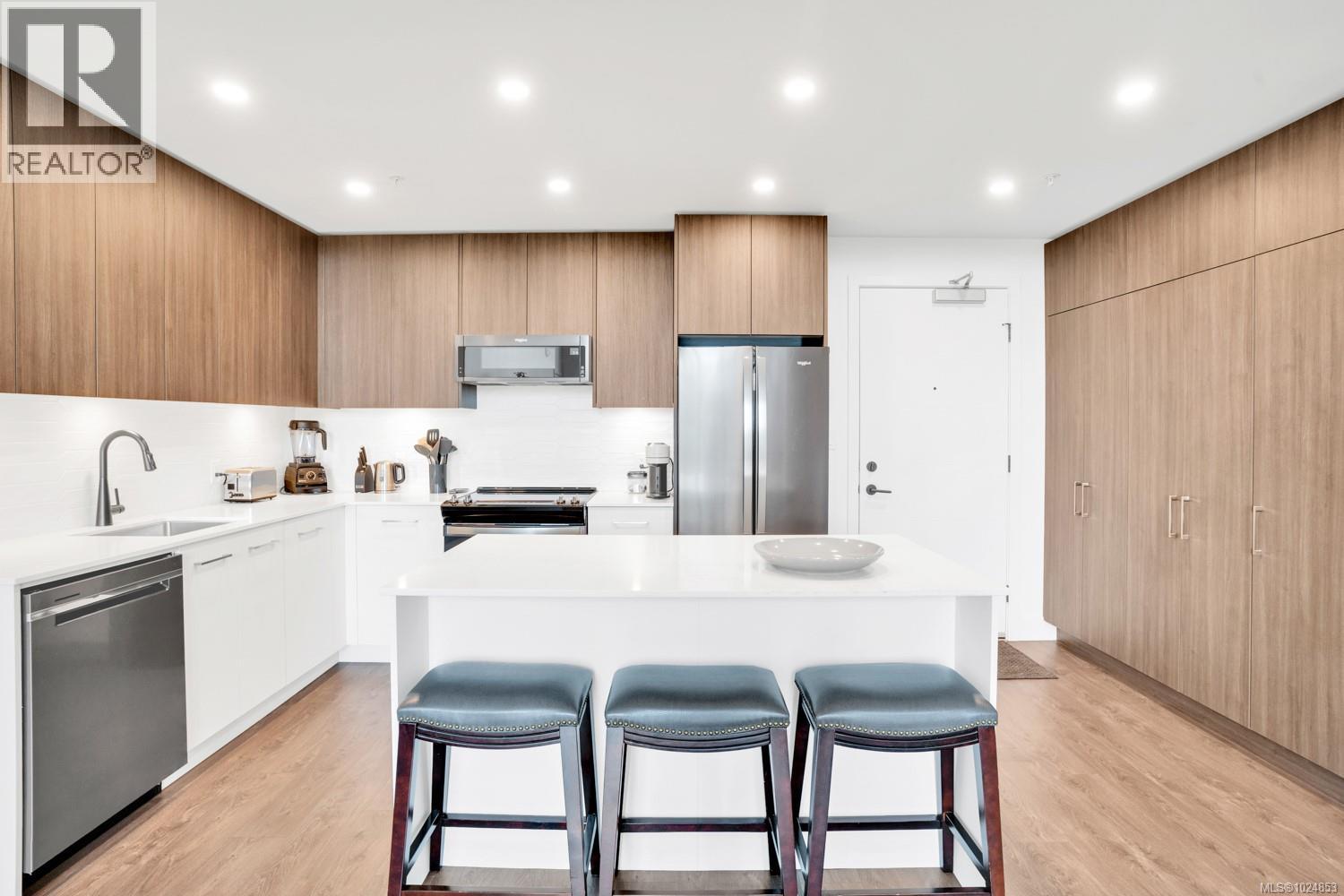 $473 MonthlyWelcome to 531–920 Reunion Avenue, a bright and modern top-floor condo in Langford’s award-winning Belmont community. This 2-bedroom, 2-bathroom home offers nearly 1,000 square feet of thoughtfully designed living space with elevated ceilings and large windows that fill the unit with natural light. The layout is ideal, with bedrooms on opposite sides for privacy, a dedicated office nook, and an open-concept main living area that feels spacious and inviting. The kitchen features full-height cabinetry, stainless Whirlpool appliances, quartz countertops, and a large island perfect for entertaining or casual meals. The primary suite includes a walk-through closet and a spa-inspired ensuite with double vanities and a frameless glass shower, while the second bedroom is bright and comfortable with its own full guest bath nearby. Step out onto your private covered balcony with treetop views and a gas BBQ hookup—perfect for evening relaxation. This pet- and rental-friendly unit includes full-sized in-suite laundry, a large pantry wall for storage, one secure underground parking stall, and a separate storage locker. Reunion’s amenities are among the best in the Westshore, including a stunning fireside lounge, a chef’s kitchen and social room, a fitness centre, an outdoor BBQ terrace and fire pit, a fenced dog run, and a modern dog wash station. Located across from Belmont Market and Westshore Town Centre, and just steps to the Galloping Goose Trail, you’re within walking distance to groceries, cafes, dining, fitness studios, and more. With lakes, parks, and Bear Mountain just minutes away, this is a prime opportunity to live in a stylish, connected, and community-driven setting. This is a must see. Book your viewing today. (id:44393)
