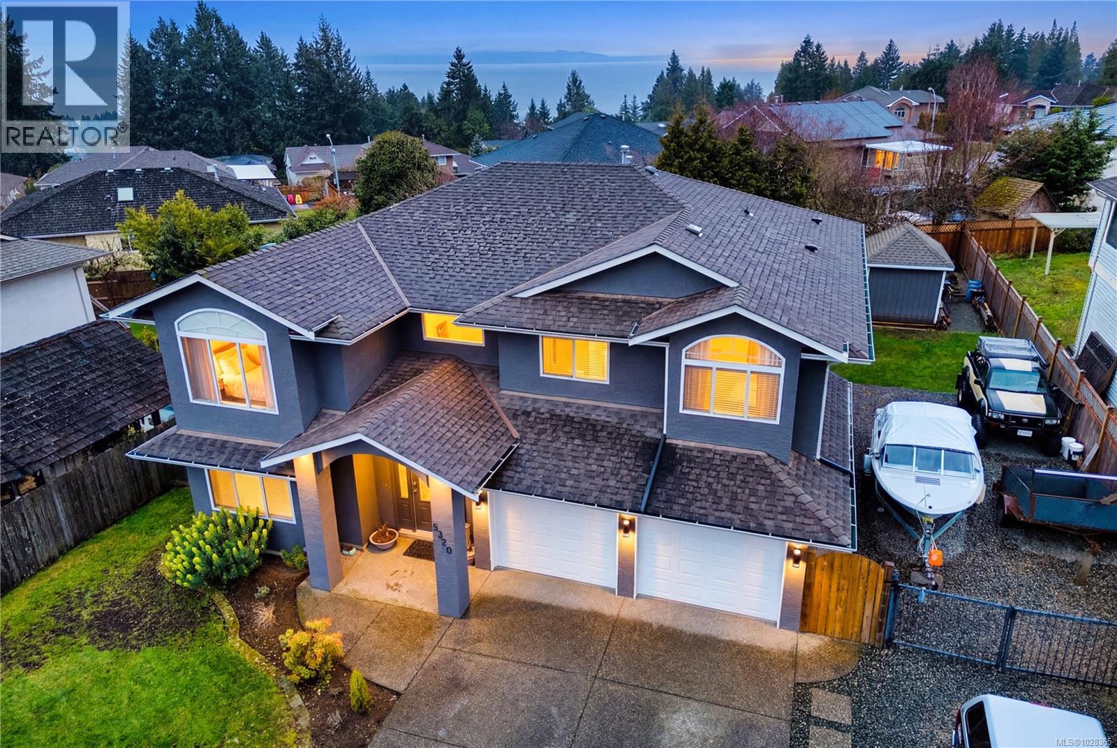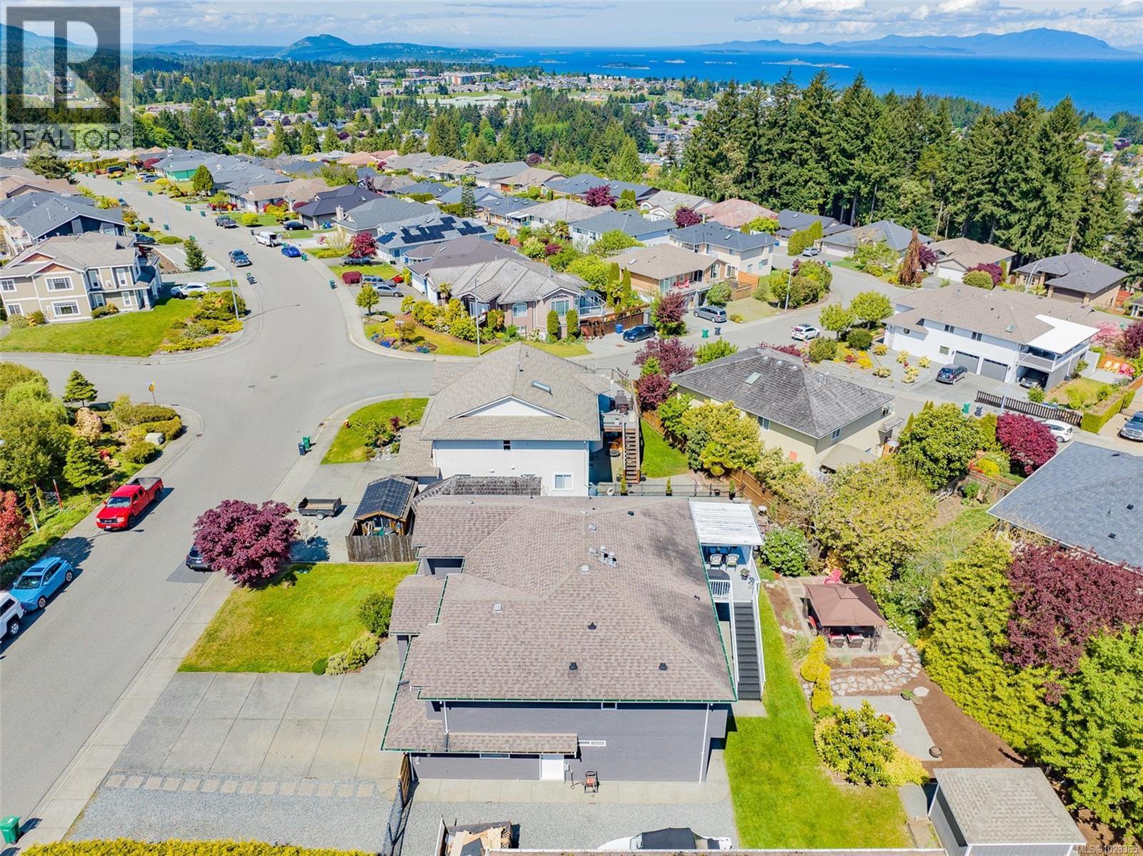 This spacious home offers over 3,000 sq ft of flexible living space with 6 bedrooms and an unauthorized suite, ideal for extended family or added versatility. Set on one of the largest manicured lots in the neighborhood, the property features ocean views from the open-concept kitchen and primary bedroom. Recent updates include new flooring installed this year, a heat pump with A/C, and fresh exterior paint. The home also features a spa-inspired ensuite with soaker tub and a fully updated main bathroom. Enjoy the fully fenced and landscaped yard with irrigation, gazebo, fire pit, garden area, and RV/boat storage. The lower level offers a suite-ready layout with private access and optional 6th bedroom. Conveniently located near parks, schools, and shopping, this home blends comfort, flexibility, and lifestyle. (id:44393)