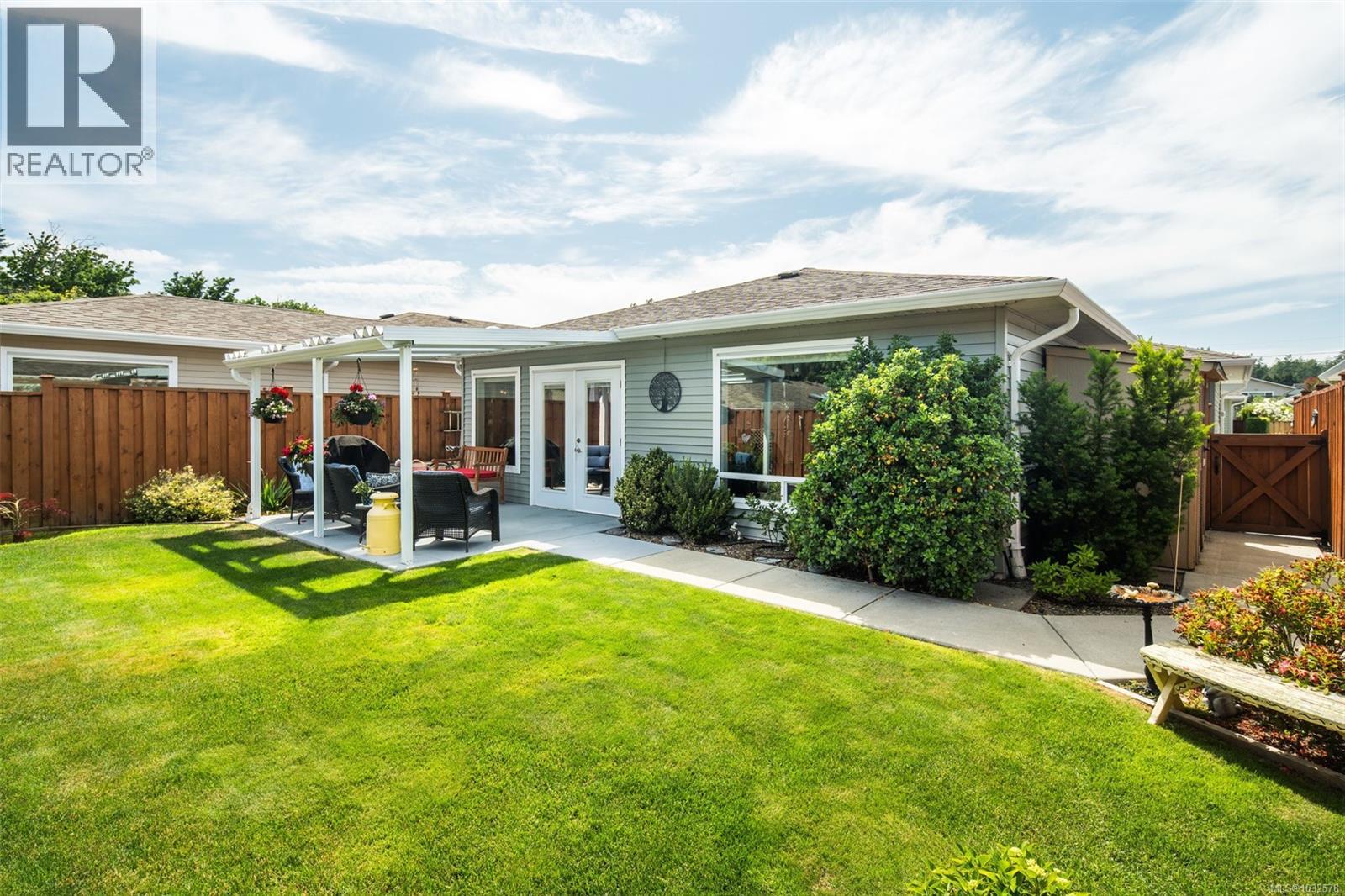 $576.94 MonthlyDiscover Hummingbird Green Village, an exclusive haven for those who value beauty, serenity, and discretion.This 2-bedroom, 2-bathroom home blends modern elegance with practical design.The open-concept layout features an accent wall suited for your finest pieces. Lush greenery complements the impeccably maintained lawn, cared for with the owner’s golf-honed patience and precision. Wider doorways, a flush entrance, and an accessible ensuite shower ensure ease of mobility, rare in this complex. The kitchen offers sleek countertops, premium appliances, and generous storage. Engineered hardwood flooring, vaulted ceilings, architrave moulding, and staircase-style wiring elevate the home’s efficiency and style. The covered patio leads to a secluded backyard, naturally screened for privacy and free from prying eyes. Minutes from BC Ferries, the airport, the beach by the Sidney Pier, and a direct highway to downtown Victoria, travel is effortless. Claim your place at Hummingbird Green Village. (id:44393)
