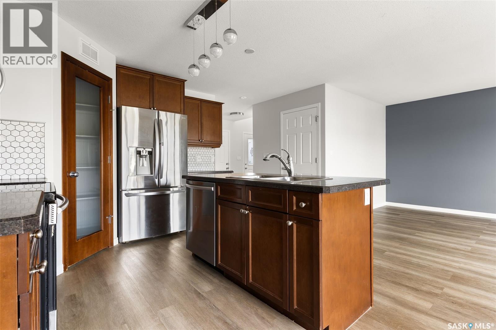Welcome to 5436 Aerial Crescent, a modern two-storey in the heart of Harbour Landing—one of Regina’s most vibrant and family-friendly neighbourhoods. Built in 2012, this 1,439 sq. ft. home impresses with its smart design, 4 bedrooms, 4 bathrooms, and a fully finished basement with separate entry. The main floor is bright and inviting, featuring a spacious living room with large picture windows, an open dining area with garden doors to the deck, and a stylish kitchen showcasing rich wood cabinetry, stainless steel appliances, tiled backsplash, and a walk-in pantry. A convenient powder room and main floor laundry complete this level with everyday functionality. Upstairs, the private primary suite boasts a walk-in closet and 4-piece ensuite, accompanied by two additional bedrooms and a full bath. The lower level expands your living space with a versatile rec room, a wet bar, a fourth bedroom, and a full bath—ideal for guests, teens, or potential suite options. Step outside to a fully fenced yard that backs onto expansive green space—perfect for kids, pets, and backyard gatherings. A spacious deck makes summer entertaining a breeze, while the double attached garage and exposed aggregate driveway add both curb appeal and extra parking. With central air, updated vinyl plank flooring, included appliances, and a location close to schools, parks, shopping, and all Harbour Landing amenities, this home checks all the boxes. Move-in ready and waiting for you to enjoy! (id:44393)