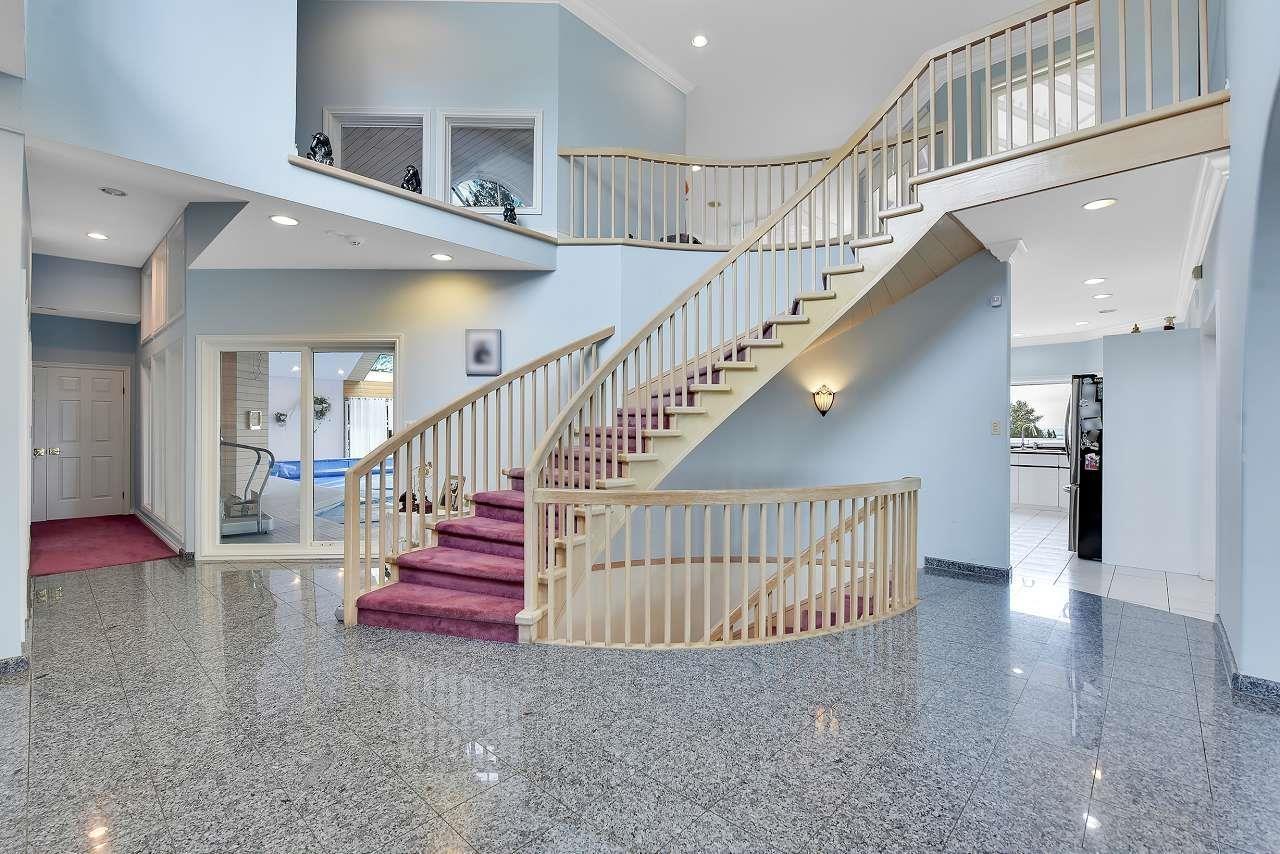 This Italian-built custom home offers BREATHTAKING PANORAMIC OCEAN VIEWS from every room. Situated on nearly an acre, the gated property features an indoor pool, hot tub, and sauna, providing a private retreat. The home boasts spacious decks on every level to enjoy panoramic views of the ocean, islands, and valley. The grand entrance is highlighted by Norwegian blue granite, and the 8,246 sq ft living space includes a triple car garage with ample storage. While it may require a few minor updates, it boasts beautiful architectural character, high ceilings, and large windows that flood the interior with natural light. With a private oasis backyard, an outdoor bathroom, and a garden, this is a rare opportunity to own one of Panorama Ridge's most stunning properties. (id:44393)