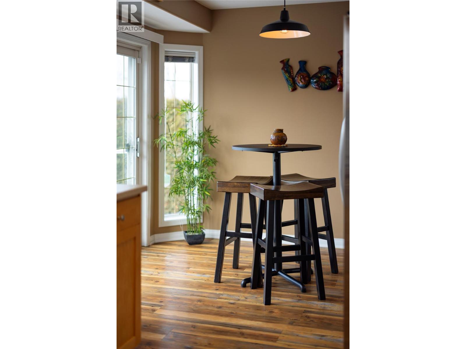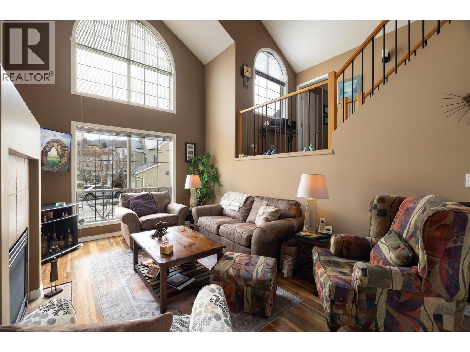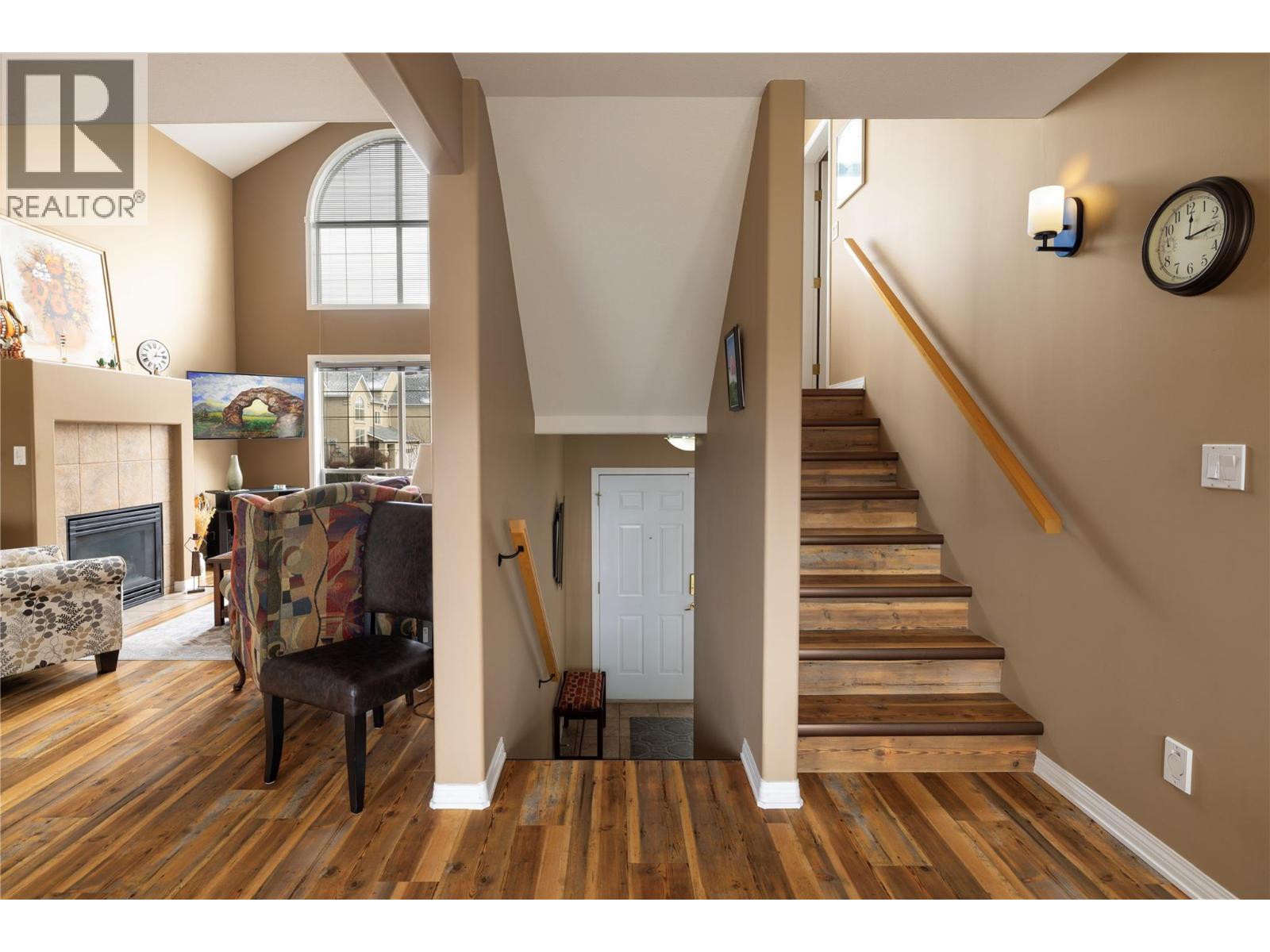 $335.26 MonthlyWelcome to Roxborough by the Creek — a family friendly community - where comfort, convenience, and style come together. This beautifully maintained 3-bedroom, 3-bath home is flooded with natural light thanks to its end-unit position and soaring vaulted ceilings. The open-concept main floor is ideal for both everyday living and entertaining, featuring a spacious living room with cozy gas fireplace and oversized picture windows that create an airy, inviting feel. The dining area flows seamlessly into a cheerful breakfast nook and well-appointed galley kitchen complete with shaker-style cabinetry and convenient access to the laundry and pantry. Step outside through sliding glass doors to your private deck — surrounded by greenery for added privacy and perfect for summer evenings or morning coffee. Upstairs, the generous main bedroom will easily accommodate a king-size bed and offers a walk-in closet plus full ensuite with an updated walk in shower. A second bedroom and full bath complete the upper level, while the third bedroom on the mid floor provides versatility for guests, an office, or hobby room. Many updates including the furnace, A/C, On-demand hot water, walk-in shower (ensuite), vinyl plank flooring (25-year warranty), updated lighting, custom handrails with modern metal railings, and updated plumbing fixtures — truly move-in ready. The double garage, additional driveway parking, and convenient crawl space storage add everyday practicality. Located just a short walk to Village Green Shopping Centre, Walmart, and transit, with Silver Star Mountain Resort only 25 minutes away — this location offers both urban convenience and Okanagan adventures. Don’t miss your opportunity to call this beautifully updated home yours. (id:44393)