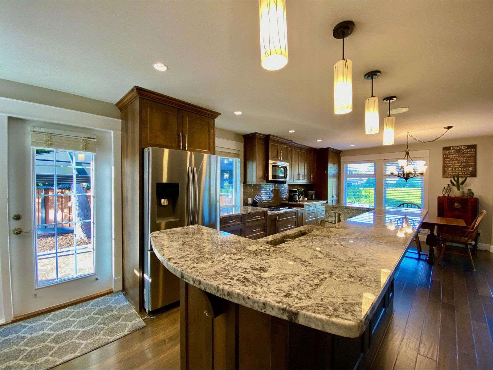 This beautifully updated 2,680 sqft open-concept home features 4 spacious bdrms 3 baths PLUS a dream shop all nestled on a totally private 1/2 Acre lot in a quiet Salmon River cul-de-sac. Inside you'll find a entertainer's kitchen offering built-in s/s appl, dble ovens, gas cooktop, wine fridge, granite counters, a massive island & beautiful hardwd flring thru out. Enjoy seamless indoor-outdoor lvg w/stamped concrete patios, a covered BBQ area, fire pit & a hot tub. Additional hi-lights include RV prkg, high-effic furnace, central a/c, durable Hardi-plank siding, city water & of course the impressive 32' x 40' Shop w/12' doors, a mezzanine & a gas furnace-perfect for projects, storage, or toys. All of this & conveniently located to everything. This rare find truly has it all! (id:44393)